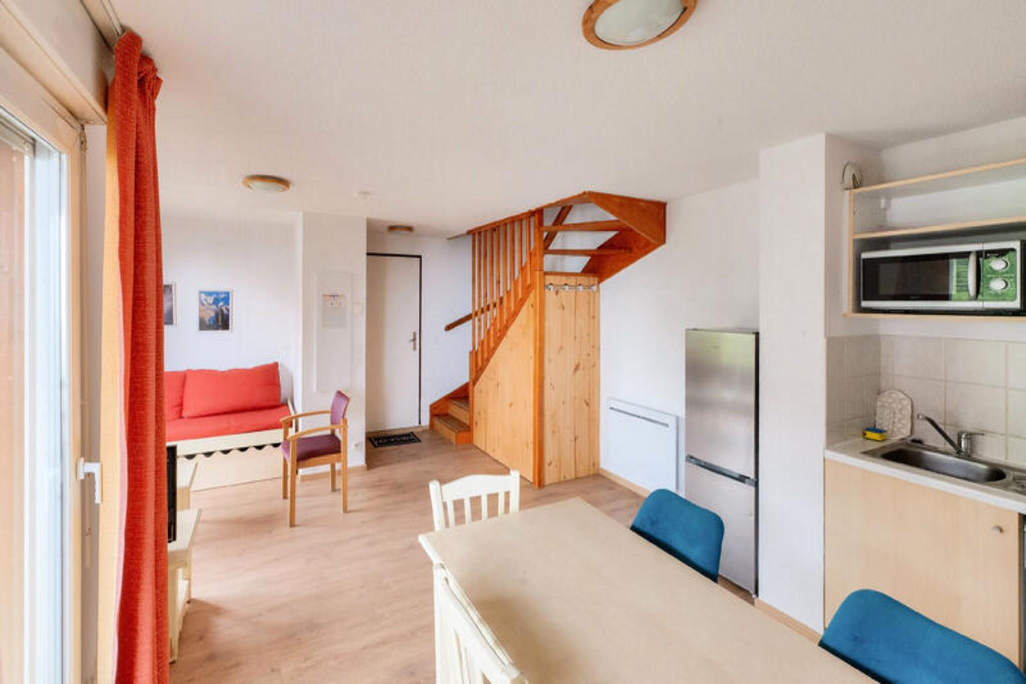 Denne ski-in/ski-out lejlighed tilbyder et behageligt ophold for op til seks gæster i hjertet af Puy Saint Vincent resort. Det livlige, familievenlige feriested kan prale af en fantastisk udsigt over bjergene og er en del af nationalparken Massif des Ecrins. Lejligheden er bekvemt placeret tæt på butikker og faciliteter, selvom butikkerne ligger 1 km op ad bakke fra boligen. Kæledyr er tilladt mod et ekstra gebyr. Mens specifikke detaljer om nærliggende cafeer, restauranter eller markeder ikke er angivet, antyder placeringen i resortet nem adgang til forskellige spise- og shoppingmuligheder. Denne 55 m² store to-etagers duplex-lejlighed har en stue med en sovesofa (sover to), et køkken åbent til stuen og en spiseplads med et bord til seks. Der er to soveværelser: et med dobbeltseng og et andet med to enkeltsenge. Badeværelset har badekar, og der er separat toilet. Sengelinned, håndklæder og slutrengøring er alle tilgængelige mod et ekstra gebyr. Daglig rengøring er også tilgængelig efter anmodning.
