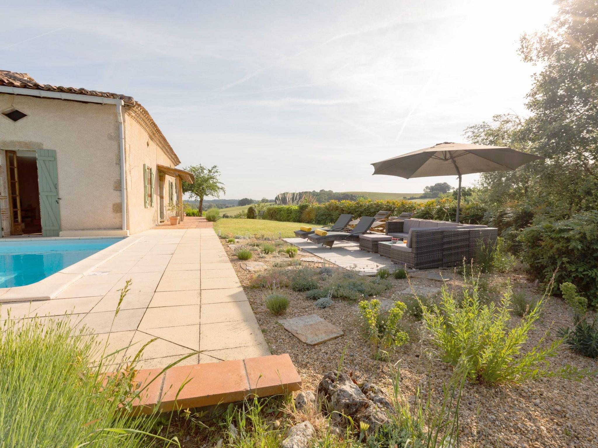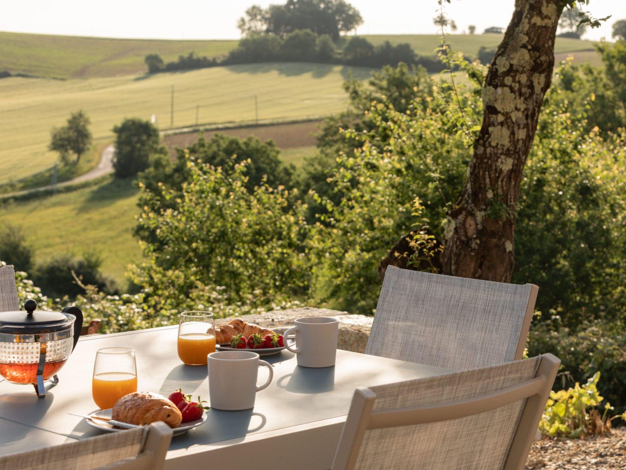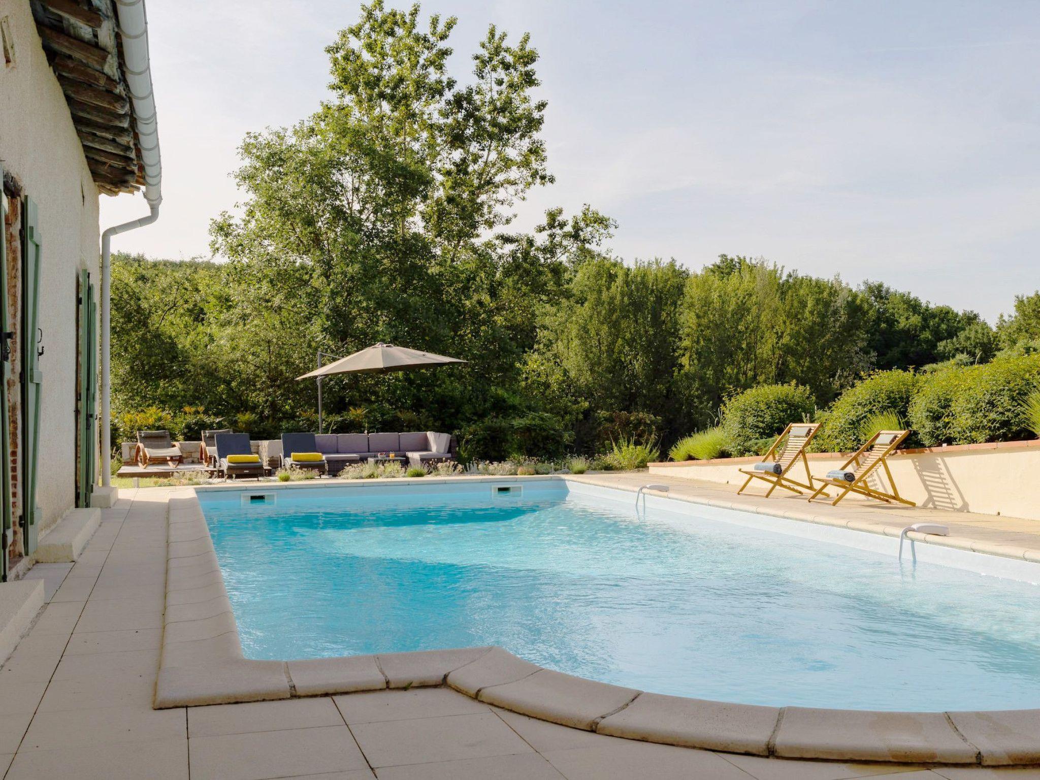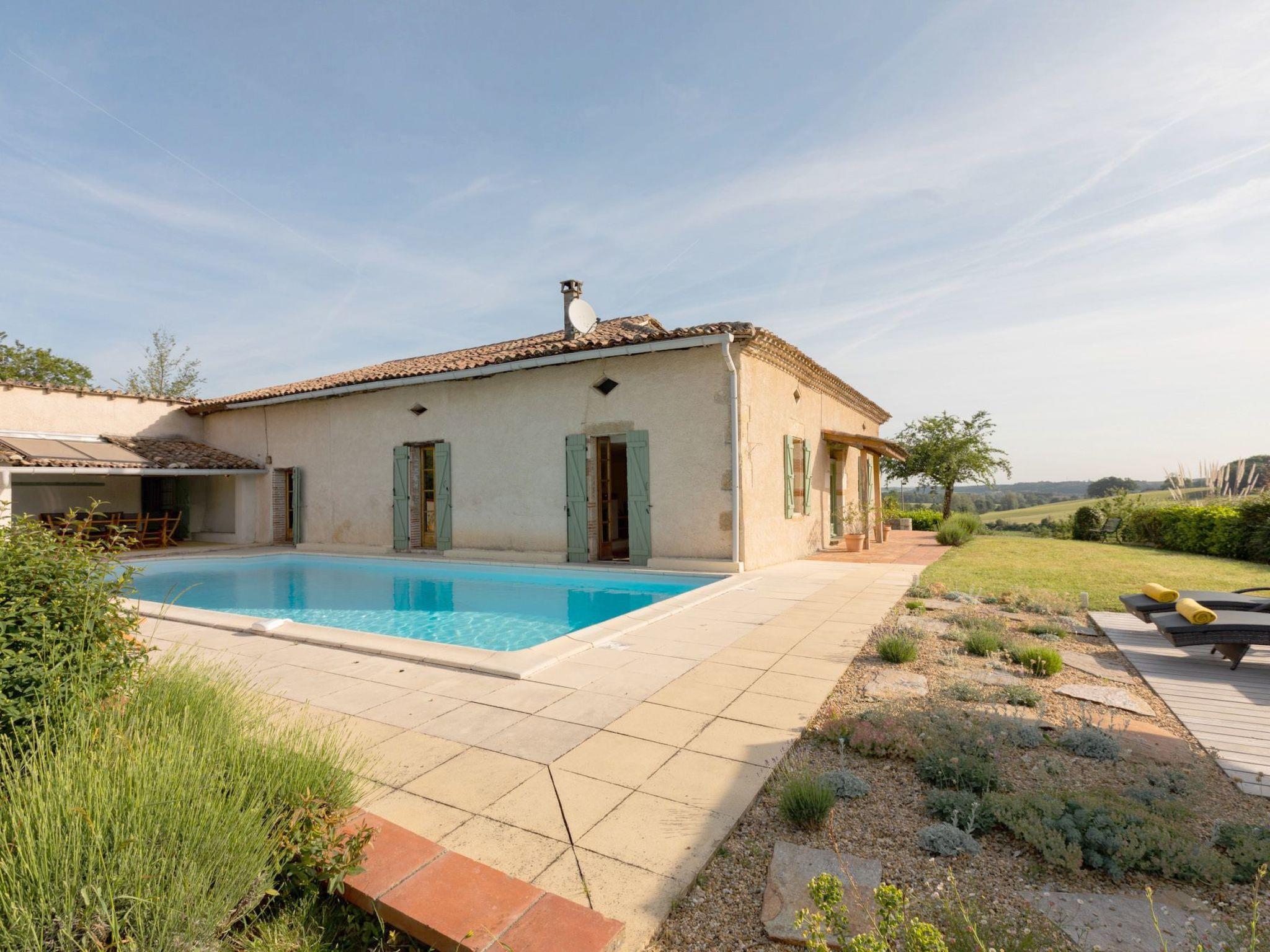 Elegant Gascon cottage 1h15 from Toulouse. Renovated with a particular attachment to furniture, flirting with a certain idea of design where materials and their textures create the atmosphere. Carved wood, steel, leather, high-tech equipment (NETFLIX). Well-equipped kitchen, gym/office, swimming pool, summer kitchen, video games room... An ideal haven of peace for 8 people. with 4 double bedrooms and 3 bathrooms. All on the hillside, not overlooked, with a bird's eye view of the sunrise. Magic !