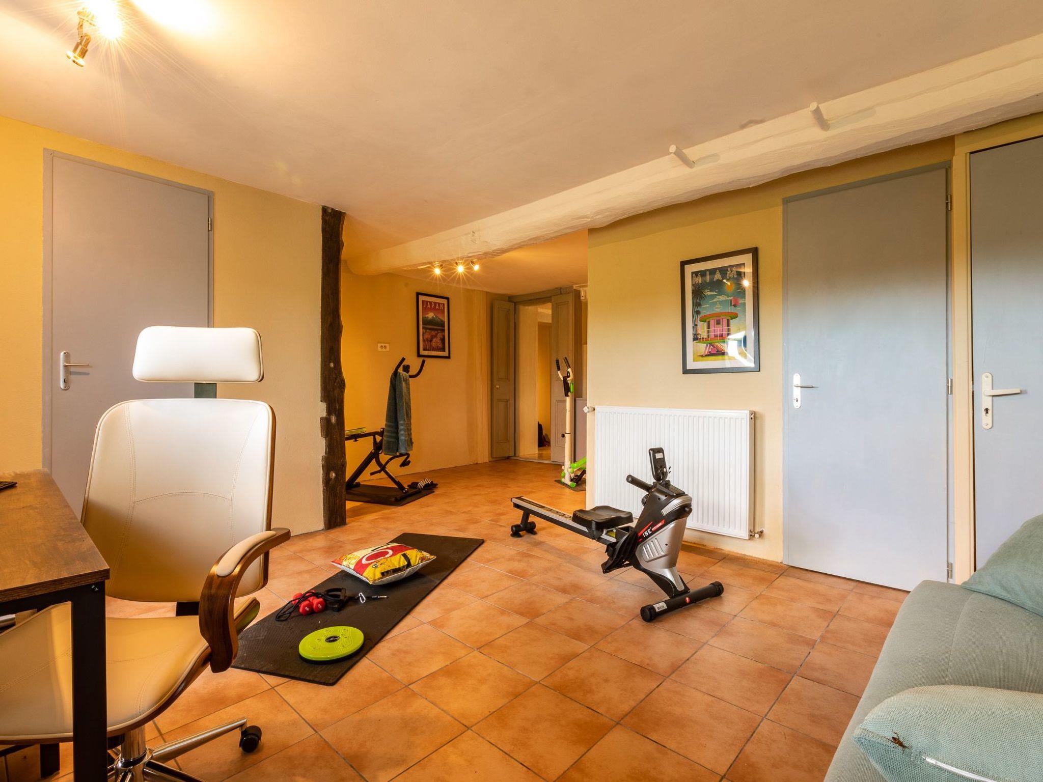 Typical of Gascon houses, the main entrance opens onto a central corridor distributing the different rooms on the ground floor: a fully equipped kitchen open to the dining room with a double hearth wood stove, a living room opening onto the swimming pool, with fireplace, 60-inch flat-screen smart TV and sound bar, as well as an independent 26m2 room with desk, computer, printer and sports equipment (rower, stepper, abs machine).