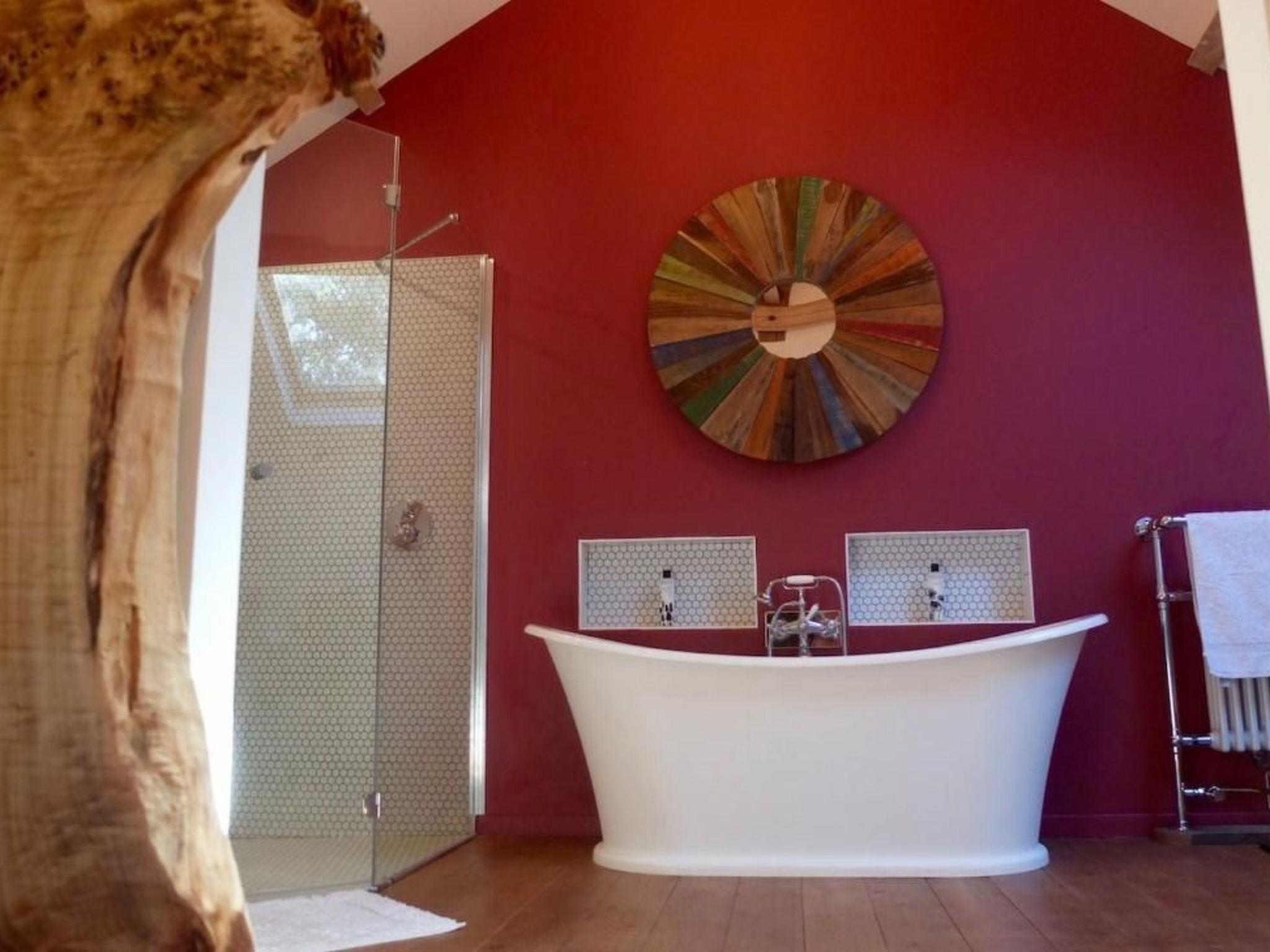 The Pigeonniere has a super king size bed on the mezzanine floor and ensuite with a slipper bath, walk-in rain shower and separate WC. An Invicta log burner and Loaf sofa for snuggly winter evenings nestled under the amazing exposed roof timbers and mezzanine.