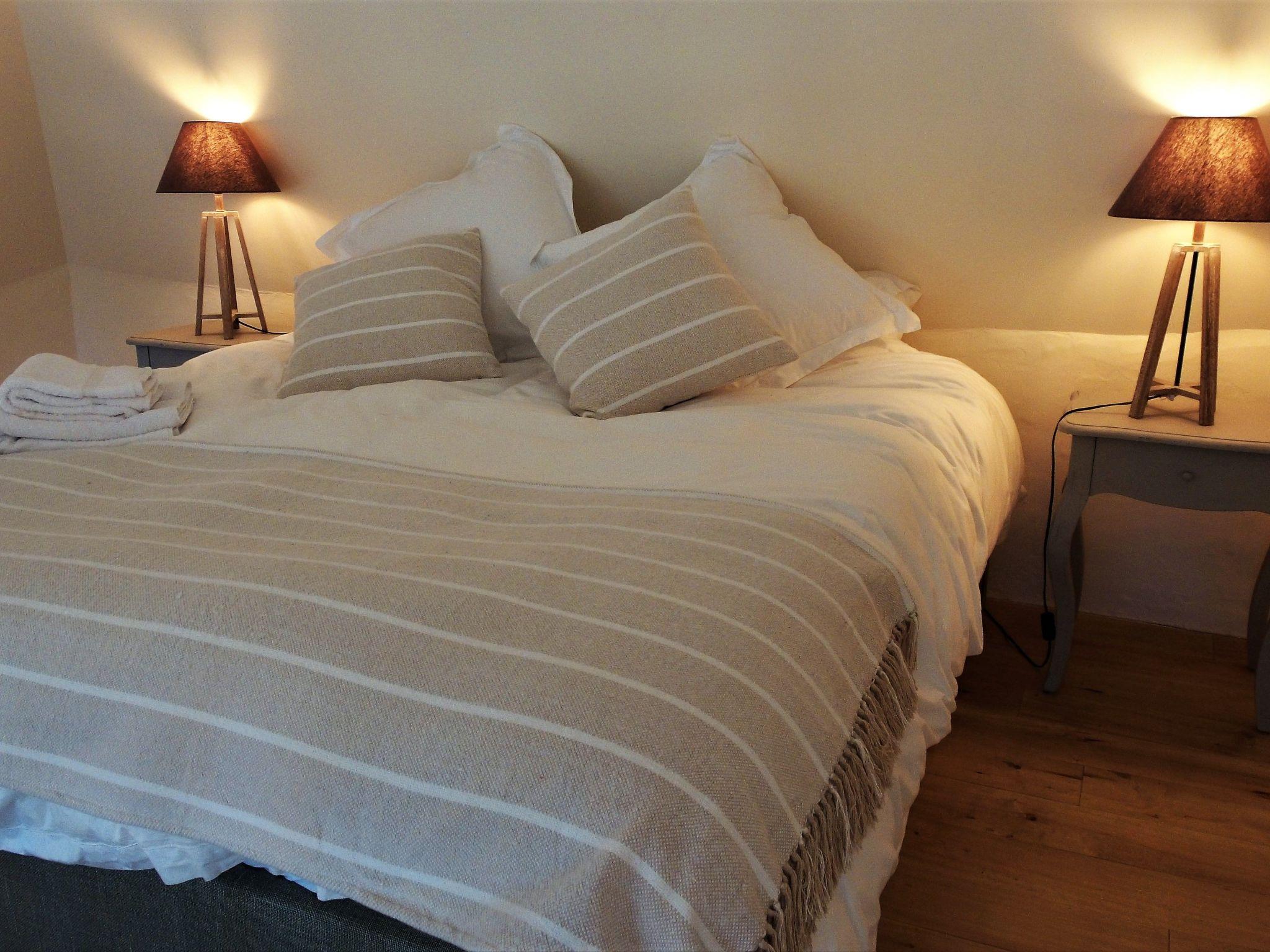 The Bread Oven has a super-king size bed and ensuite walk-in rain shower/WC. With high ceiling and original features, the Bread Oven is a unique and beautiful room. A pretty round window, high in the gables, casts a beautiful red light into the room at sunset.