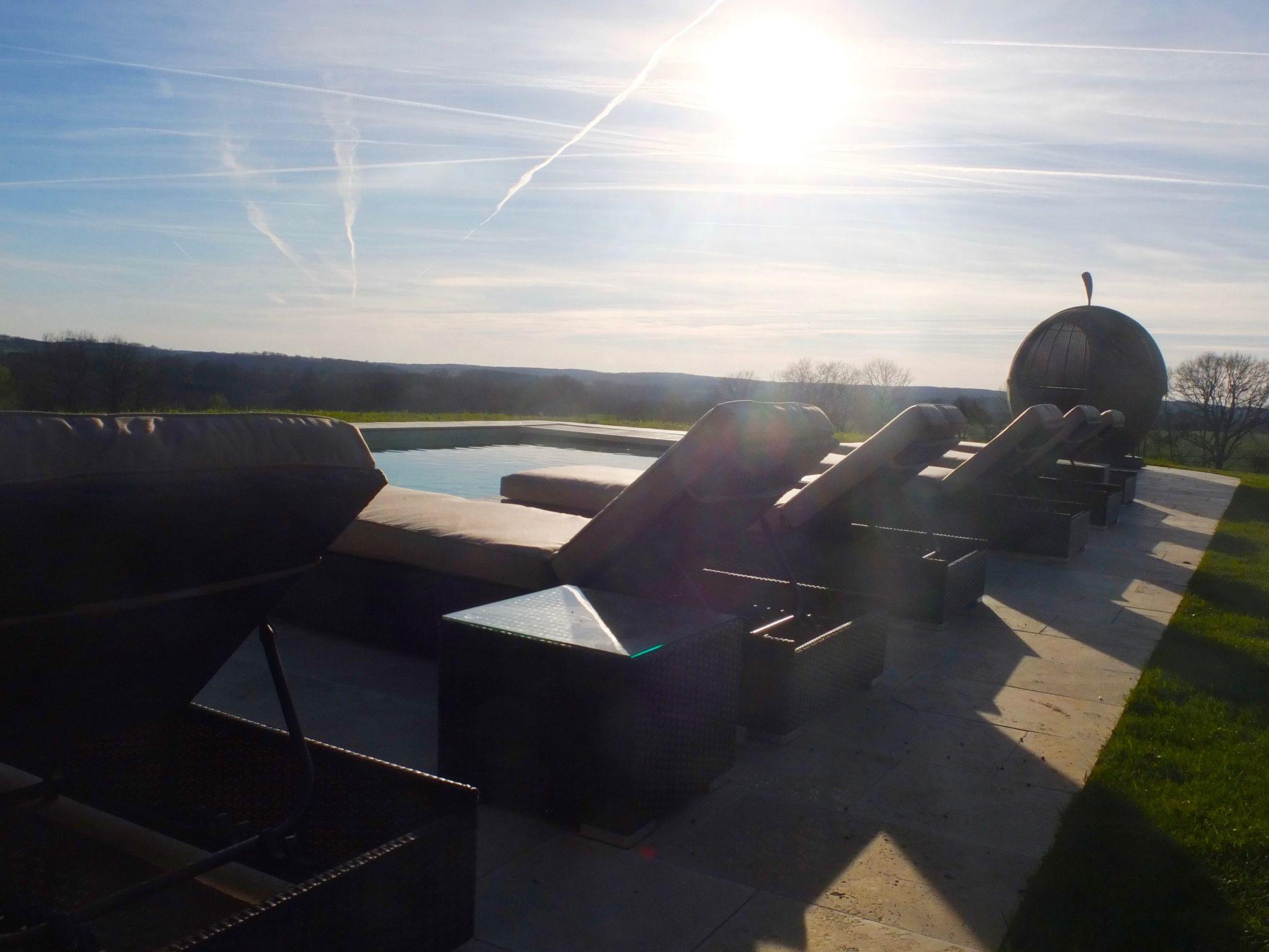 It is surrounded by a large grassy garden which has a lovely 14m x 5m heated swimming pool with a 5m x 3m paddling area that’s perfect for babies and toddlers, being just 30cms deep. There’s table tennis by the pool and plenty of space to play football, badminton and boules, or spread out a picnic in the orchard, find a quiet corner in the walled gardens of the Grain Store and Bread Oven, or sneak a snooze in the hammock, slung between chestnut trees or in the Apple day bed that rotates to chase or avoid the sun. From the pool and the outdoor terraces, there are scenic views over the surrounding fields towards the foothills of the Pyrenees and as evening falls, children will be pestering to toast marshmallows around the fire pit, sizzle Toulouse sausages and watch for shooting stars snuggled in a blanket.