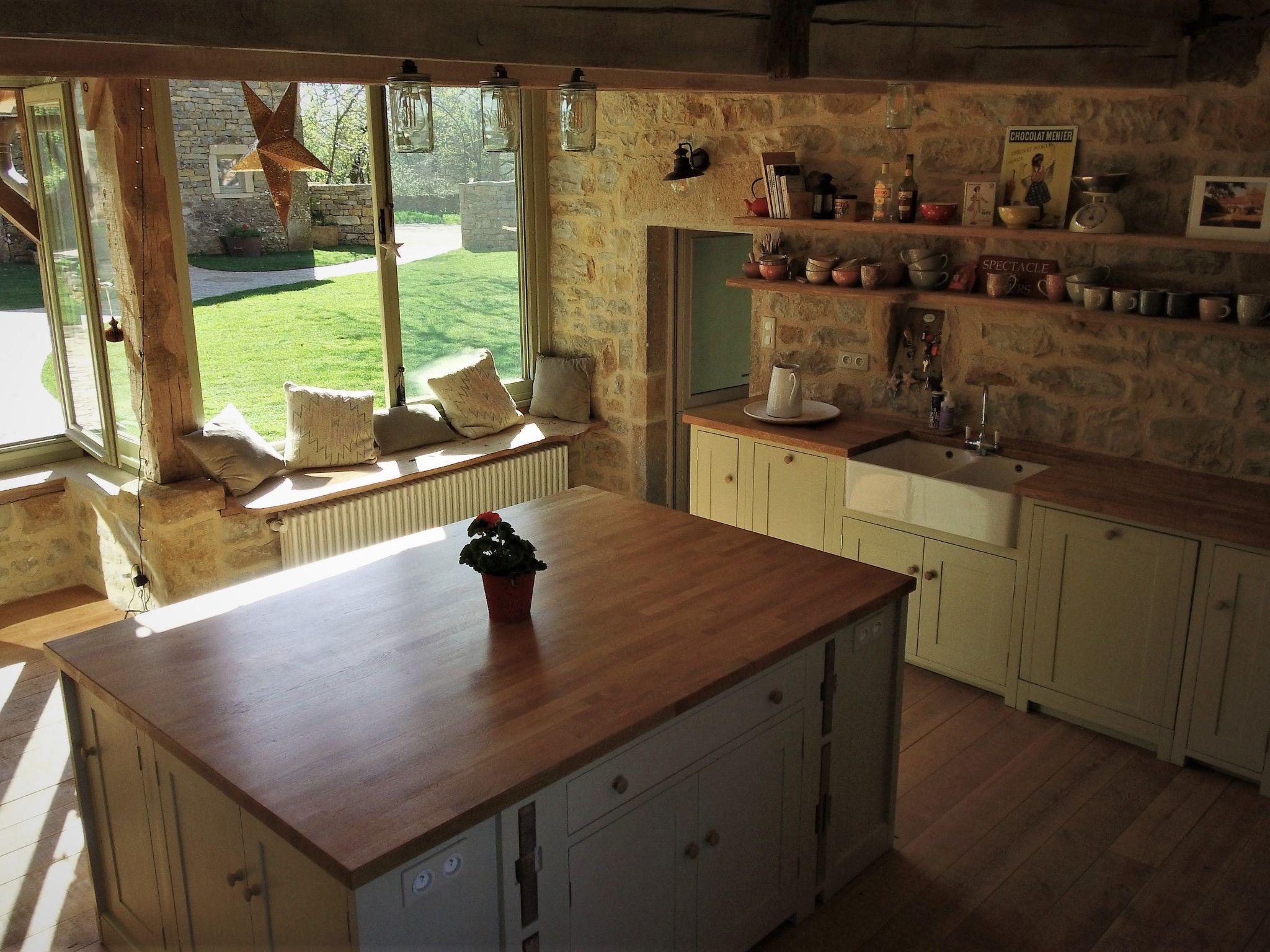 For a special gathering, it is the ultimate rambling French farmhouse. The house has been lovingly renovated to the height of rustic luxury and packed with high spec finishing touches. Besides the 16th century farmhouse, they converted the traditional Pigeonniere, Grain Store and even the original Bread Oven building, so groups of up to 16+, from toddlers to grandparents, will never be under each other’s feet.?? Given its age, Claux de Bouscou has all the character of original gnarly beams, honey-coloured stone walls and even a timber Minstrels gallery, but they have also incorporated their own hand-crafted additions. These include an Elm window seat in the kitchen and sliding doors in the Master bedroom made from huge slices of Walnut.