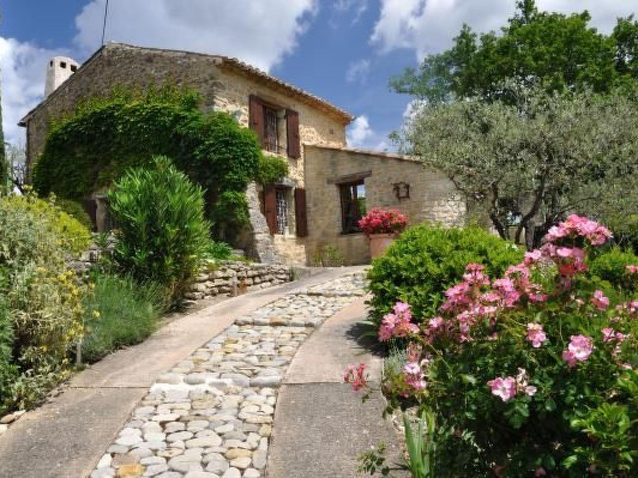There is a well-kept Provençal garden with flowers, lavender and olive trees on the complex. A very large covered sitting area with a barbecue area allows you to spend your holiday outside whatever the weather and whatever the season. In front of the house on the meadow under the lime tree, you have a distant view of the vineyards and a number of mountain ranges. Several shady and sunny seats invite you to relax, and in summer (mid-June to mid-September) a communal swimming pool (3.00 metres in diameter, 1.20 metres high) is available for cooling off and swimming. Trees and covered seating provide shade on hot summer days. There are open, wind-protected seating areas around the house. The property offers plenty of privacy in a quiet location.
