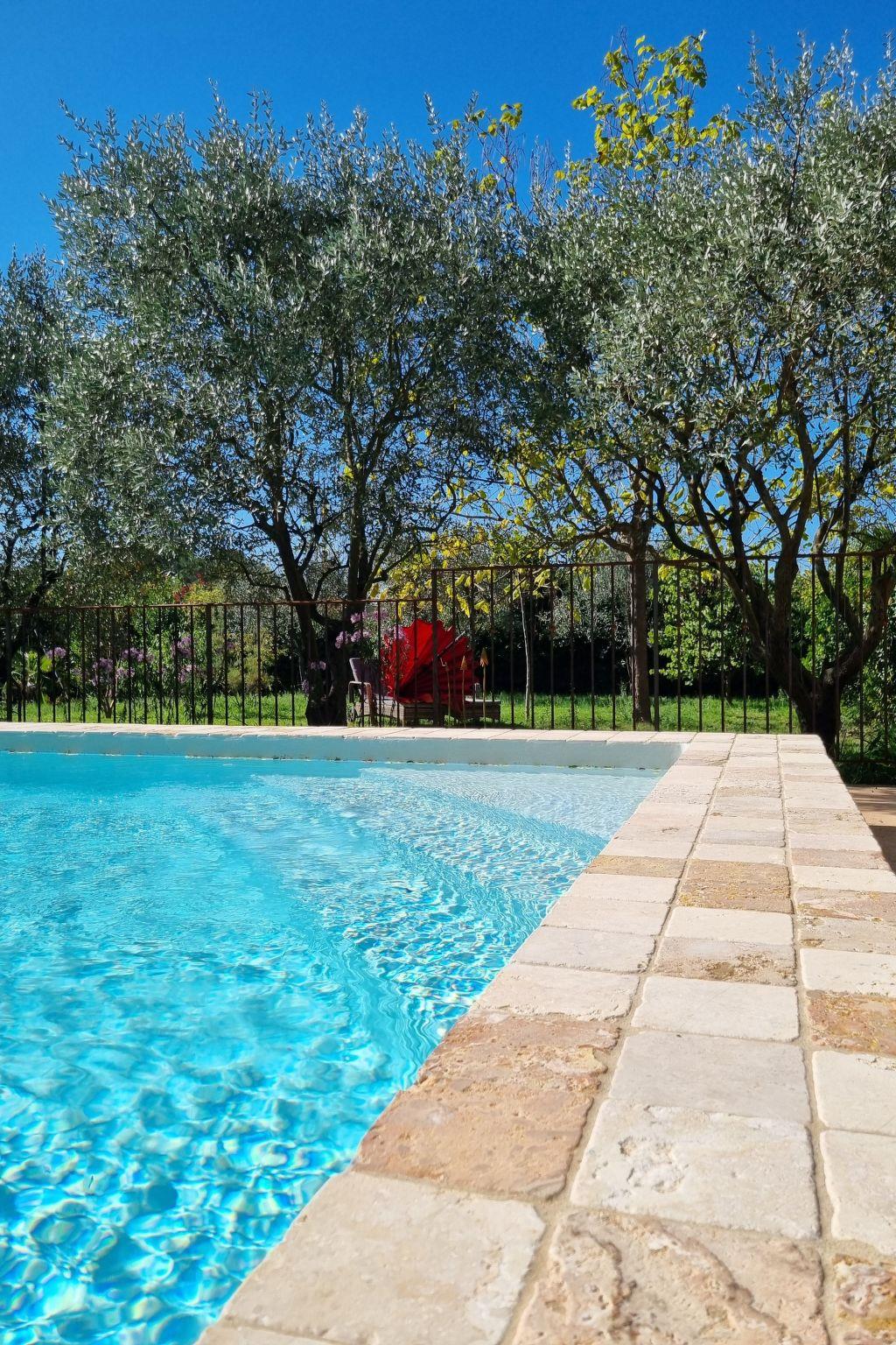The well-kept Mediterranean garden will delight nature and flower lovers. Here, surrounded by olive and apricot trees, Mediterranean flowers and lots of greenery, you will also find the 10 x 5 metre swimming pool, which is up to 2 metres deep. The pool and pool area are sunny all day long. Parasols and deckchairs are available for you to enjoy the Provencal sun and relax. There are two additional seating areas beside and in front of the house, one of which is covered.