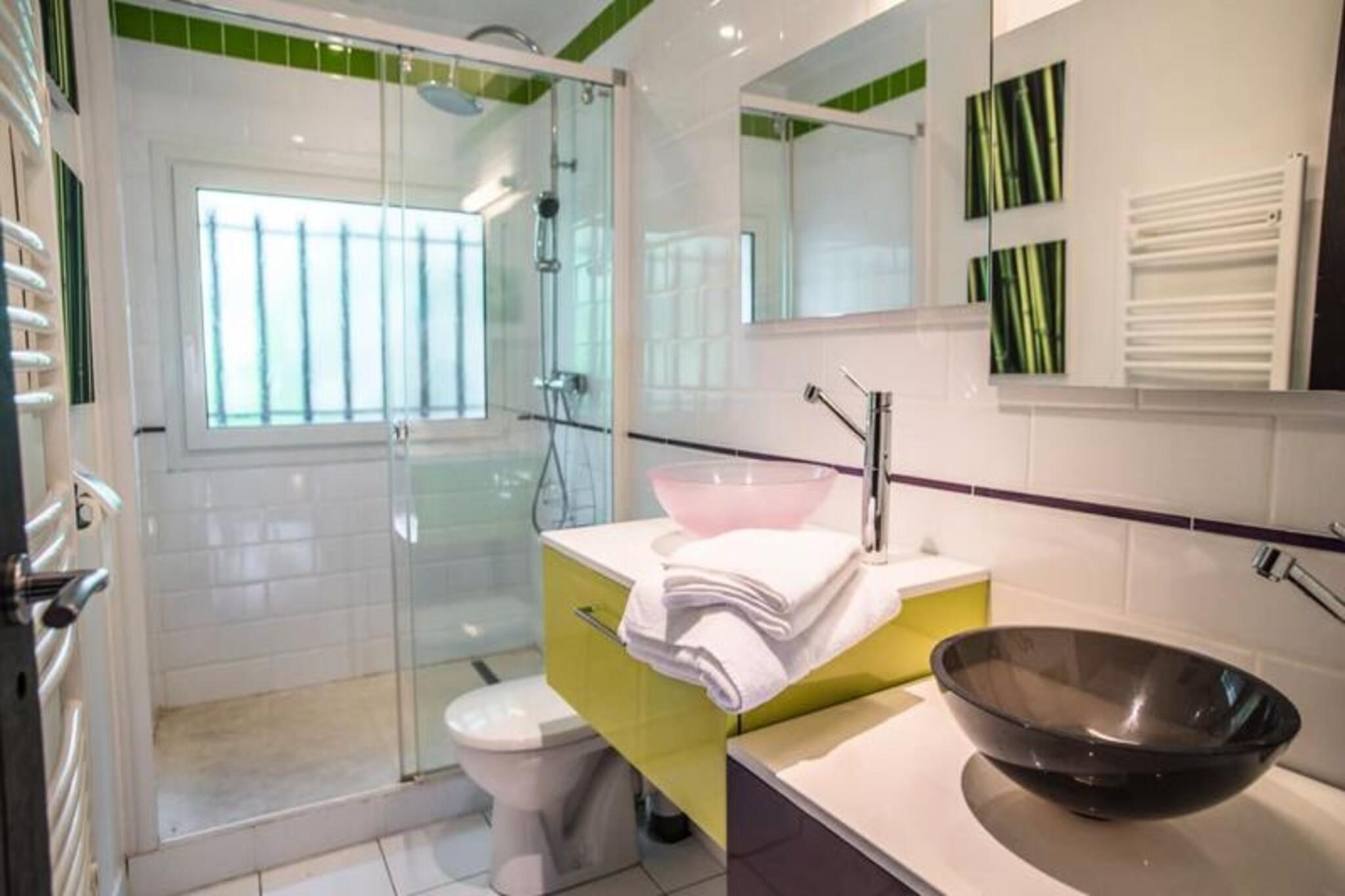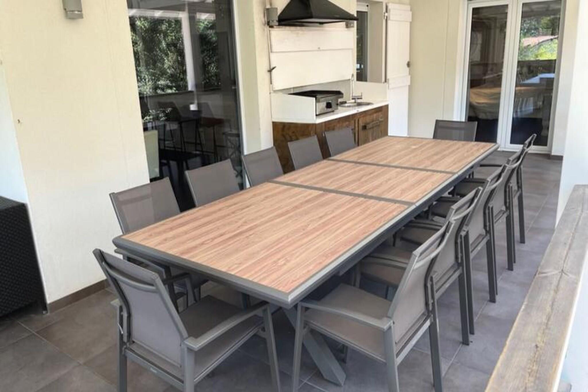 Denne smukke villa i californisk stil tilbyder den ultimative komfort for op til 10 g?ster, med 5 rummelige sovev?relser og 4 badev?relser. Det overordnede niveau inkluderer et sovev?relse med en stor dobbeltseng og et privat badev?relse, sammen med et master sovev?relse med en himmelseng og ensuite. Mezzaninen rummer to sovev?relser med to enkeltsenge og et f?lles badev?relse. Haveniveauet har endnu et sovev?relse med eget badev?relse samt et spillelokale og vaskerum. Villaen har ogs? en opvarmet swimmingpool og en r?kke udend?rs rum til afslapning. Bem?rk venligst, at k?ledyr ikke er tilladt, og et depositum p? ?4000 er p?kr?vet. Denne villa ligger kun 5 minutter fra stranden og det charmerende Moulleau centrum og tilbyder nem adgang til lokale caf?er, markeder og restauranter. Nyd en afslappende g?tur til stranden eller udforsk de n?rliggende attraktioner, herunder den fantastiske kystudsigt og vandrestier. Omr?det giver den perfekte balance mellem fred og bekvemmelighed, med alle bekvemmelighederne i det livlige centrum inden for g?afstand. Villaen har et fuldt udstyret k?kken med moderne apparater, herunder k?leskab, fryser, ovn, mikroovn og opvaskemaskine. Opholds- og spiseomr?det i ?bent plan er perfekt til at underholde med et Sonos-lydsystem, fladsk?rms-tv og rigelig siddepladser. Nyd udend?rs spisning med et stort bord og elektrisk plancha p? den rummelige terrasse, eller slap af i den skyggefulde have. Yderligere faciliteter omfatter Wi-Fi, et bordtennisbord og en bowlingbane for ekstra sjov.