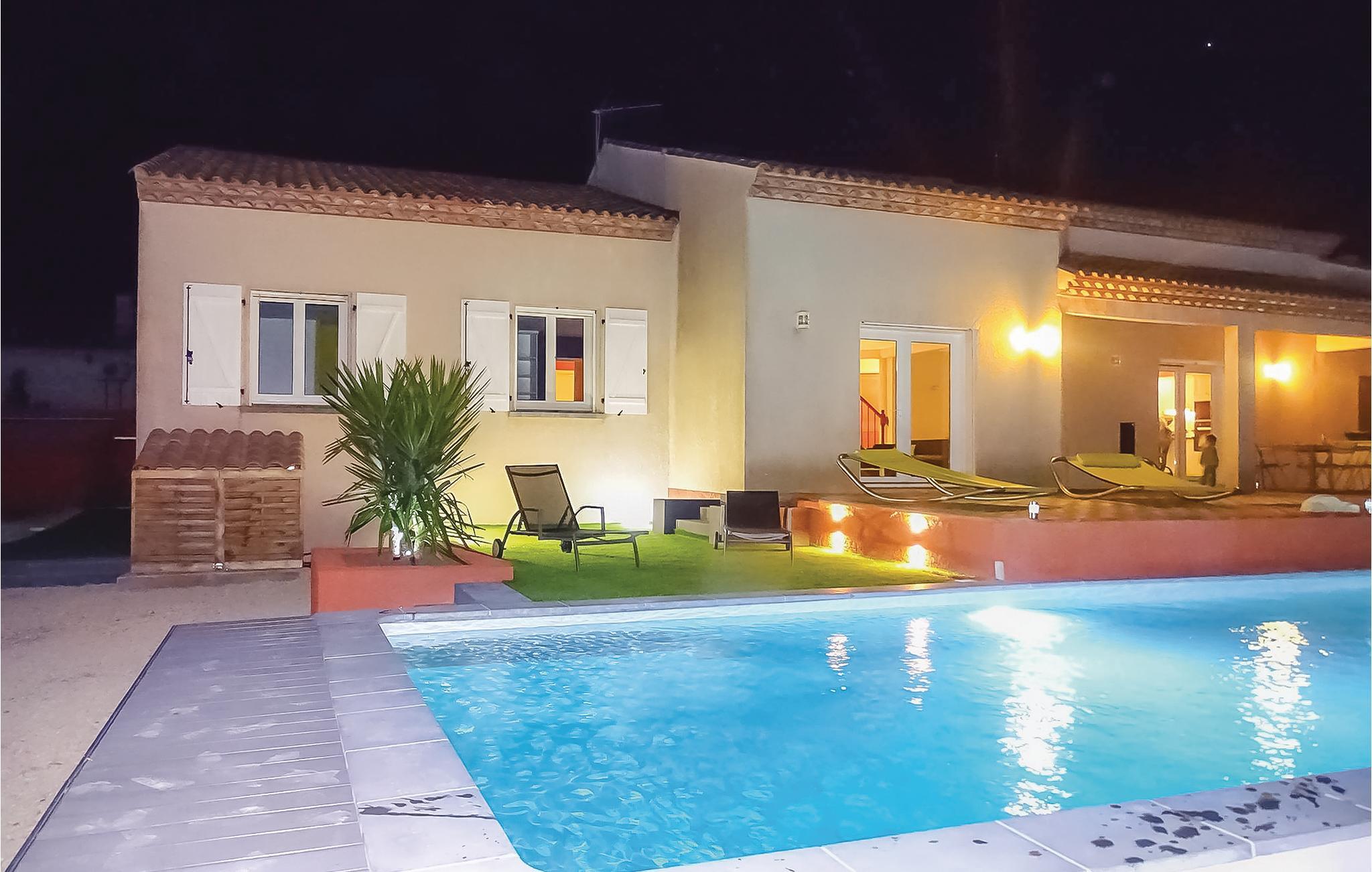 Rummeligt feriehus på en stor grund med pool og fantastisk udsigt! Denne ejendom ligger i landsbyen Quarante i Languedoc-Roussillon, midt i vinmarkerne og med udsigt over de fjerne bjerge.
