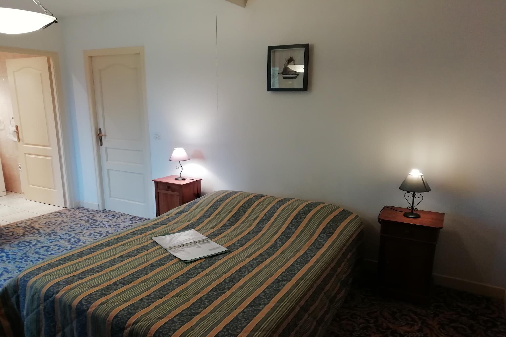 Stueetage: (Stue, åbent køkken(ovn, mikrobølgeovn, opvaskemaskine ), soveværelse(dobbeltseng), soveværelse(2x enkeltseng), badeværelse(badekar, bruser, håndvask, toilet), badeværelse(badekar, bruser, håndvask, toilet)) tørretumbler(deles med andre gæster), solarium, vaskemaskine(deles med andre gæster), varme(elektrisk), terrasse(overdækket), havemøbler, swimmingpool(deles med andre gæster, 14 x 6 m., opened from Jun upto and including 1/2 Sep), petanquebane, bordtennisbord
