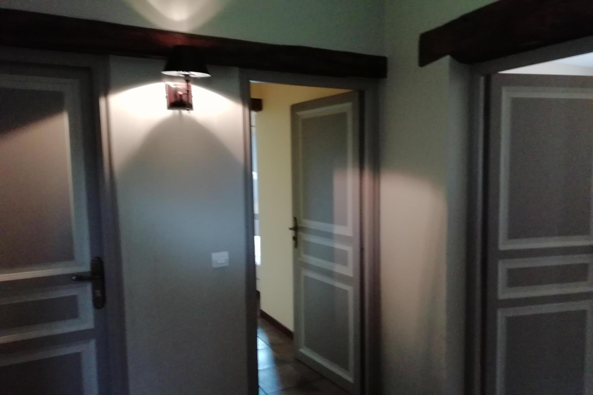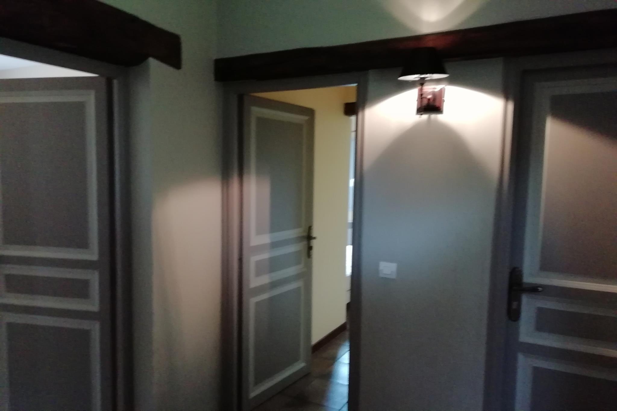 Stueetage: (Stue(dobbeltsovesofa, Fjernsyn, pejs), Køkken(mikrobølgeovn), soveværelse(dobbeltseng), badeværelse(badekar, håndvask, toilet)) På 1. etage: (soveværelse(2x dobbeltseng)) vaskemaskine, varme(elektrisk), terrasse(overdækket), havemøbler, swimmingpool(deles med andre gæster, 13 x 6 m., opened from Jun upto and including 1/2 Sep), tennisbane(deles med andre gæster, betalt), petanquebane, bordtennisbord