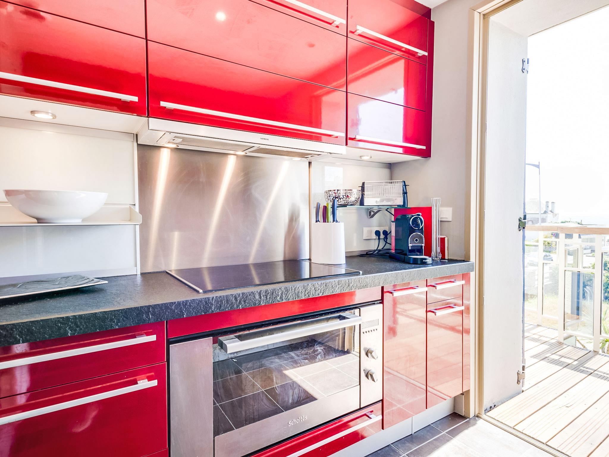 5-room maisonette 120 m2 on 1st floor, south facing position. Comfortable and stylish furnishings: living/dining room with open-hearth fireplace. Exit to the terrace. 1 room with 2 beds (80 cm, length 200 cm). 1 room with 1 french bed (1 x 160 cm, length 200 cm). Kitchen 10 m2 (oven, dishwasher, 4 induction hot plates, microwave, freezer, grill, electric coffee machine, Capsules for coffee machine (Nespresso) extra). Exit to the terrace. Bathroom, sep. WC. Upper floor: lounge with TV (flat screen). 1 room with 1 french bed (1 x 160 cm, length 200 cm), TV (flat screen). 1 room with sloping ceilings with 1 bed (120 cm). Bath/WC. Electric heating, gas heating. Small terrace 10 m2, south facing position. Terrace furniture. Beautiful view of the sea. Facilities: washing machine, dryer, hair dryer. Internet (WiFi, free). Parking (2 cars). Please note: non-smokers only. Smoke alarm. 56186 000574 98