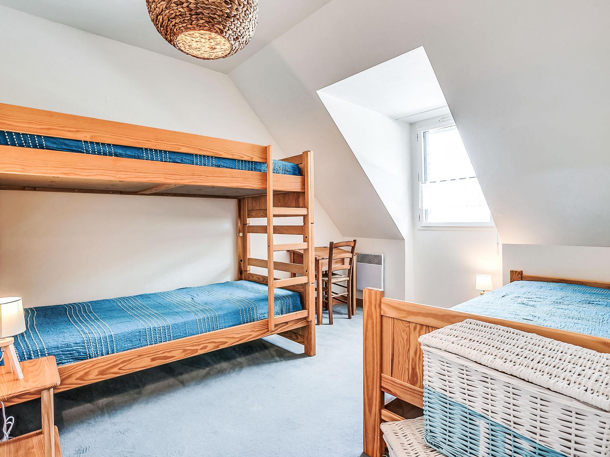 5-room house 100 m2 on 2 levels. Beautiful furnishings: living/dining room with TV (flat screen). Exit to the terrace. 1 room with 1 french bed (1 x 140 cm, length 190 cm), shower. Open kitchen (oven, dishwasher, 3 ceramic glass hob hotplates, microwave, electric coffee machine). Sep. WC. Upper floor: 1 room with 1 french bed (1 x 140 cm, length 190 cm). 1 room with 1 bed (90 cm, length 190 cm), 1 french bed (1 x 140 cm, length 190 cm). 1 room with 1 bed (90 cm, length 190 cm), 1 x 2 bunk beds (90 cm, length 190 cm). Bath/WC. Electric heating. Terrace furniture, deck chairs (2). Facilities: washing machine. Internet (WiFi, free). Please note: smoke alarm. 56234 000201 WR