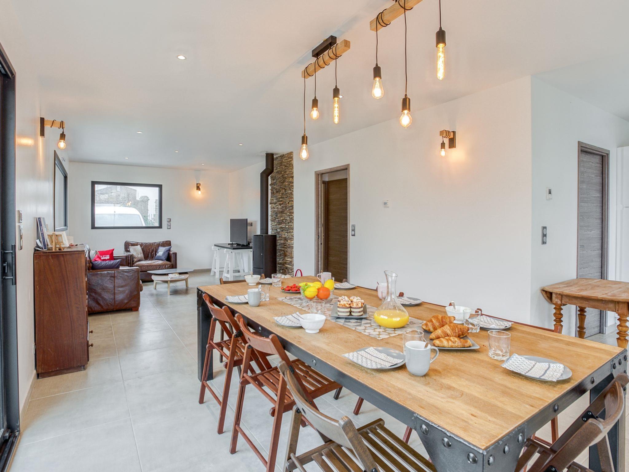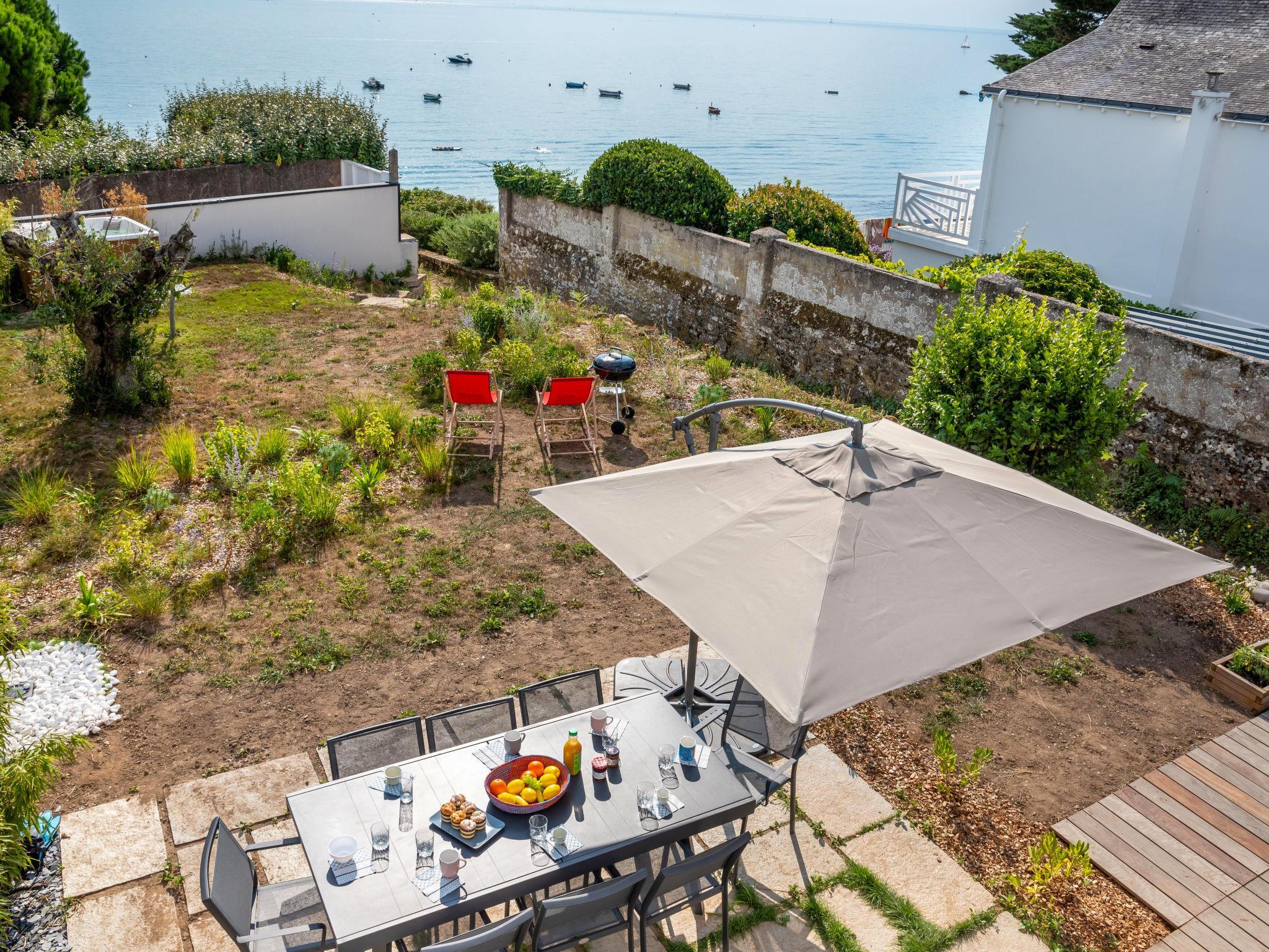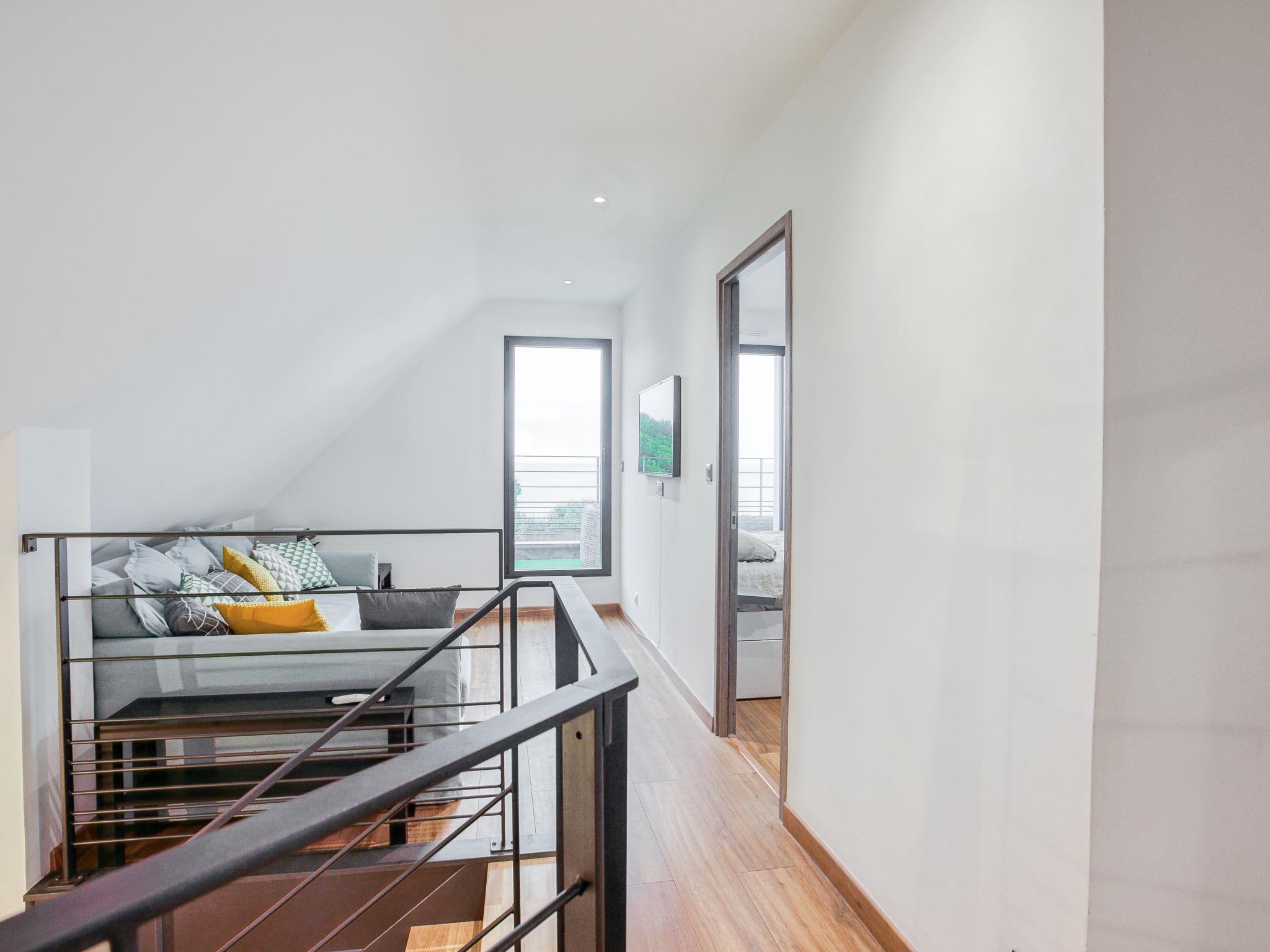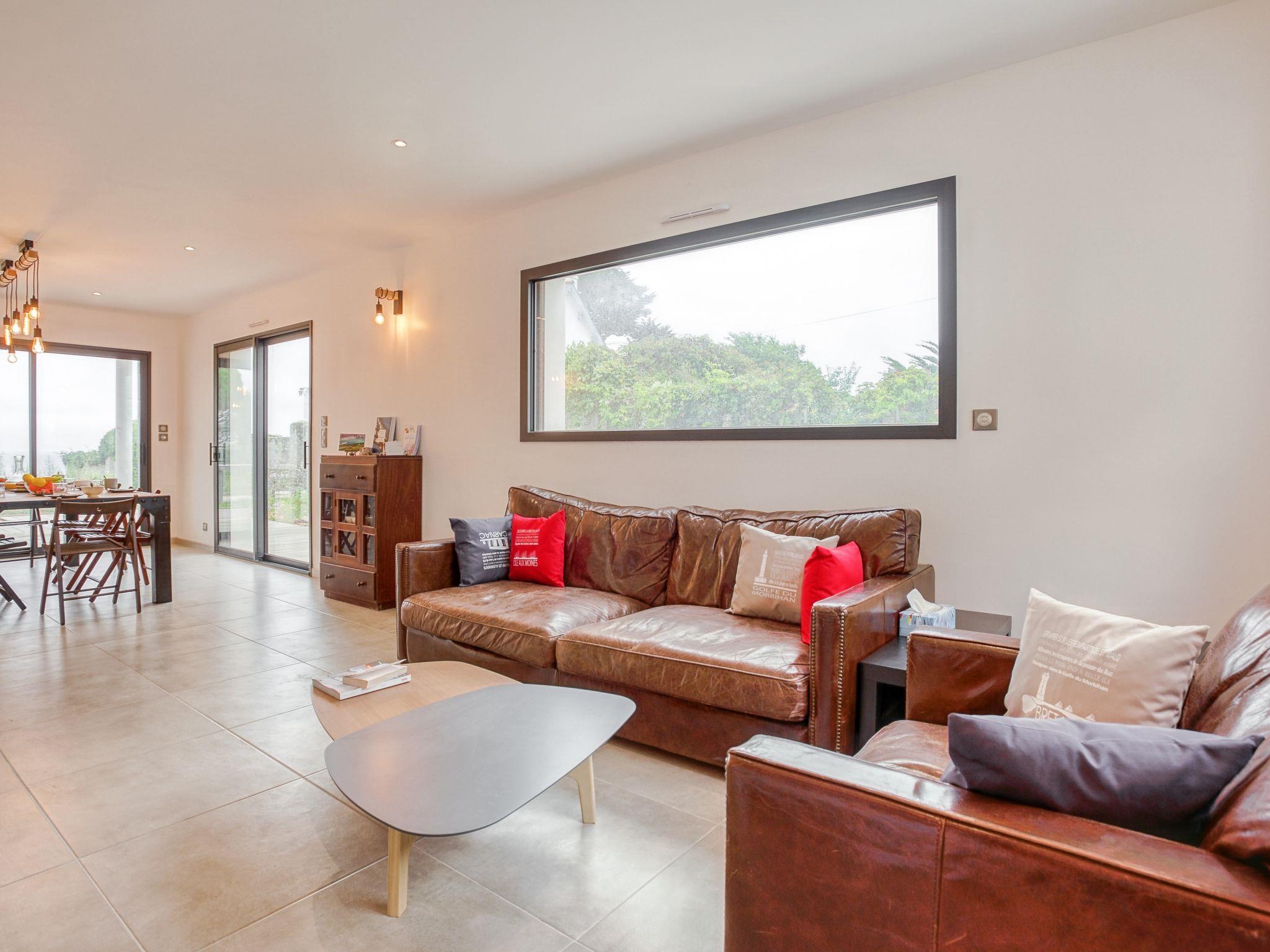 "Villa Kerhostin", 5-room house 105 m2 on 2 levels. Very beautiful furnishings: dining room with TV (flat screen). Exit to the terrace. 1 room with 1 french bed (1 x 160 cm, length 190 cm). Kitchen (oven, dishwasher, 4 induction hot plates, freezer, electric coffee machine, combination microwave). Exit to the terrace. Shower, sep. WC. Electric heating, underfloor heating. Upper floor: lounge with TV and flat screen. Exit to the balcony. 1 room with 1 french bed (1 x 160 cm, length 190 cm). Exit to the balcony. 1 room with sloping ceilings with 2 beds (90 cm, length 190 cm). 1 room with sloping ceilings with 2 beds (90 cm, length 190 cm). Bathroom, sep. WC. View of the sea. Facilities: washing machine, dryer. Internet (WiFi). 56234 000204 1G