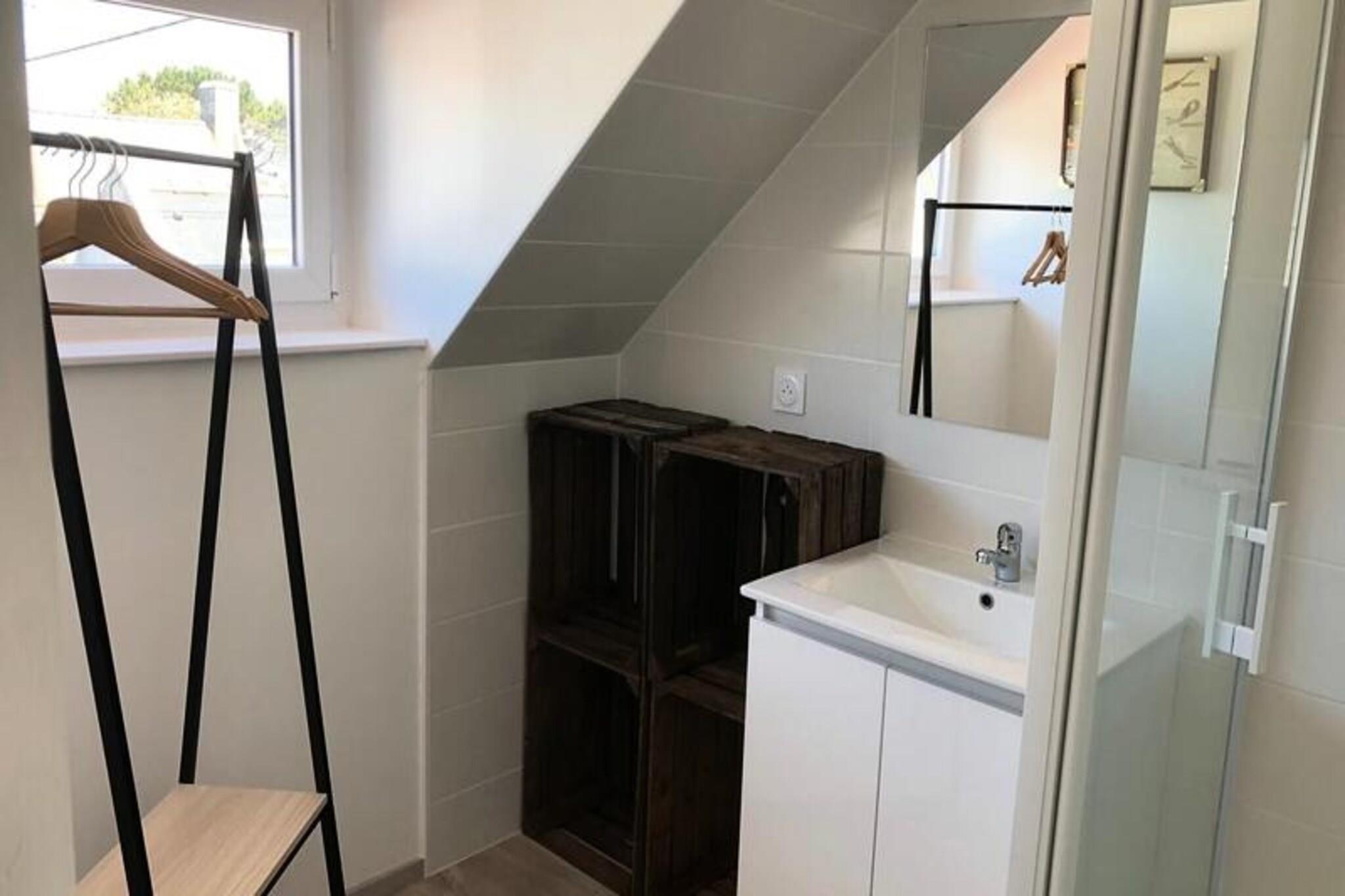 This spacious holiday home offers a peaceful retreat with 4 comfortable bedrooms, including one on the ground floor for easy access. The large garden is perfect for relaxation, featuring outdoor furniture and a barbecue set, ideal for dining alfresco. The property has ample parking space for up to 4 cars, ensuring convenience during your stay. The house is well-equipped with household linens, including pillowcases, sheets, bath towels, and tea towels, making it a hassle-free accommodation choice. Pets are welcome, ensuring your furry friends can join in the fun. Located in the quiet and charming area of Roch Priol, this home is just a 10-minute walk from the city center and the three main beaches of Quiberon: Great Beach, Porigo, and Goviro. The peaceful neighborhood is ideal for those seeking a relaxing getaway while still being close to local attractions. The vibrant town offers various cafes, markets, and dining options, along with the opportunity to explore the rich maritime history of the area. Inside, the property features a large living room and a fully equipped kitchen, perfect for preparing meals for the family or group. The bathroom includes essential amenities for your convenience, and the home is also equipped with a washing machine. With everything you need for a comfortable stay, this house is a great choice for those looking to enjoy a tranquil escape in beautiful Quiberon.