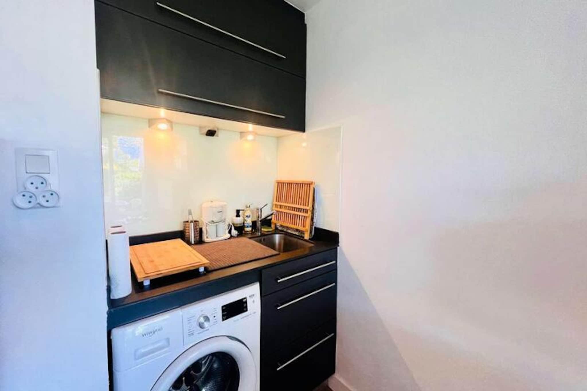 I hjertet af Quiberon, hvor den pulserende by møder den fredfyldte kystlinje, inviterer dette dejlige studie på 25 m² dig til at opleve den perfekte blanding af afslapning og aktivitet. Kun 50 meter fra hovedstranden tilbyder det et idyllisk tilflugtssted for op til fire gæster, omgivet af charmen af ??Bretagnes naturlige skønhed og livlige kultur. Uanset om du søger solrige dage ved havet eller afslappende slentreture gennem byens hyggelige gader, placerer denne ejendom dig i centrum af det hele. Indenfor er studiet omhyggeligt designet til at maksimere komfort og bekvemmelighed. Entréen har en hyggelig 140 cm dobbeltseng og et klædeskab til dine ejendele, mens stue-/spisestuen tilbyder et indbydende rum med en 140 cm sovesofa, spisebord, stole og et tv til afslappede aftener. Det fuldt udstyrede tekøkken indeholder alt, hvad du behøver for at tilberede måltider, fra køleskab med fryser og multifunktionsovn til elkedel og kaffemaskine. Et moderne brusebad og separat toilet fuldender de indvendige faciliteter og sikrer et behageligt ophold. Gå udenfor til den sydøstvendte terrasse, hvor en privat have venter. Her kan du slappe af på liggestole, nyde en udendørs spisning ved stegepladen eller blot nyde roen i dine omgivelser. En privat parkeringsplads gør det nemt at udforske den fantastiske Quiberon-halvø og dens nærliggende attraktioner. Uanset om du er tiltrukket af strandens charme, de pulserende lokale markeder eller regionens rige maritime historie, tilbyder dette charmerende studie en uforglemmelig flugt til hjertet af Bretagne. Book dit ophold og skab varige minder ved havet.