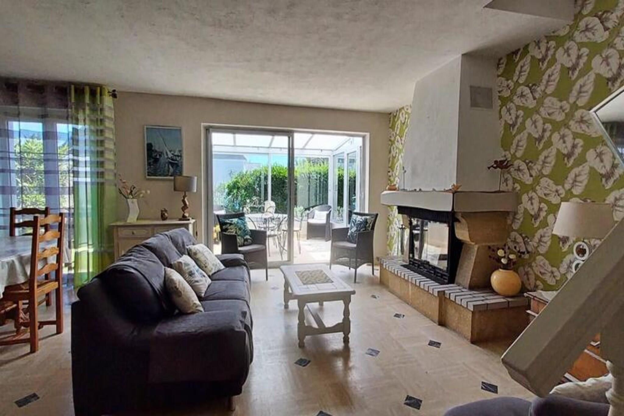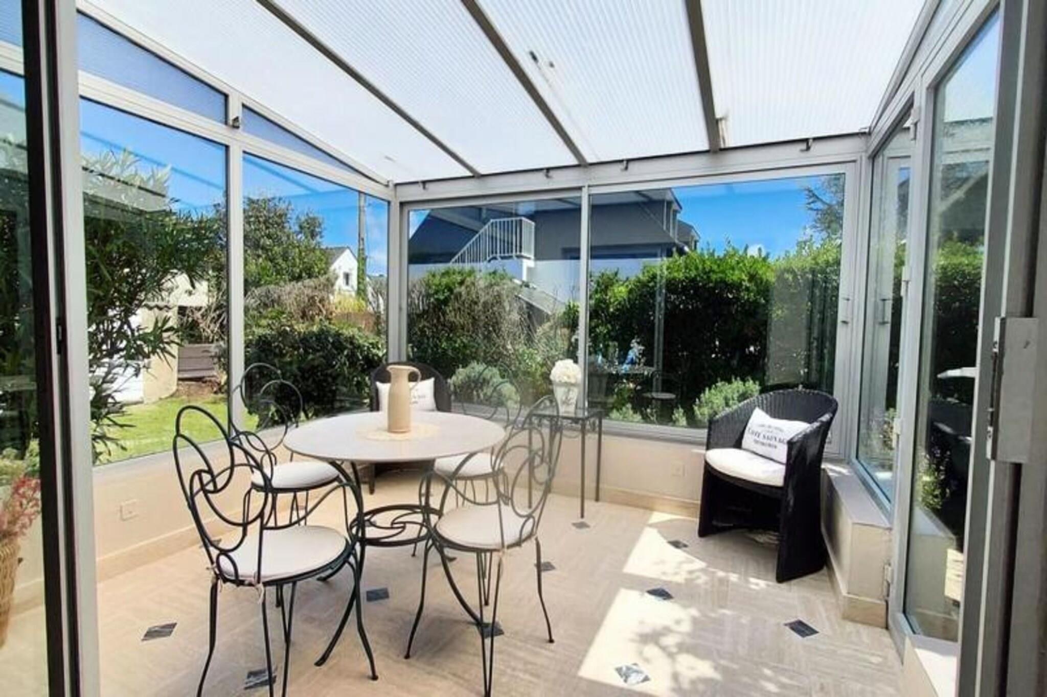 This charming holiday home offers a peaceful retreat with a quiet and fenced location. The house features comfortable sleeping arrangements, ideal for a restful stay. It includes a spacious living area with access to a veranda and a parking area in front of the house. The property is pet-free, ensuring a tranquil environment for all guests. It is perfect for families or small groups, providing a relaxed atmosphere away from the hustle and bustle. Located just 700 meters from the wild coast and 1200 meters from both the beach and the town center, this property offers easy access to local attractions. You can explore the picturesque streets of the Hent Barr Avel district, known for its cobbled streets and stone houses. The town center is home to various cafes, shops, and restaurants, including a weekly market offering fresh local produce. Enjoy nearby sights like the Fort de Penthièvre and the Port-Maria lighthouse, all within a short drive or pleasant walk. The house is well-equipped for your comfort, featuring a modern kitchen with essential appliances. It includes a washing machine for your convenience, and the bathroom offers all necessary amenities for a relaxing stay. The outdoor veranda provides a perfect space to unwind, and the secure parking makes it easy to explore the area at your own pace.