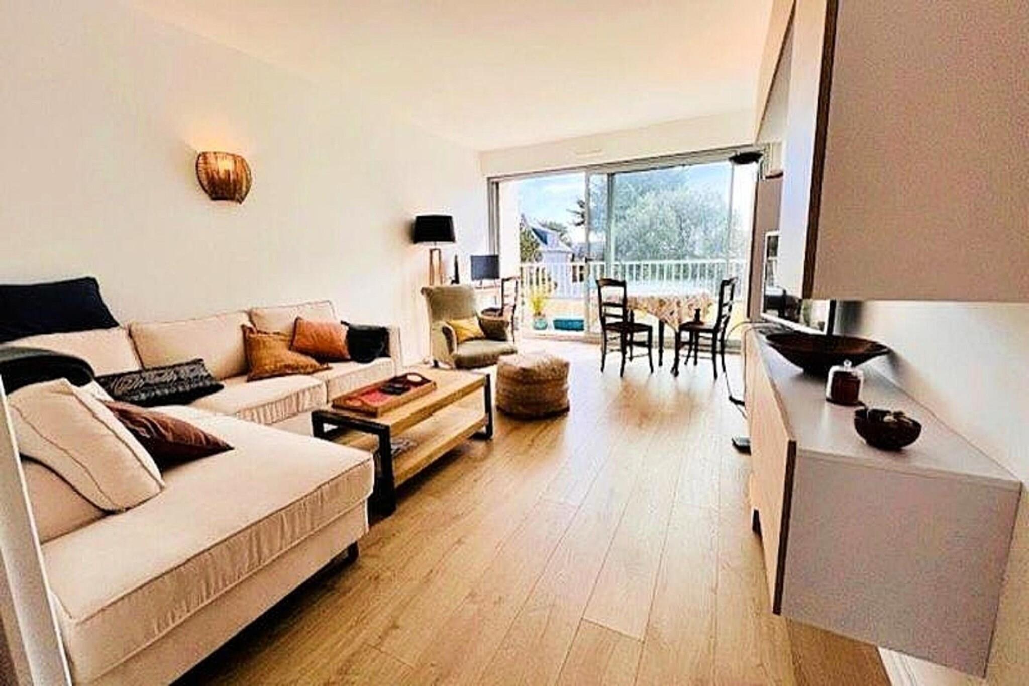 This stunning 65m² apartment, newly renovated and tastefully decorated, offers a comfortable and stylish stay for up to four people. The living room is furnished with a convertible sofa, table, chairs, and a TV, providing a cozy space to relax. The bedroom features a 160cm bed, and the apartment is equipped with duvets. Pets are not allowed, ensuring a quiet and peaceful environment. Guests will enjoy the south-facing balcony, perfect for relaxing in the sunshine. A parking space is available, and Wi-Fi is provided for convenience. The apartment is ideally located in a quiet area, just steps away from the bustling city center and the famous Grande Plage de Quiberon. Guests can enjoy easy access to local attractions, cafes, restaurants, and markets, making it a perfect base for exploring the charming town and its coastal beauty. Whether you're lounging on the beach or strolling through the shops, this location offers a perfect blend of relaxation and local culture. The apartment features a separate, fully equipped kitchen with modern amenities, including a 3-burner induction hob, dishwasher, washing machine, refrigerator, coffee maker, kettle, toaster, and microwave, providing everything you need for a self-sufficient stay. The bathroom includes a heated towel rail, and there are separate WC facilities. Optional services such as end-of-stay cleaning, linen rental, and childcare equipment are available, ensuring a hassle-free and comfortable stay.