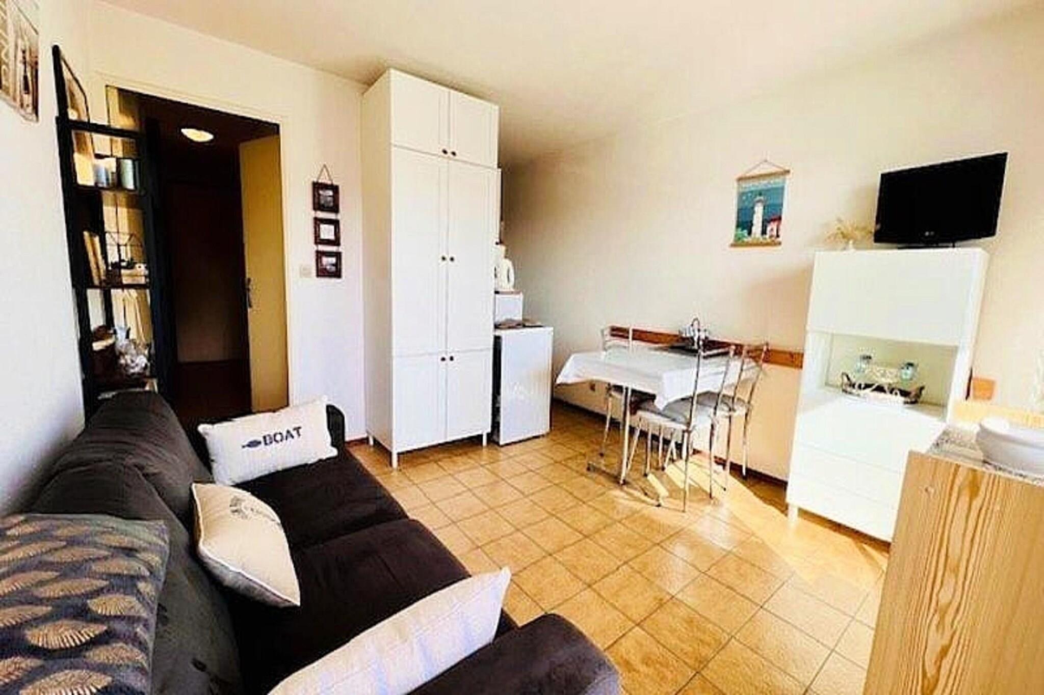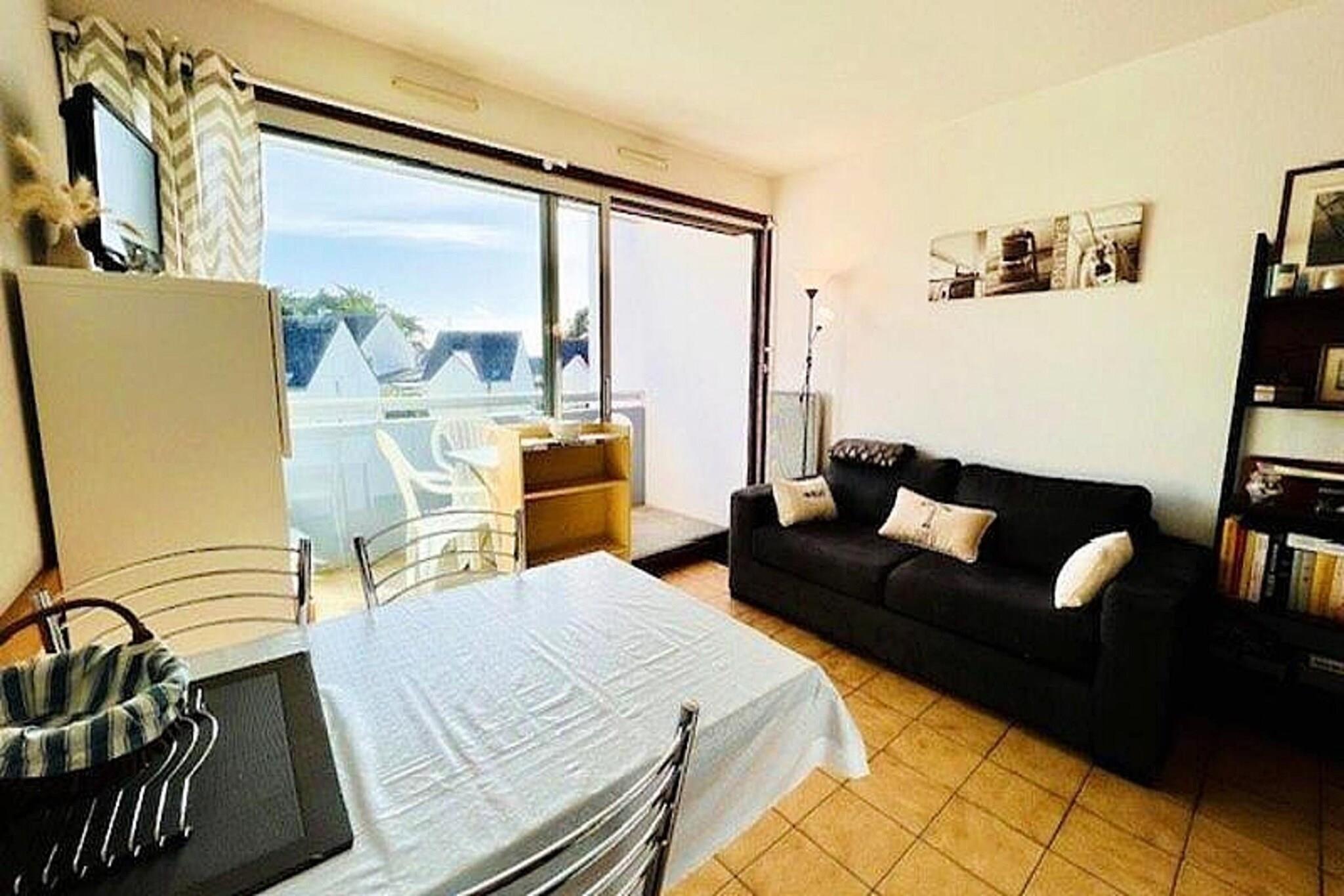 This charming 24m² apartment, designed for 2 people, offers a cozy retreat with a comfortable 140cm bed in the bedroom. The living room features a sofa, table, and TV, providing a relaxing space to unwind. The apartment is not pet-friendly, ensuring a peaceful environment for all guests. A south-facing balcony with garden furniture invites guests to enjoy the outdoor surroundings. Free parking is provided within the residence for added convenience. Located just 400 meters from the beautiful Grande Plage de Quiberon, this apartment is perfectly situated for beach lovers and outdoor enthusiasts. The Beg Er Vil district offers a quiet yet accessible location, with easy access to local cafes, restaurants, and markets. Enjoy a stroll along the beach or explore the surrounding natural beauty and vibrant local culture. The apartment is well-equipped with everything needed for a comfortable stay, including a kitchen area with a fridge, combined oven-microwave, ceramic hob, coffee maker, toaster, and kettle. A bathroom and separate WC ensure convenience, while the south-facing balcony offers a perfect spot to relax. Additional services such as cleaning, linen rental, and wifi minibox are available upon request.
