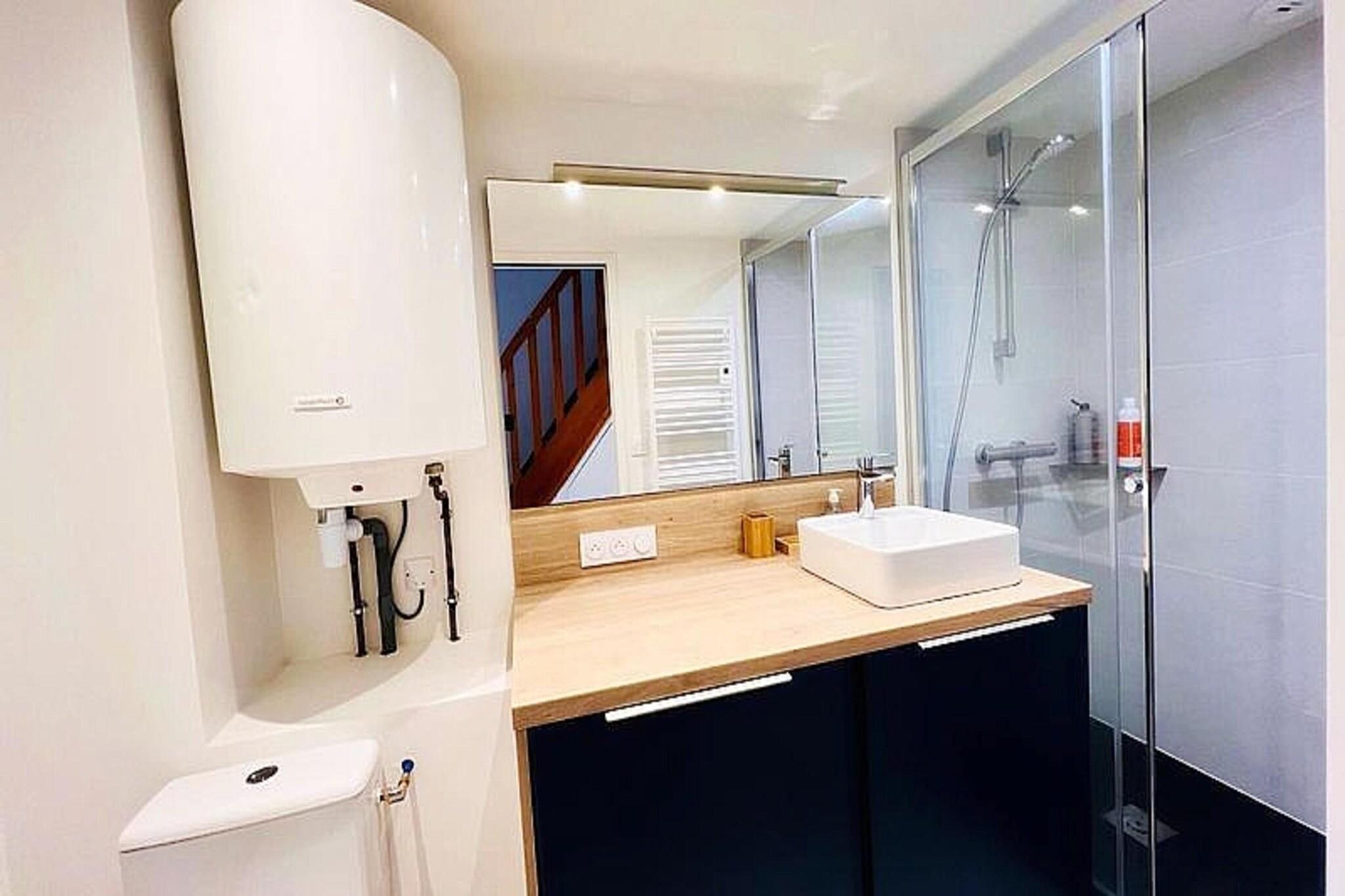 This beautifully renovated 35m² apartment for 4 people offers a comfortable and modern stay with a 140cm bed in the entrance area and a cozy living room with a sofa, table, chairs, and TV. The apartment is pet-friendly with a supplement, allowing you to bring along your furry companion. The first-floor bedroom features two adjustable 90cm beds and ample storage space. A balcony overlooks the swimming pool and tennis court, creating a perfect spot to relax. Private parking is available, and a bicycle storage room is provided in the basement. Located just a short distance from the city center and the beach, this apartment is ideally situated for exploring the vibrant local area. You’ll have easy access to cafes, restaurants, and markets, making it perfect for enjoying the local cuisine and shopping. The proximity to tennis and the swimming pool within the residence offers additional leisure options for guests. The apartment includes a fully equipped kitchen with an oven, dishwasher, fridge/freezer, induction hob, coffee maker, and kettle, making it easy to prepare meals. The bathroom is fitted with a washing machine and WC for added convenience. Enjoy access to the private swimming pool from mid-June to mid-September, enhancing your stay with a refreshing dip.