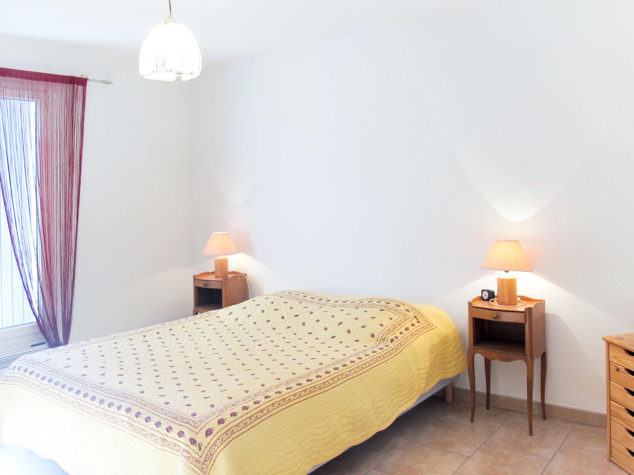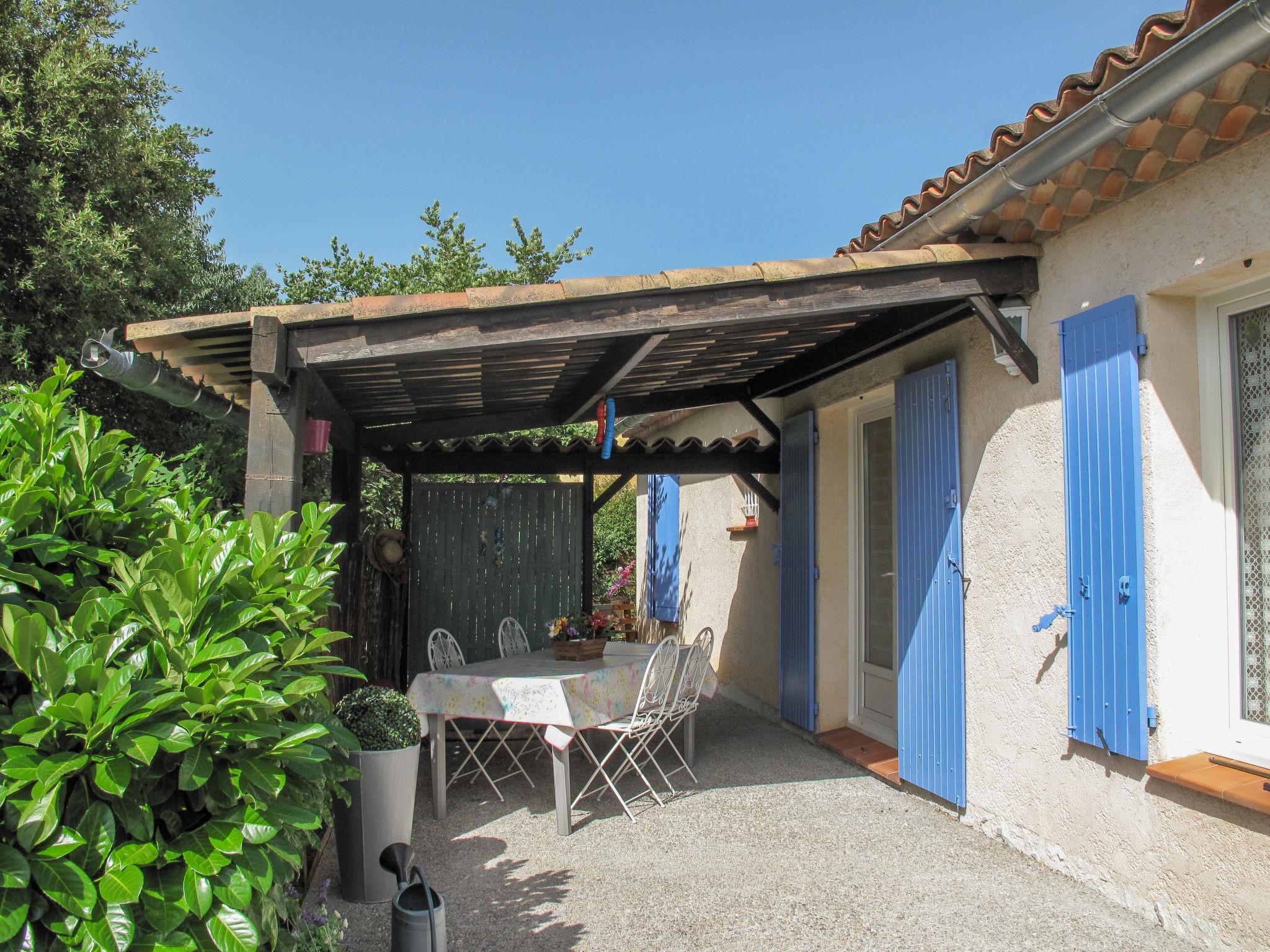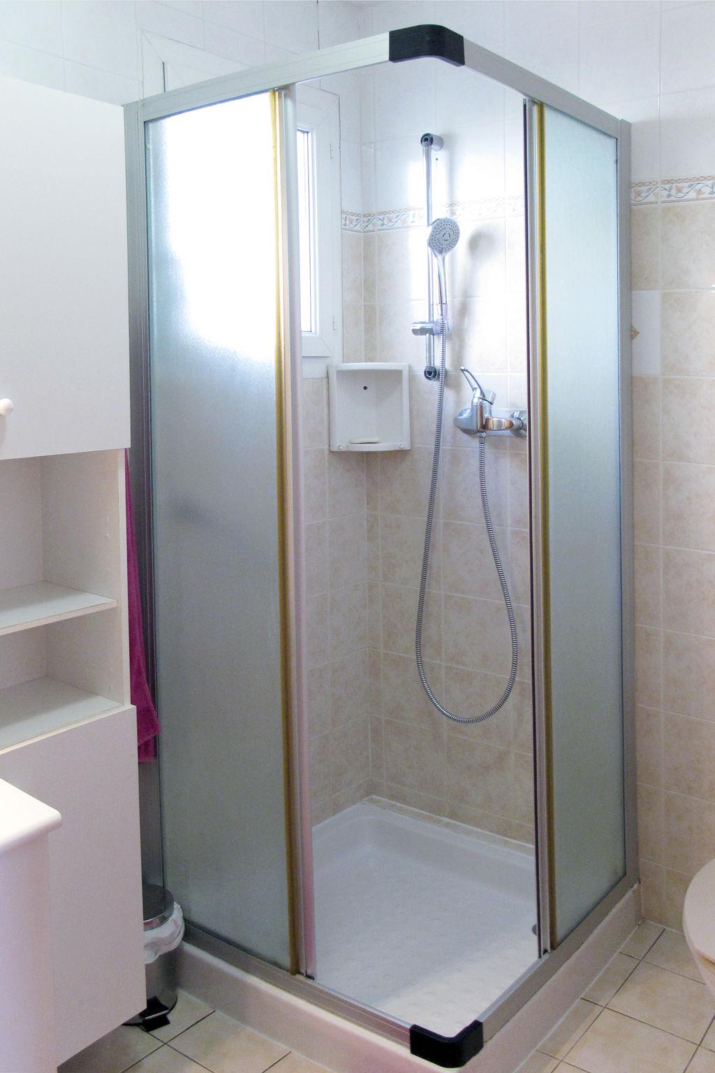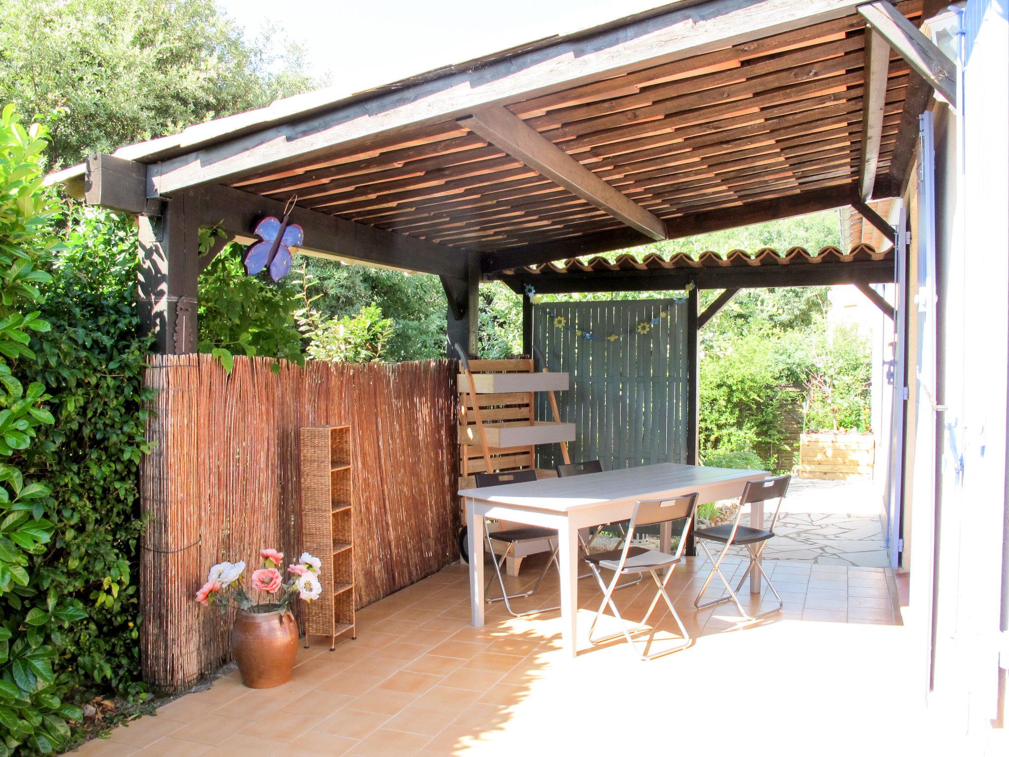 "Villa Audrey", 3-room house 83 m2. Rustic and stylish furnishings: living room with Scandinavian wood stove, dining table, TV and hi-fi system. Exit to the terrace. 1 room with 1 french bed (160 cm). 1 room with 1 bed and 1 x 2 bunk beds. Open kitchen (mini-oven, dishwasher, 4 ceramic glass hob hotplates, toaster, kettle, microwave, electric coffee machine) with bar. Shower/WC, sep. WC. Electric heating. Terrace partly roofed. Terrace furniture, barbecue (portable), deck chairs (2), box-room. View of the garden. Facilities: washing machine, baby cot. Please note: non-smoking house. Smoke alarm, fire extinguisher. Offer by a private individual according to Art. 155, IV of CGI.