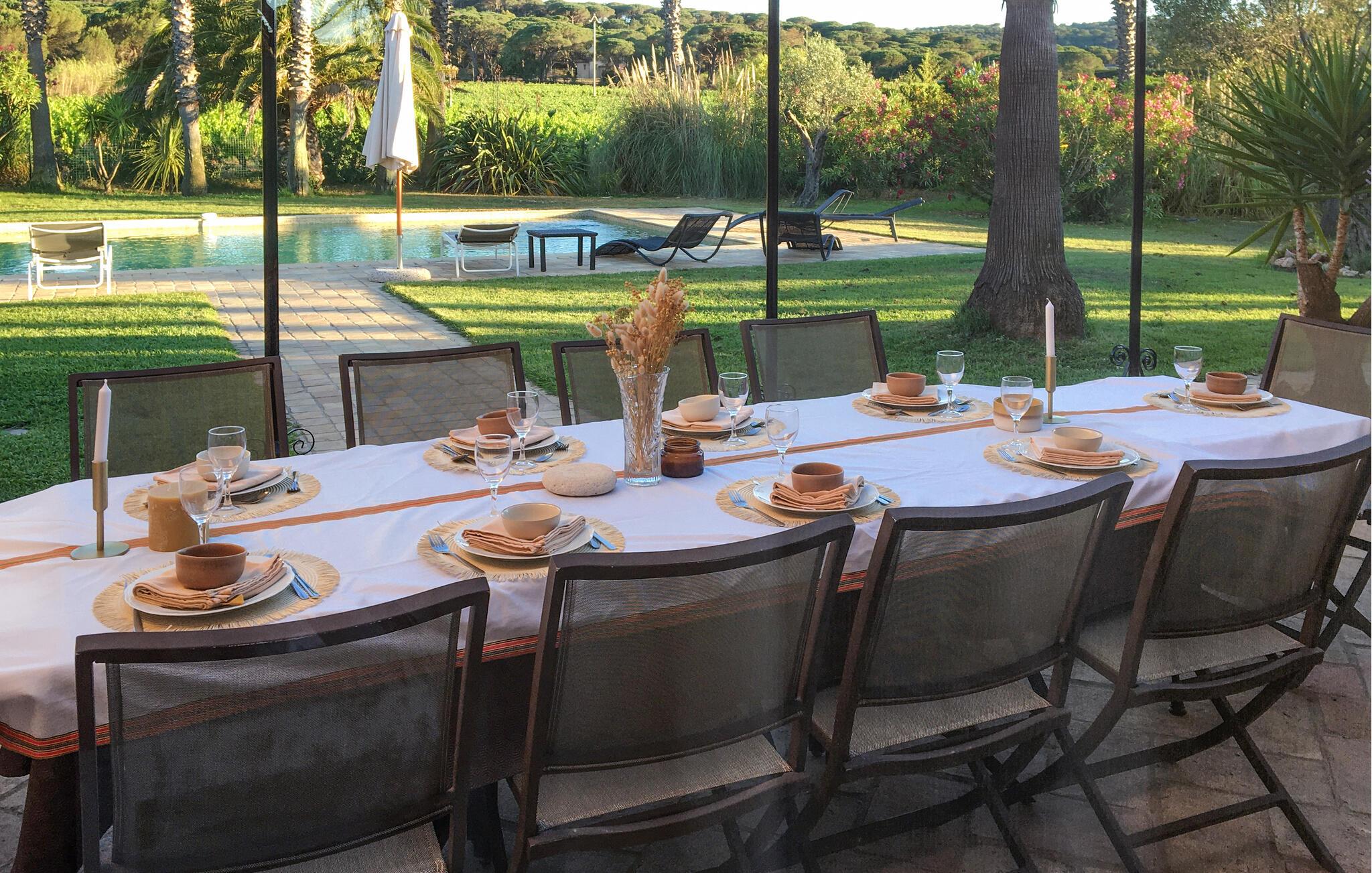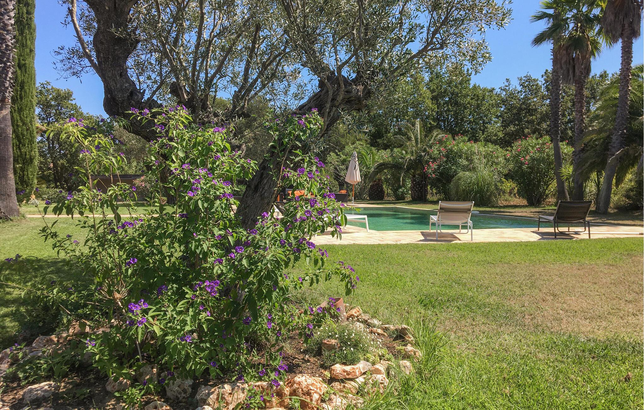 Den hyggelige terrasse med et århundrede gammelt oliventræ i midten indbyder til solbadning og til festlige fællesmåltider om aftenen. Det bedste sted at solbade er ved den store pool. I kommer ikke til at kede jer her, da I får et bordtennisbord, en boulebane og cykler til rådighed. Slap af i haven og nyd solnedgangen på terrassen, mens I lægger planer for de kommende dage.