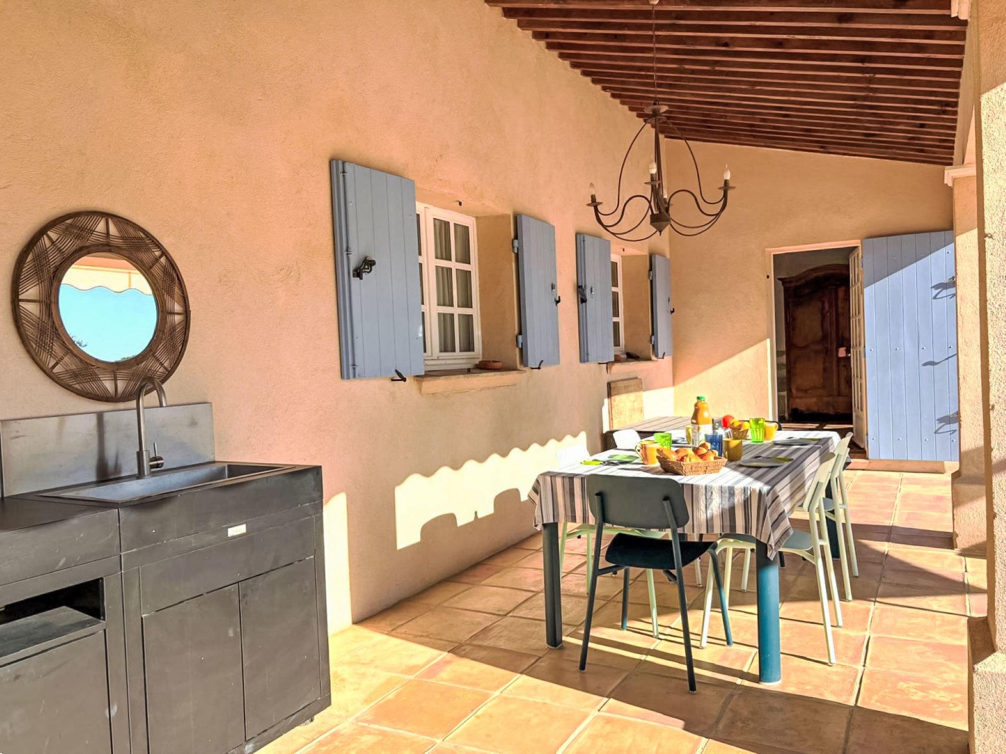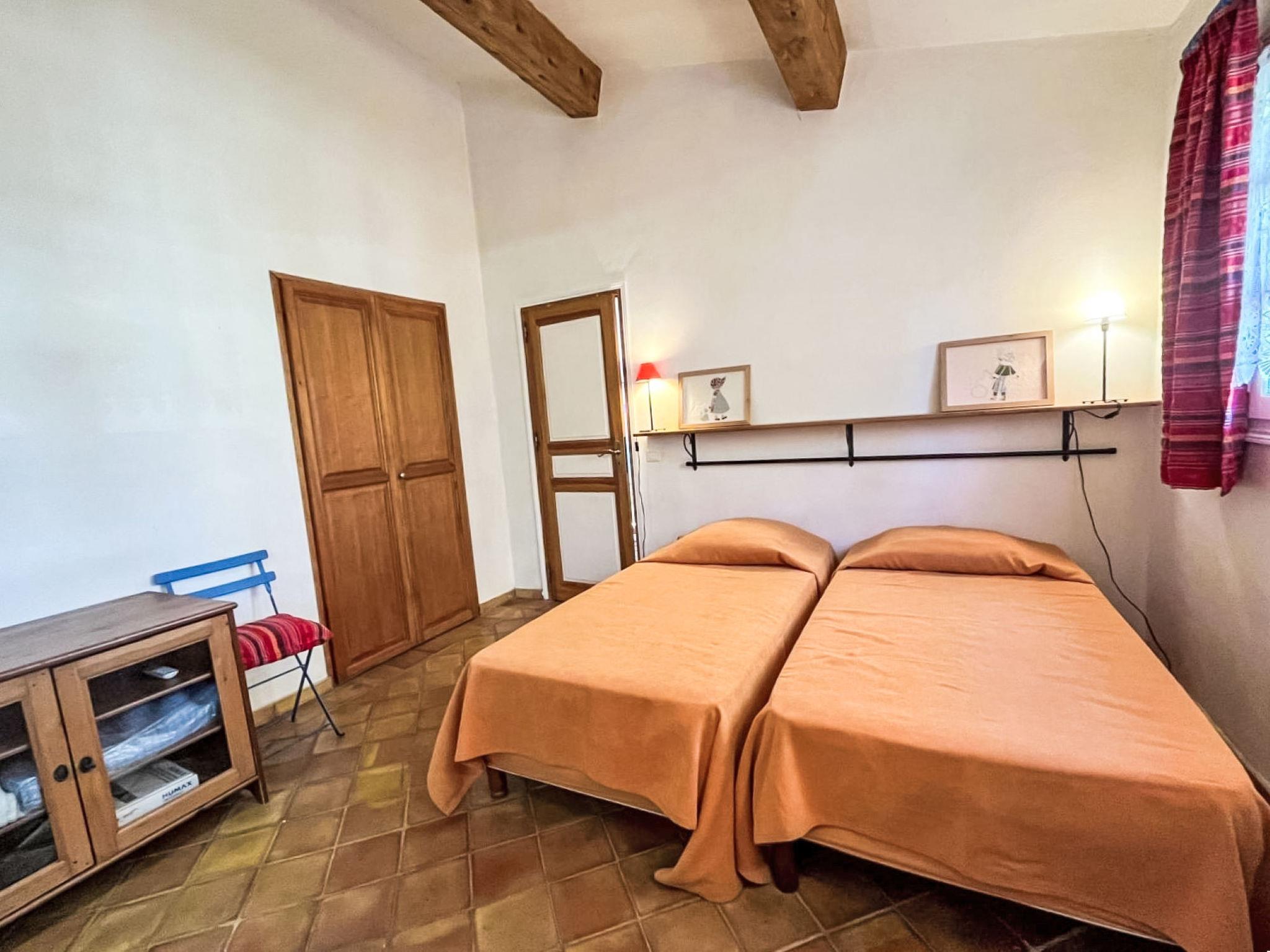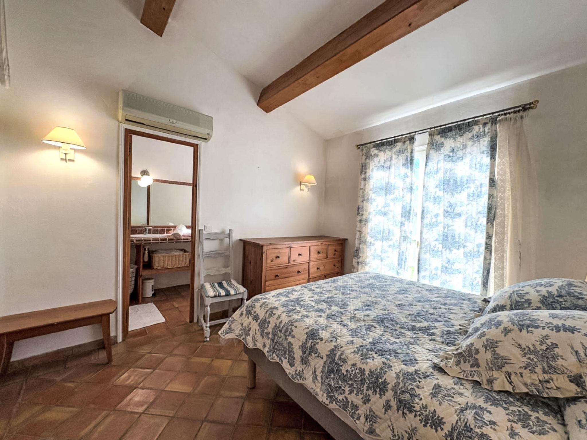 3-room house 90 m2. Cosy furnishings: living/dining room with TV (flat screen). Exit to the terrace. 1 room with 1 french bed (160 cm, length 190 cm), shower/WC and double hand-basin. Exit to the terrace. 1 room with 2 beds (90 cm, length 190 cm), shower. Open kitchen (4 hot plates, oven, dishwasher, toaster, kettle, microwave, freezer, electric coffee machine, Capsules for coffee machine (Nespresso) extra). Sep. WC. Electric heating, air-conditioning. Large terrace 45 m2 partly roofed, south-east facing position. Terrace furniture, barbecue, deck chairs (4). Facilities: washing machine, iron. Internet (WiFi, free). Parking (2 cars). Please note: non-smokers only. Maximum 1 pet/ dog allowed. Smoke alarm. Offer by a private individual according to Art. 155, IV of CGI. 83101000875Z5