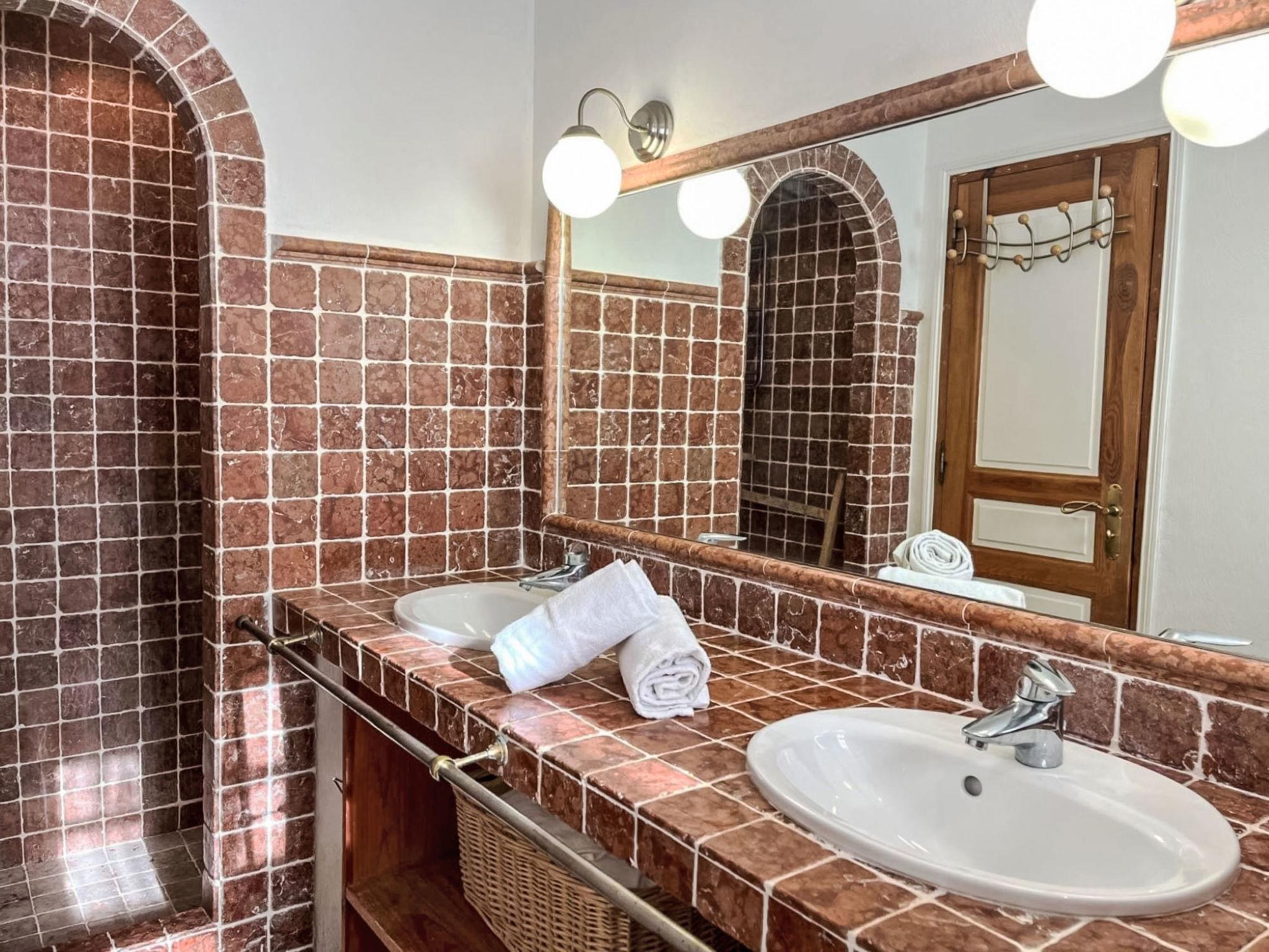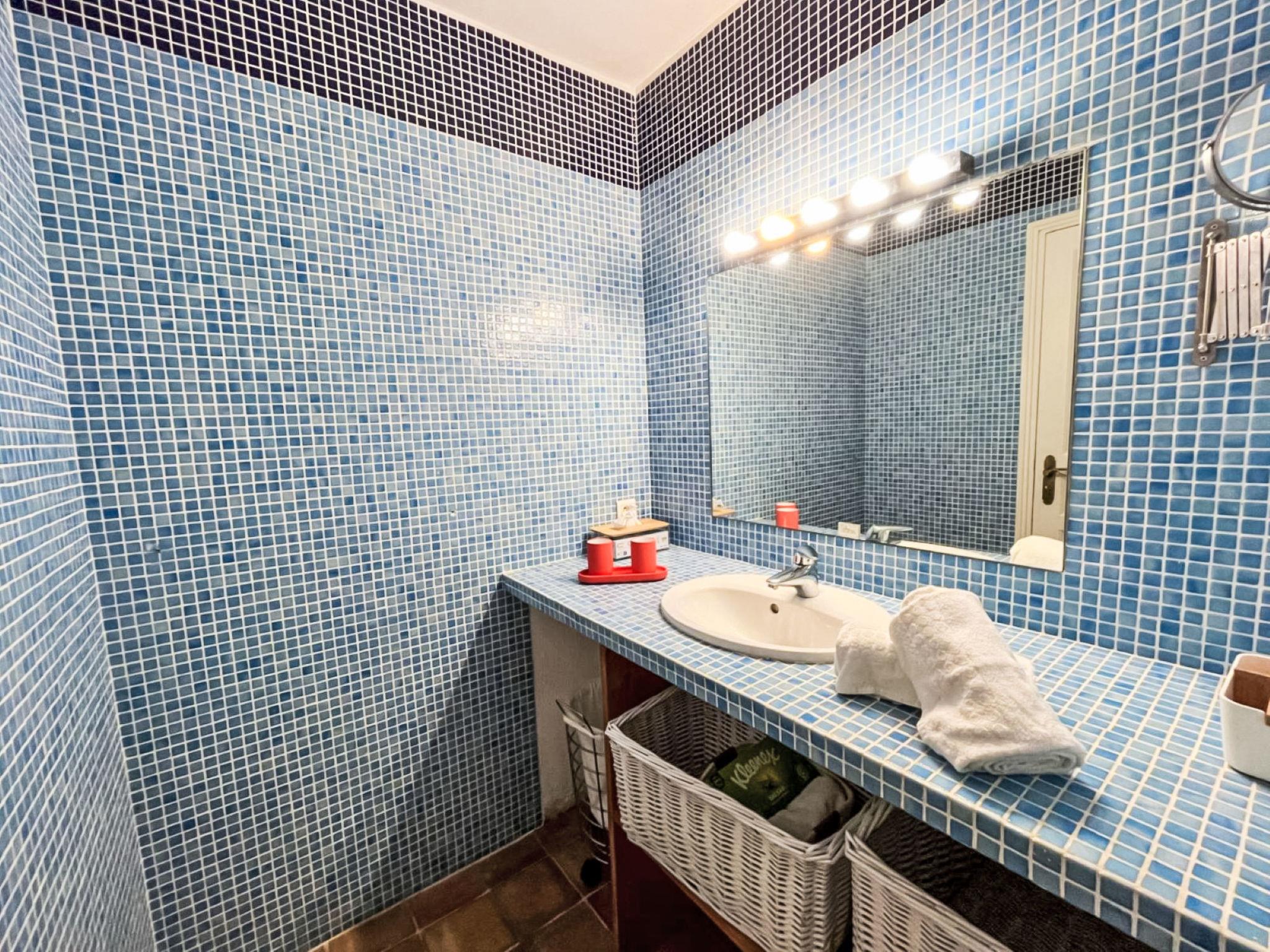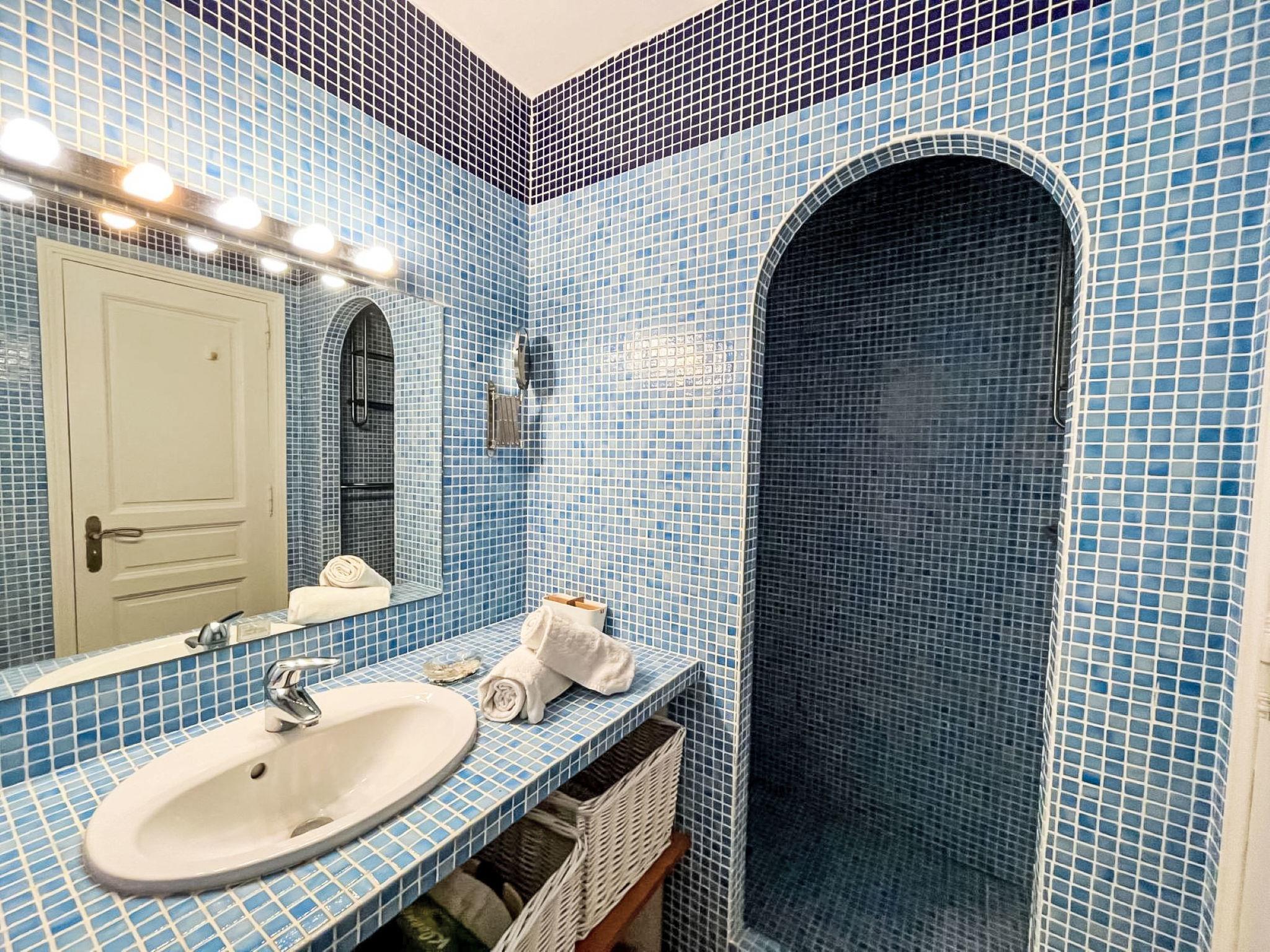 3-room house 90 m2. Cosy furnishings: living/dining room with TV (flat screen). Exit to the terrace. 1 room with 1 french bed (160 cm, length 190 cm), shower/WC and double hand-basin. Exit to the terrace. 1 room with 2 beds (90 cm, length 190 cm), shower. Open kitchen (4 hot plates, oven, dishwasher, toaster, kettle, microwave, freezer, electric coffee machine, Capsules for coffee machine (Nespresso) extra). Sep. WC. Electric heating, air-conditioning. Large terrace 45 m2 partly roofed, south-east facing position. Terrace furniture, barbecue, deck chairs (4). Facilities: washing machine, iron. Internet (WiFi, free). Parking (2 cars). Please note: non-smokers only. Maximum 1 pet/ dog allowed. Smoke alarm. Offer by a private individual according to Art. 155, IV of CGI. 83101000875Z5