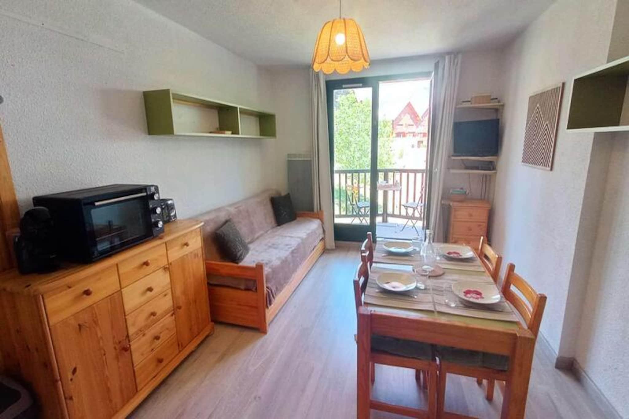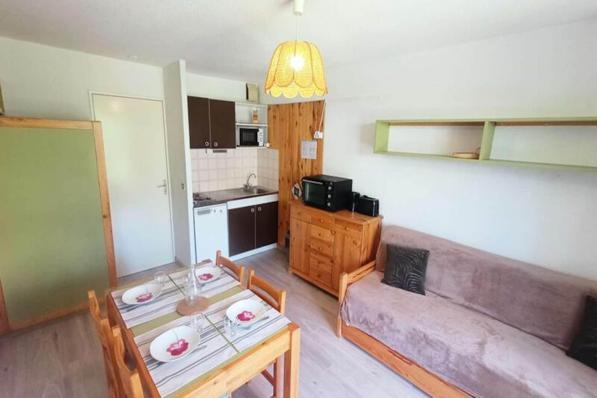 I hjertet af den charmerende Réallon-plads, kun 50 meter fra snefronten, inviterer dette hyggelige studie dig til at fordybe dig i de sydlige Alpers skønhed. Med udsigt over det pulserende feriested og omgivet af betagende bjergudsigter er denne indkvartering den perfekte base for en foryngende alpin ferie. Uanset om du er her for at stå på ski, udforske eller blot slappe af, vil du føle dig hjemme i disse idylliske omgivelser. Studiet er designet til komfortabelt at rumme op til fire gæster og har en lys opholdsstue med en sovesofa (to enkeltsenge), et fuldt udstyret køkkenhjørne og et privat soveområde med køjesenge (to enkeltsenge). Det funktionelle badeværelse sikrer bekvemmelighed, mens balkonen tilbyder et dejligt sted at slappe af og se den livlige plads nedenfor. Det er et familievenligt tilflugtssted, hvor du kan nyde både komfort og praktisk anvendelighed. Réallon-feriestedet, der ligger ved indgangen til Écrins Nationalpark, tilbyder en unik alpin oplevelse med panoramaudsigt over Aiguilles de Chabrières og Serre-Ponçon-søen. Skiområdet henvender sig til alle niveauer, og feriestedets varme atmosfære suppleres af aktiviteter som sneskovandring, kælkning, hundeslædekørsel og endda natskiløb. Om sommeren forvandles regionen til et paradis for vandrere og naturelskere med stier, der afslører Alpernes fantastiske skønhed. Réallon er let tilgængeligt med bil eller tog og sikrer en stressfri ankomst med gratis parkering og regelmæssige shuttlebusser fra Gap. Med eksklusive rabatter på liftkort og leje af udstyr er dette studie et ideelt valg for familier eller venner, der søger en sporty, men afslappende ferie. Book nu og skab uforglemmelige minder i denne alpine perle!