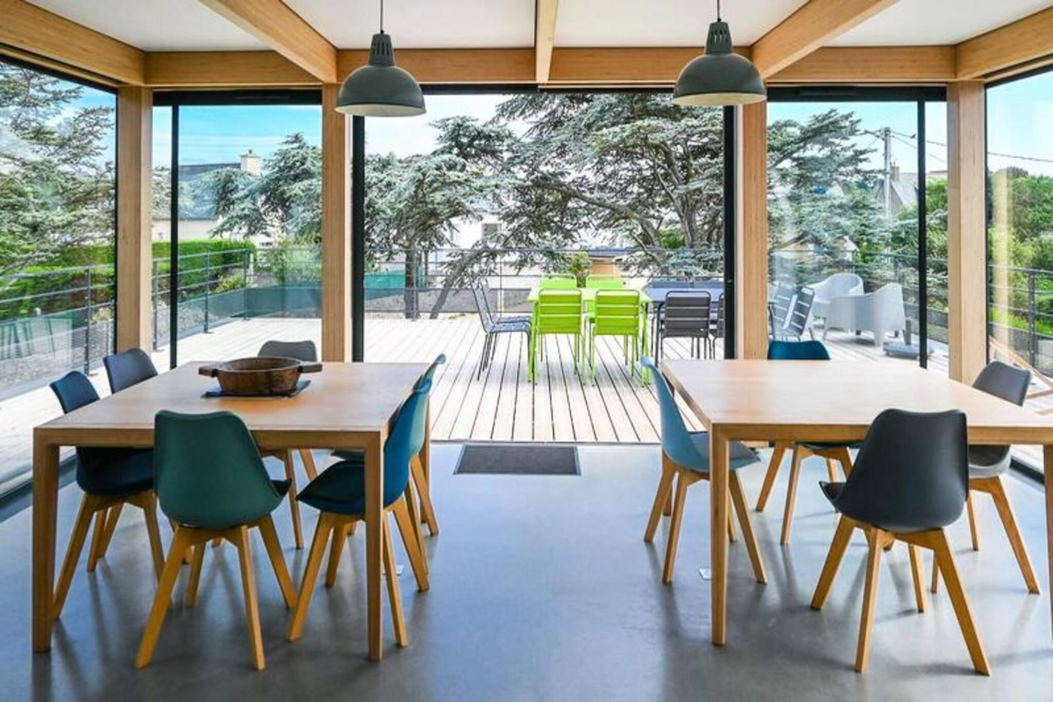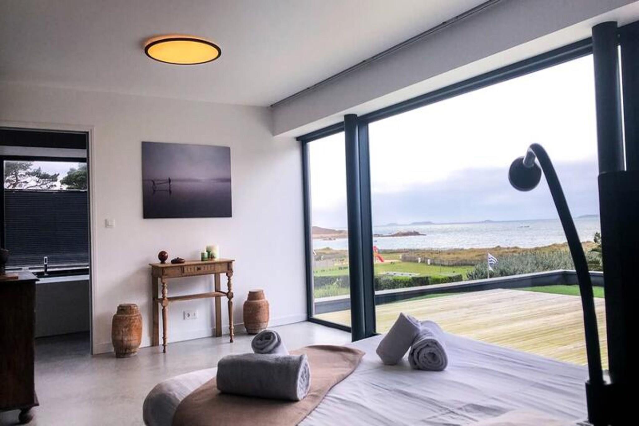 PORT BLANC, udlejning af en exceptionel moderne villa til 8/10 personer, et stenkast fra Dunes strand og en storslået udsigt over havet. Allestedsnærværende, den panoramiske havudsigt fanger øjet hele dagen og forbløffer dig om aftenen ved solnedgang. Takket være dens allestedsnærværende karnapper har du altid indtrykket af at være i direkte kontakt med havet. Med sine 200 m2 vil denne villa med moderne materialer og raffineret udsmykning tilbyde dig plads og lys. PORT BLANC, udlejning af en enestående moderne villa til 8/10 personer, et stenkast fra Dunes strand og en storslået udsigt over havet. Allestedsnærværende, den panoramiske havudsigt fanger øjet hele dagen og forbløffer dig om aftenen ved solnedgang. Takket være dens allestedsnærværende karnapper har du altid indtrykket af at være i direkte kontakt med havet. Med sine 200 m2 vil denne villa med moderne materialer og raffineret udsmykning tilbyde dig plads og lysstyrke. Stuerne, åbne og komfortable, er veludstyrede. Det udstyrede køkken og den centrale stue ovenpå åbner ud til en rummelig terrasse, der lover lediggang og afslapning mod en blå horisont med lyden af ??bølgerne. Forkæl dig selv med en fortryllet pause, et stenkast fra havet. Svømning, fiskeri, gåture langs kysten, kajaksejlads og sejlerskolen i nærheden... kom og nyd Bretagnes fordele. DENNE EJENDOM TILBYDER: DETALJER OM VÆRELSER, SENGE OG BADEVÆRELSER: - Soveværelse 1: master suite med badeværelse og bruser og privat toilet. Panoramaudsigt over havet. - Soveværelse 2: 160cm seng - Soveværelse 3: 140 cm højseng, - Soveværelse 4: 2 90 cm senge og 2 ekstra senge vil blive værdsat for at øge antallet af senge. Mulighed for at leje det uafhængige studie mod et ekstra gebyr: - Soveværelse 5: 1 dobbeltseng 160. - soveværelse 6: 2 90 køjesenge. - stue i studiet: sovesofa - badeværelse og toilet i studiet - Et badeværelse og 1 toilet vil fuldende soveområdet. Udvendigt / FRITIDSUDSTYR: - Plancha, havemøbler, liggestol - Have. Parkering. - Fodbold mål - Skorsten - Klitstranden 2 minutter væk til fods. - Sejlerskolen 5 minutter væk til fods. - brusebad for at vende tilbage fra stranden NOTE: - internetforbindelse - Mulighed for leje af cykler. - Mulighed for at bestille indkøbsliste til din ankomst. - kæledyr accepteret efter valideret anmodning. - Et depositum på EURO 2000 vil blive påkrævet ved adgang til lokalerne. - For at du kan nyde vores smukke region, forventes rengøringsgebyret på EURO 180. - Mulighed for at få redt senge ved ankomsten (inklusive håndklæder) for EURO15 pr. person. Parkeringspladsen og haven vil blive delt med den anden bolig på ejendommen. Ingen gener mellem de 2 boliger. Mulighed for leje af hele ejendommen. En privat concierge-service er også til din rådighed under dit ophold. Levering af måltider, cykler og indkøb før din ankomst muligt ved reservation. Massage, temaaftener (f.eks. pandekageaften eller fødselsdagsaften), forslag og reservation af aktiviteter er også muligt.