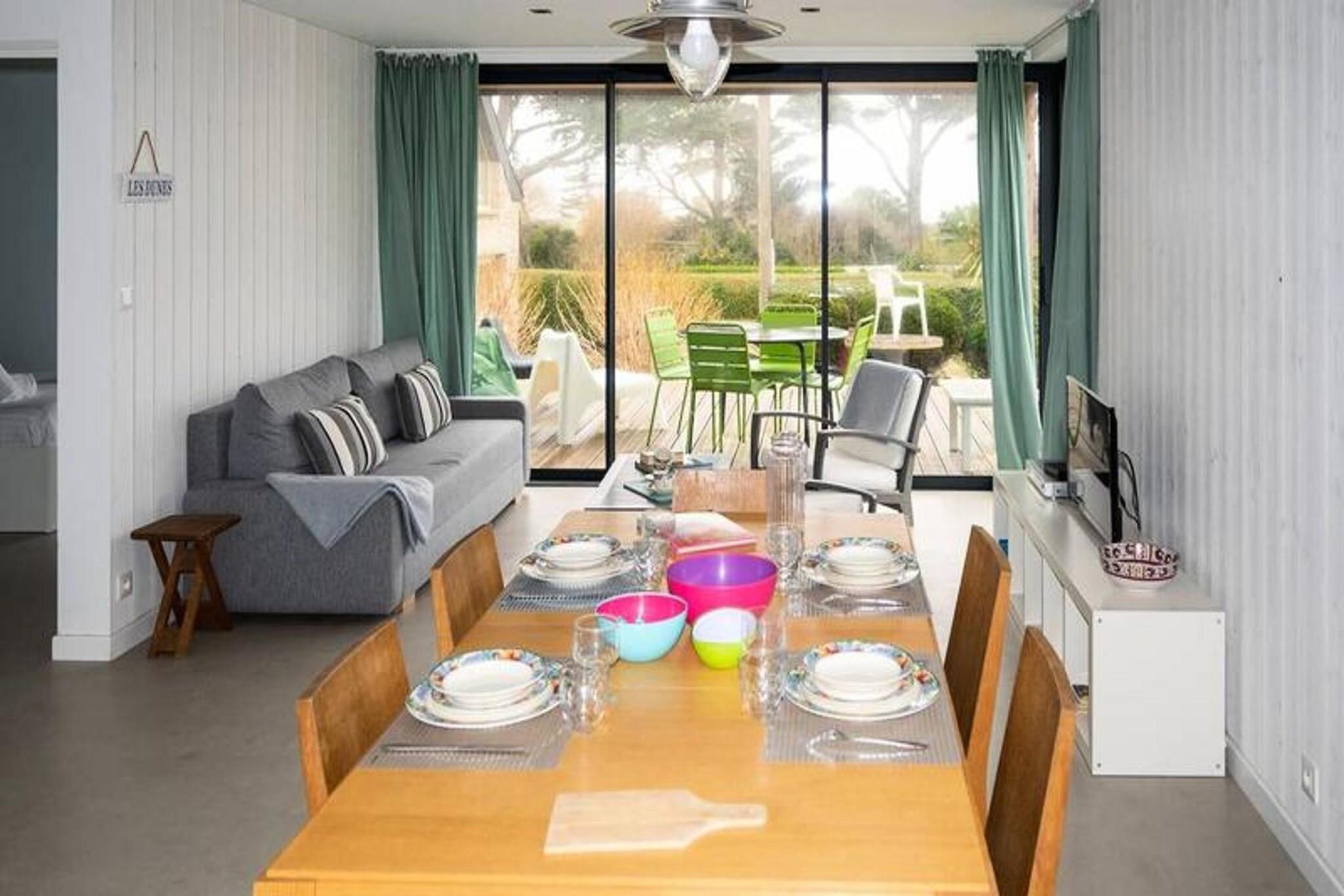 Port Blanc, udlejning af en moderne lejlighed til 4/6 personer, et stenkast fra Dunes strand og en storslået udsigt over havet. Allestedsnærværende, den panoramiske havudsigt fanger øjet hele dagen og forbløffer dig om aftenen ved solnedgang. Takket være dens allestedsnærværende karnapper har du altid indtrykket af at være i direkte kontakt med havet. Med sine 60 m2 vil denne bolig med moderne materialer og raffineret udsmykning tilbyde dig plads og lysstyrke. Den p Port Blanc, udlejning af en moderne lejlighed til 4/6 personer, et stenkast fra Dunes strand og en storslået udsigt over havet. Allestedsnærværende, den panoramiske havudsigt fanger øjet hele dagen og forbløffer dig om aftenen ved solnedgang. Takket være dens allestedsnærværende karnapper har du altid indtrykket af at være i direkte kontakt med havet. Med sine 60 m2 vil denne bolig med moderne materialer og raffineret udsmykning tilbyde dig plads og lysstyrke. Stuerne, åbne og komfortable, er veludstyrede. Det udstyrede køkken og stuen åbner ud til en terrasse, der lover lediggang og afslapning mod en blå horisont med lyden af ??bølgerne. Dens soveværelse i stueetagen tilbyder dig en master suite, et soveværelse med en køjeseng (2 90 cm senge). En sovesofa (sover 2) i stuen vil blive værdsat for at øge antallet af senge. Parkeringspladsen og haven vil blive delt med en anden bolig til 8/10 personer, som du også kan leje. Ingen gener mellem de 2 boliger. Forkæl dig selv med en fortryllet pause, et stenkast fra havet. Svømning, fiskeri, gåture langs kysten, kajaksejlads og sejlerskolen i nærheden... kom og nyd Bretagnes fordele. En privat concierge-service er også til din rådighed under dit ophold. Levering af måltider, cykler og indkøb før din ankomst muligt ved reservation. Massage, temaaftener (f.eks. pandekageaften eller fødselsdagsaften), forslag og reservation af aktiviteter er også muligt. Et depositum på EURO 1.500 vil blive påkrævet ved adgang til lokalerne. Rengøringsgebyr på EURO 90 vil blive forventet. Mulighed for at få redt senge ved ankomsten for EURO15 pr. person.
