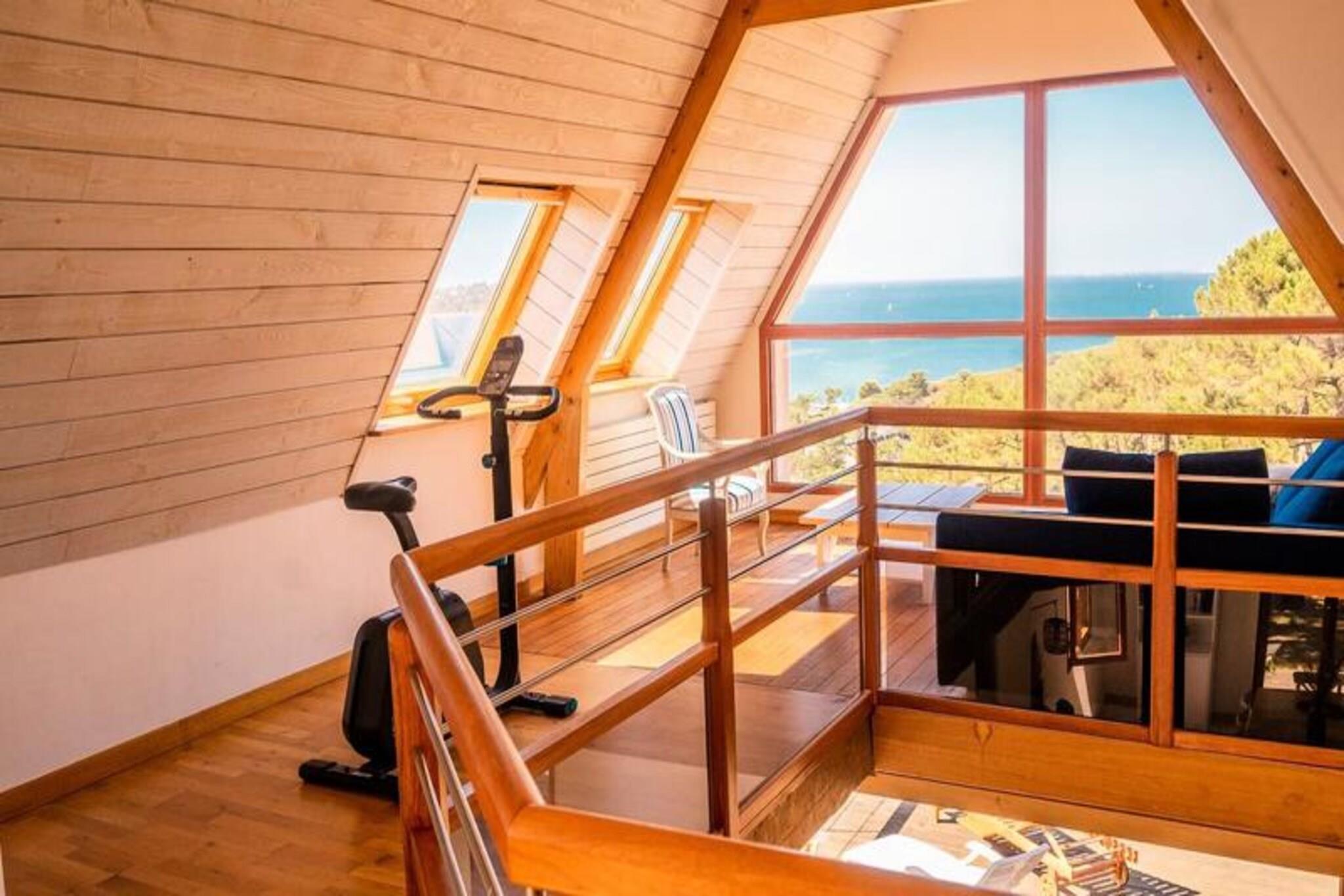 COTE DE GRANIT ROSE, udlejning af en enestående villa til 10/12 personer kun 10 minutter fra PERROS GUIREC og med panoramaudsigt over havet. Allestedsnærværende, havudsigten fanger øjet hele dagen og forbløffer dig om aftenen ved solnedgang. Takket være dens allestedsnærværende karnapper har du altid indtrykket af at være i direkte kontakt med havet. Denne villa med sin raffinerede udsmykning vil tilbyde dig plads og lysstyrke. Stuerne, åbne og komfortable, åbner ud til en rummelig terrasse, som lover lediggang og afslapning mod en blå horisont med lyden af ??bølgerne. Forkæl dig selv med en fortryllet pause, kun et stenkast fra havet. Svømning, fiskeri, kystvandring, kajaksejlads og sejlerskolen i nærheden... kom og nyd Bretagnes fordele. DENNE EJENDOM TILBYDER: DETALJER OM VÆRELSER, SENGE OG BADEVÆRELSER: - Soveværelse 1 (stueetagen): 1 160 cm seng og 1 1 90 cm seng med tilhørende badeværelse og kontor. - Soveværelse 2 (etage): 160cm seng - Soveværelse 3 (etage): 140 cm seng, - Soveværelse 4 (etage): 1 160 cm seng - havudsigt - Mezzanin: en sovesofa ud mod havet - Badeværelse med bruser og badekar ovenpå - 1 selvstændigt toilet i stueetagen og ovenpå Udvendigt / FRITIDSUDSTYR: - En enestående udsigt over Perros Guirec - Privat ejendom, ro sikret - Grill, havemøbler, liggestole - Lukket have, parkering. - Bordtennisbord, motionscykel - Skorsten - Vandresti 2 skridt fra ejendommen NOTE: - Internetforbindelse - En rejseseng, en høj stol, badekar og babypotte - Mulighed for leje af cykler. - Mulighed for at bestille indkøbsliste til din ankomst. - Kæledyr er tilladt efter valideret anmodning. - Et depositum på EURO 2000 vil blive påkrævet ved adgang til lokalerne. - Rengøringsgebyr på EURO 220 vil blive forventet. - Mulighed for at få redt senge ved ankomsten (inklusive håndklæder) for EURO15 pr. person. En privat concierge-service er også til din rådighed under dit ophold. Levering af måltider, cykler og indkøb før din ankomst muligt ved reservation. Massage, temaaftener (f.eks. pandekageaften eller fødselsdagsaften), forslag og reservation af aktiviteter er også muligt.