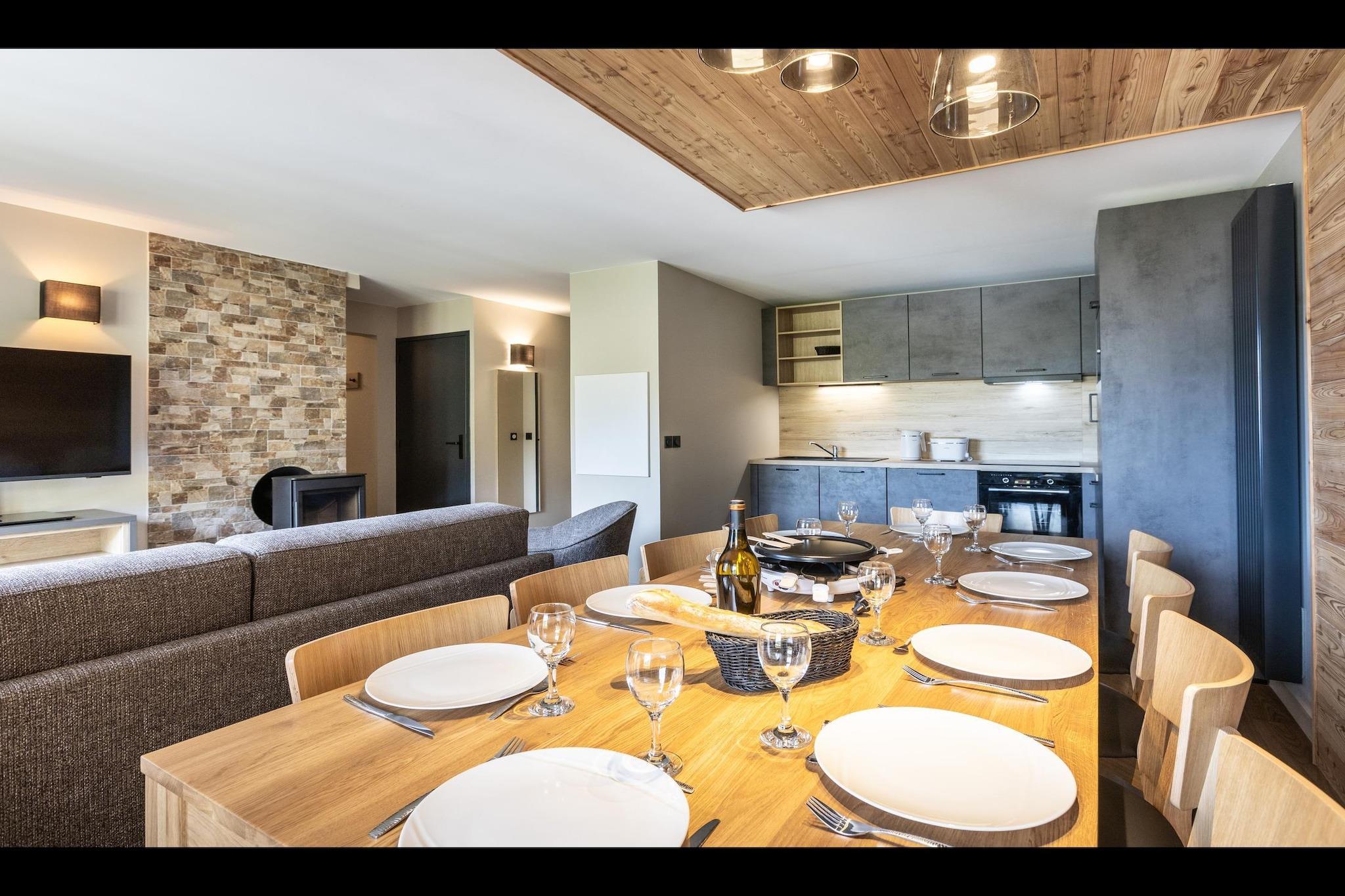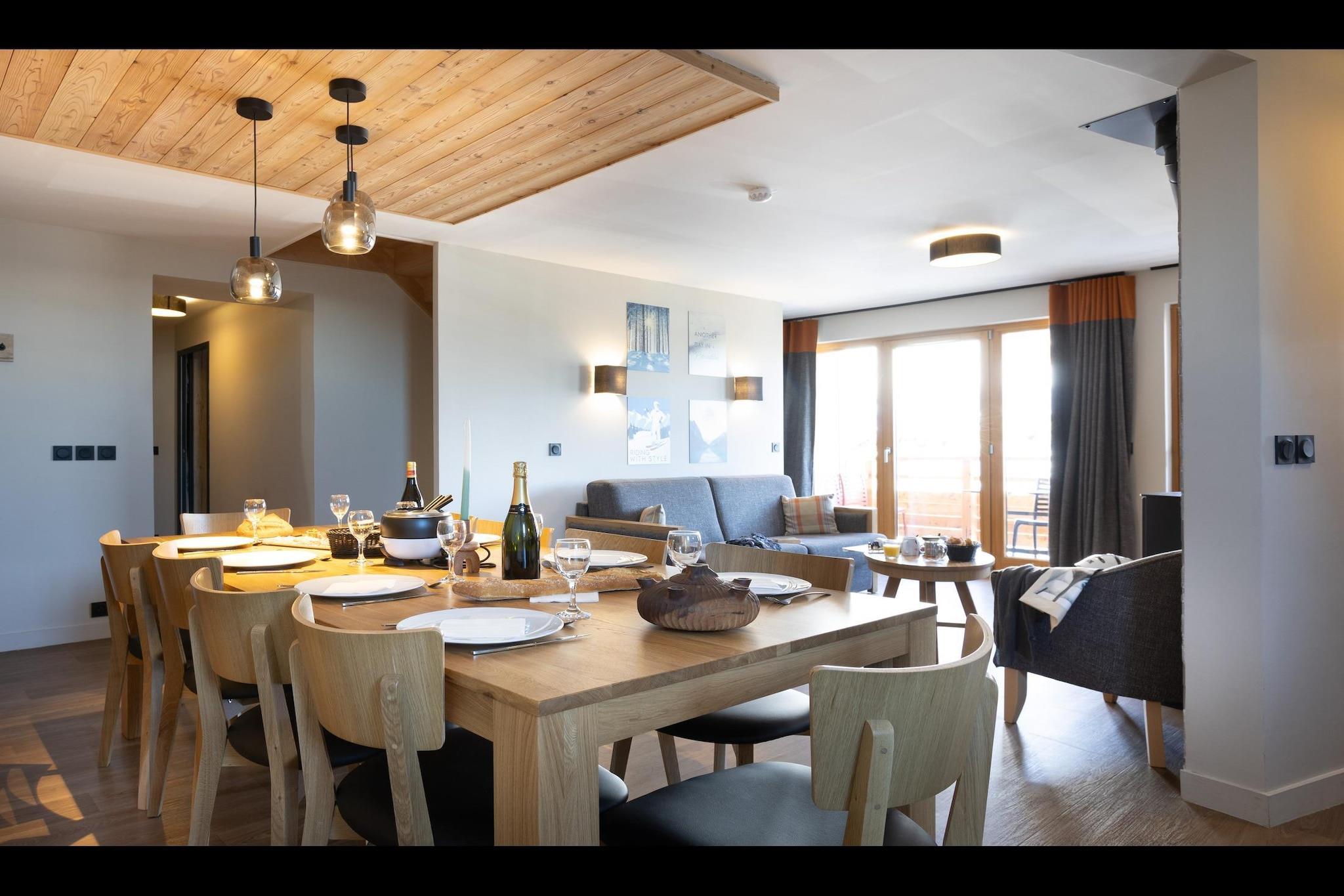 Stue(dobbeltsovesofa, Fjernsyn, pejs, sofahjørne), åbent køkken(kogeplade(glaskeramisk), elkedel, kaffemaskine, ovn, mikrobølgeovn, opvaskemaskine , køleskab, ), soveværelse(dobbeltseng), soveværelse(dobbeltseng), soveværelse(køjeseng eller 2 enkeltsenge), badeværelse(badekar eller bruser), badeværelse(badekar eller bruser), toilet(toilet), toilet(toilet), skiopbevaring, sauna, swimmingpool(deles med andre gæster, indendørs), føntørrer