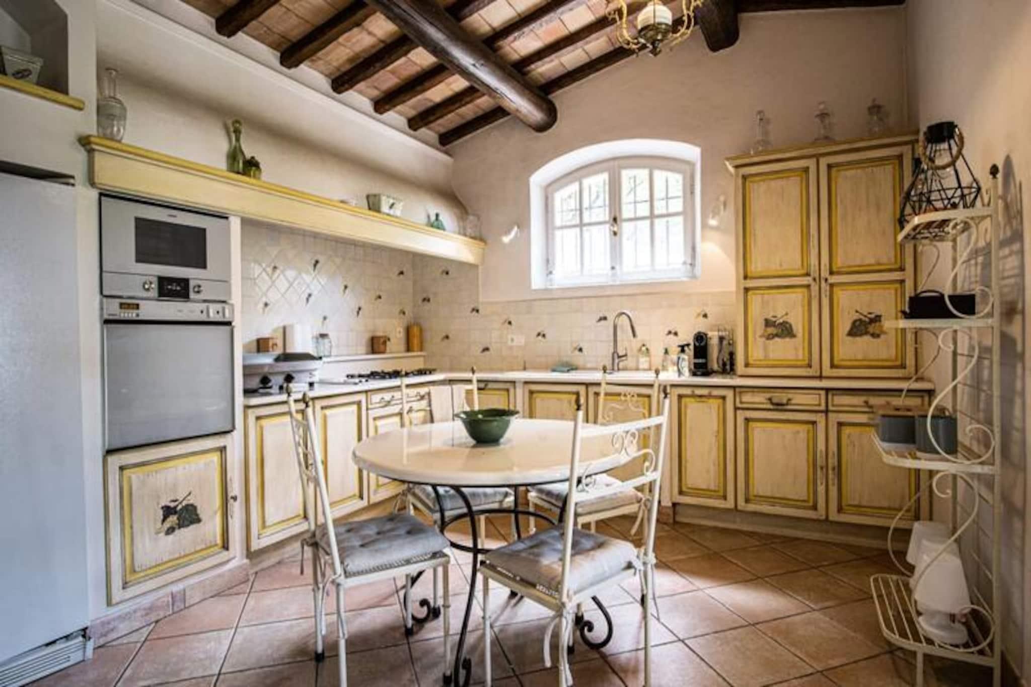 Dette enest?ende feriehus p? 300 m² er et ideelt tilflugtssted for familier eller grupper med plads til op til 10 g?ster. Det har 3 charmerende sovev?relser indrettet i traditionel provencalsk stil sammen med en rummelig mastersuite. Ejendommen omfatter ogs? et separat anneks med sovesofaer, et opholdsomr?de, k?kken og badev?relse, hvilket giver ekstra plads og privatliv. Hele hjemmet har aircondition for ultimativ komfort, og k?ledyr er velkomne. Ejendommen er beliggende i hjertet af Luberon Regional Park, kun 1 km fra den maleriske landsby Robion, som tilbyder nem adgang til lokale restauranter og butikker. N?rliggende attraktioner omfatter de charmerende landsbyer M?nerbes, Opp?de og Gordes (10 minutter), den ber?mte Fontaine-de-Vaucluse (15 minutter) og Alpilles-regionen (30 minutter). G?sterne kan udforske de pulserende markeder i Isle-sur-la-Sorgue, nyde vinsmagning eller nyde udend?rsaktiviteter s?som vandreture, kanosejlads og golf, alt sammen inden for kort afstand. Feriehuset har et selvst?ndigt fuldt udstyret k?kken, en rummelig stue og en spiseplads perfekt til familiem?ltider. Udend?rs kan du nyde flere terrasser, en smuk olivenlund og en 12x5 meter swimmingpool ?ben fra maj til september. Der er ogs? en plancha til at grille og masser af liggestole til at slappe af ved poolen. Ejendommen tilbyder direkte adgang til vandre- og vandrestier, hvilket g?r den til en perfekt base for at udforske det fantastiske omgivende landskab.