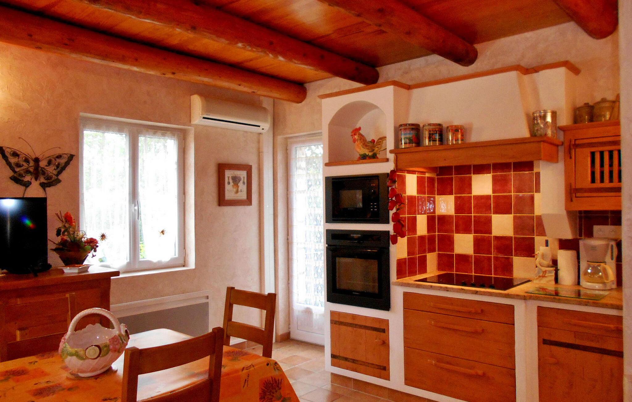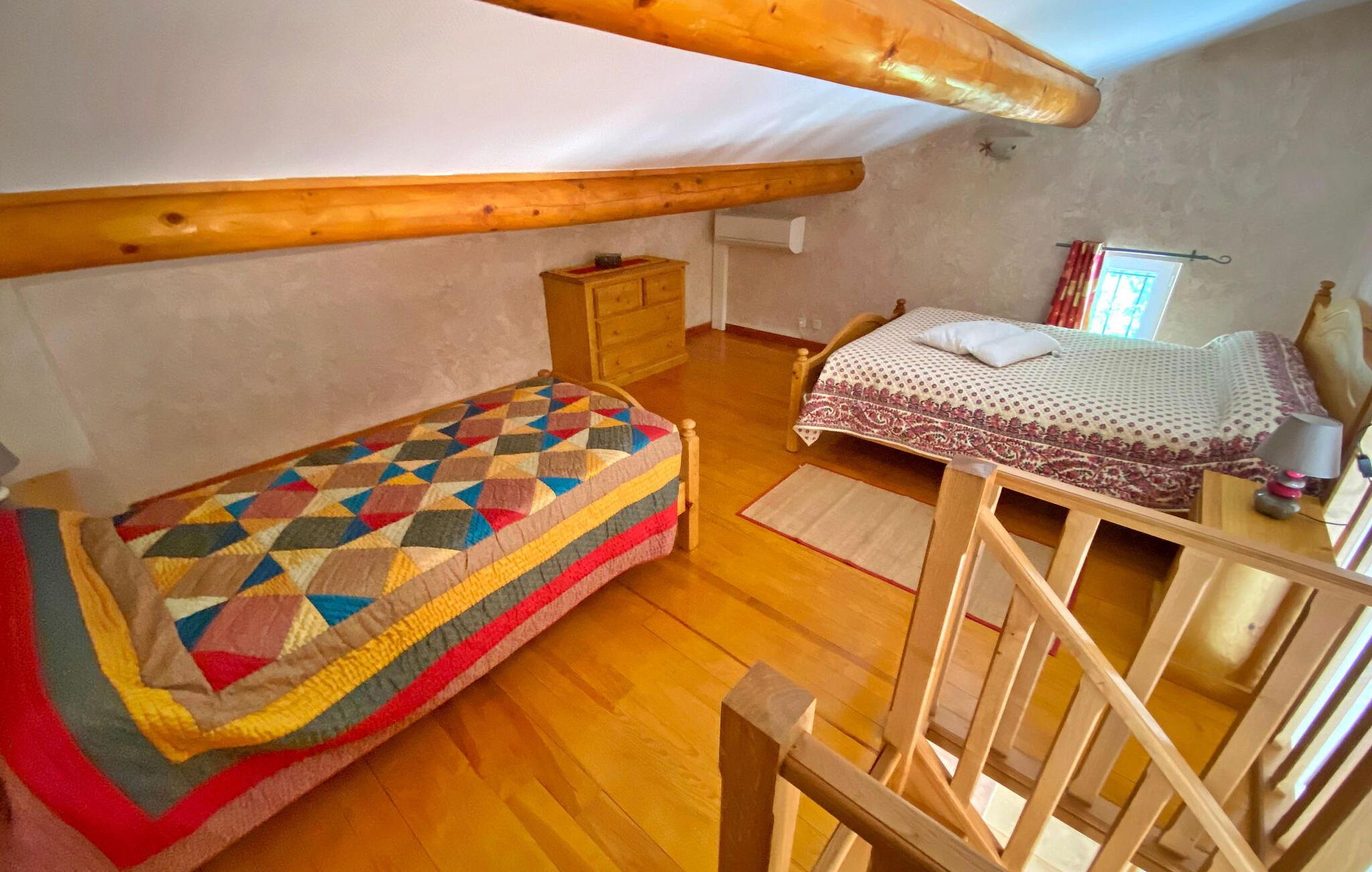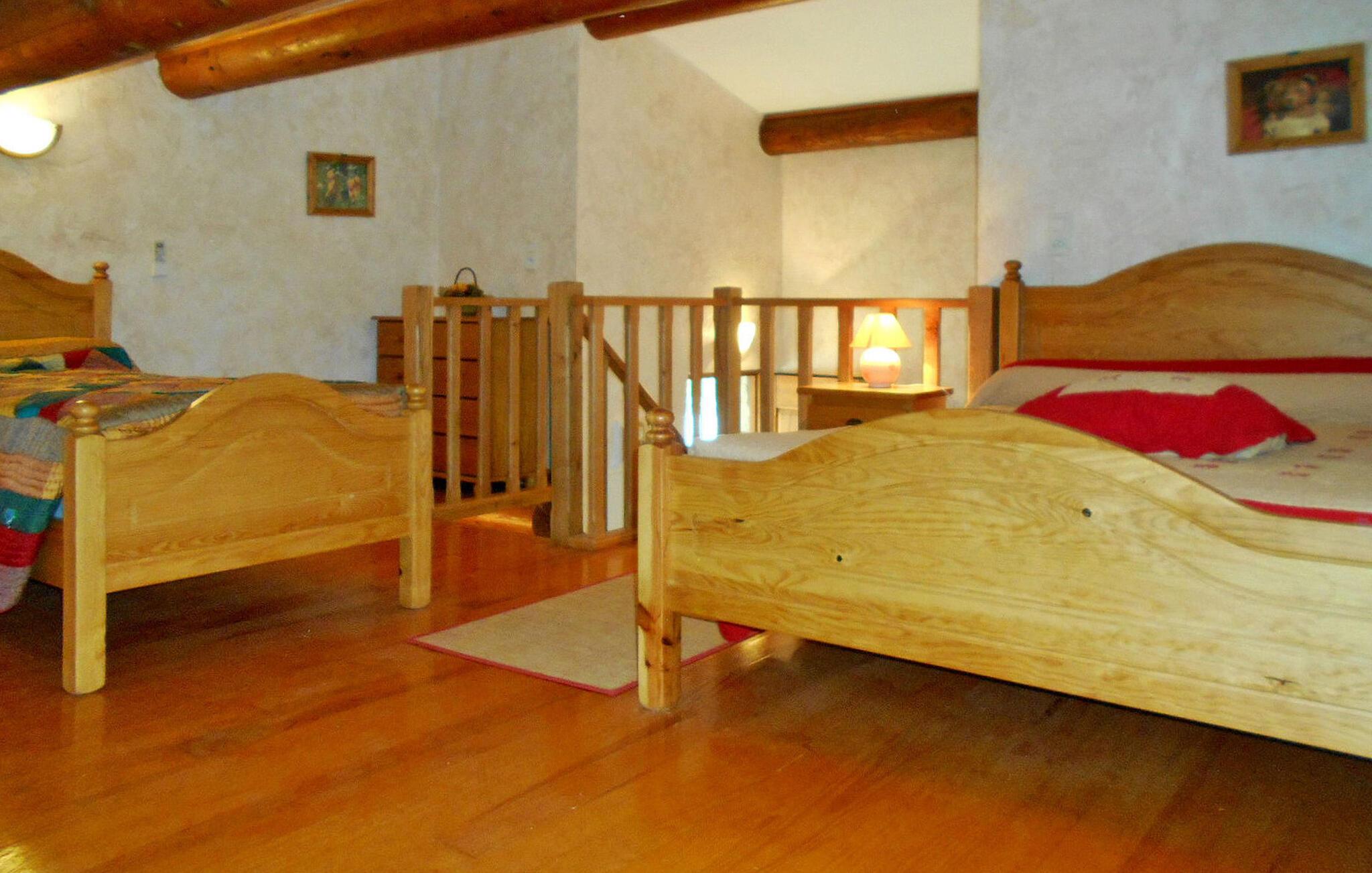 rolige skovmiljøer beliggende mellem Uzès og Barjac, opdag dette feriested, der består af to separate, men identiske hjem, perfekt til to familier, der søger en fredelig ferieflugt. Omgivet af naturlig skønhed og tæt på de fængslende Ardèche og Gard Provencal-regioner, tilbyder dette tilflugtssted ro og nem adgang til spektakulære attraktioner. En idyllisk base for at udforske områdets perler, denne udlejning lover en berigende ferieoplevelse. Hvert hjem har en stueetage med et hyggeligt soveværelse. Det indbydende opholdsrum ligger fem trin under indgangen og byder på et fuldt udstyret tekøkken og udgang til en charmerende terrasse. Når du stiger op til den klimatiserede mezzanin-etage over opholdsområdet, kan du opdage en dejlig soveplads. Udenfor lokker et rummeligt lukket land, komplet med en pergola-udsmykket terrasse og en privat indhegnet swimmingpool (12m x 5m, maksimal dybde 1,80m) til din eksklusive nydelse. Bemærk venligst: grunden har skråninger, så det er tilrådeligt at holde opsyn med små børn, mens de leger. Ejendommen er beliggende i Rochegudes højder (mellem Méjannes le Clap og Saint Jean de Maruejols) på bakken, ikke langt fra Barjac, midt i naturen. Tæt på Cèze-floden og Adrèche-kløften og -floden (svømning, kanosejlads). Besøg de charmerende nabolandsbyer med deres markeder: Barjac, Lussan, Tharaux, Monclus, Goudargues, Uzès, besøg de berømte grotter i området: Cocalière-grotterne, Aven d'Orgnac-hulerne, Salamandre-grotten. Caverne du Pont d'Arc (replika af Chauvet-hulen, UNESCO-sted), "Cascades du Sautadet", "Concluses de Lussan", udforsk "Gorges de l'Ardèche", "Cèze-dalen", beundre " Pont du Gard" Ideelt sted for udøvelse af alle slags aktiviteter: kanosejlads, canyoning, vandreture, ridning, mountainbike. Slap af, slap af og skab uforglemmelige minder i dette naturlige tilflugtssted, et ideelt tilflugtssted for dine ferieeventyr.