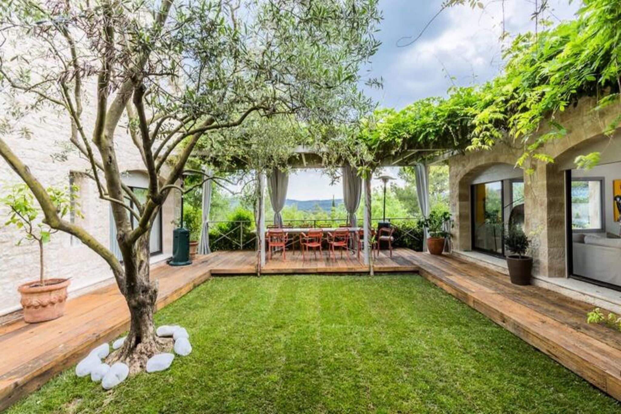 Terrassen. Stilfuld villa på 300m², med smuk have, terrasse og swimmingpool. Rummeligt interiør, kvalitetsudstyr. og moderne komfort. Rolige og eksklusive omgivelser ved foden af ??Luberon-massivet. 7 soveværelser, der kan rumme 12 personer og op til 12 personer. 14 maksimum med børn. Alle værelser har aircondition. Opvarmet swimmingpool valgfri. Lad dig lulle af cikadernes sang!! Ved foden af ??Luberon, i hjertet af det provencalske landskab på en grund på 8000 m2, byder denne smukke villa på et moderne og velholdt boligmiljø. Stort volumen i åbent plan, der samler stue, spisestue; spisning og madlavning, den rummelige stue udgør hjertet af villaen. Lyst, det åbner generøst på hver side ud til en charmerende, skyggefuld og stille pergola med spisebord. spise, som et kloster af grønt. Den grønne provencalske have strækker sig nedenunder samt den storslåede 12X 3,5 m swimmingpool. Fem dobbeltværelser komfortabelt indrettet som suiter fuldender stueetagen, mens to ekstra dobbeltværelser på 1. sal deler et badeværelse. Layout: **Stueetagen:** &tyr; Stue &tyr; Spisestue spise &tyr; Fuldt udstyret køkken &tyr; Soveværelse 1: 160 seng, ensuite badeværelse - bad, toilet &tyr; Soveværelse 2: 140 cm seng, ensuite badeværelse - bruser &tyr; Soveværelse 3: 160 seng, ensuite badeværelse - bruser, toilet &tyr; Soveværelse 4: 160 seng, ensuite badeværelse - bruser, toilet &tyr; Soveværelse 5: 160 seng, ensuite badeværelse - bruser, toilet &tyr; selvstændig w.c **1. sal:** &tyr; Soveværelse 6: 160 cm seng &tyr; Soveværelse 7: 160 cm seng &tyr; Badeværelse - badekar, toilet **Ydre:** &tyr; Swimmingpool 12X3,5 fra medio april til medio april medio oktober (opvarmning muligt mod tillæg) &tyr; Jacuzzi tilgængelig fra midten af ??april til midten af ??april medio oktober &tyr; Have med flere pladser (grøntsagshave, lille fodboldbane, skyggeområde osv.) &tyr; Gasgrill Sengelinned, håndklæder og badelagner leveres. Sengene gøres klar lige før din ankomst. Du vil finde kosmetiske artikler på badeværelserne og nogle kolde drikkevarer i køleskabet. Valgfri tjenester er tilgængelige efter anmodning efter anmodning. ved reservation eller under dit ophold: * Køkkenchef hjemme (efter reservation) * Linned og ekstra rengøring * Vintur (efter reservation) * Cykeludlejning * Madindkøb tilgængelig ved din ankomst Du vil blive budt velkommen af ??en leder, som vil introducere dig til ejendommen, give dig gode adresser og forblive tilgængelig under dit ophold. * Tag på en rejse til opdagelsen af ??de autentiske landsbyer i Alpilles og Luberon Saint Rémy de Provence, Eygalières, Les Baux de Provence, Gordes, Lourmarin, Bonnieux * Camargue Regional Natural Park byder på exceptionelle naturlandskaber * Avignon, pavernes by * Hver dag afslører et marked farverigt provencalsk og rigt på sine lokale produkter * Strandene i Sausset les Pins og Carry le Rouet er meget tæt på * Gå en tur gennem shoppinggaderne i Aix en Provence efter en picnic ved foden af ??Sainte Victoire * Forkæl dig selv med en spadseretur i åerne omkring Marseille og Cassis Depositum (i euro) - 800