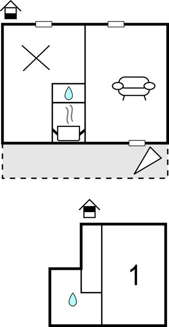 Soveværelse (nr. 1) - 2 Sovepladser. (Enkeltseng(e)).