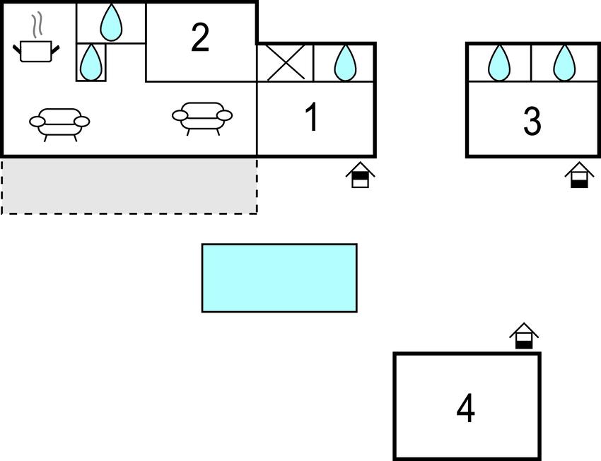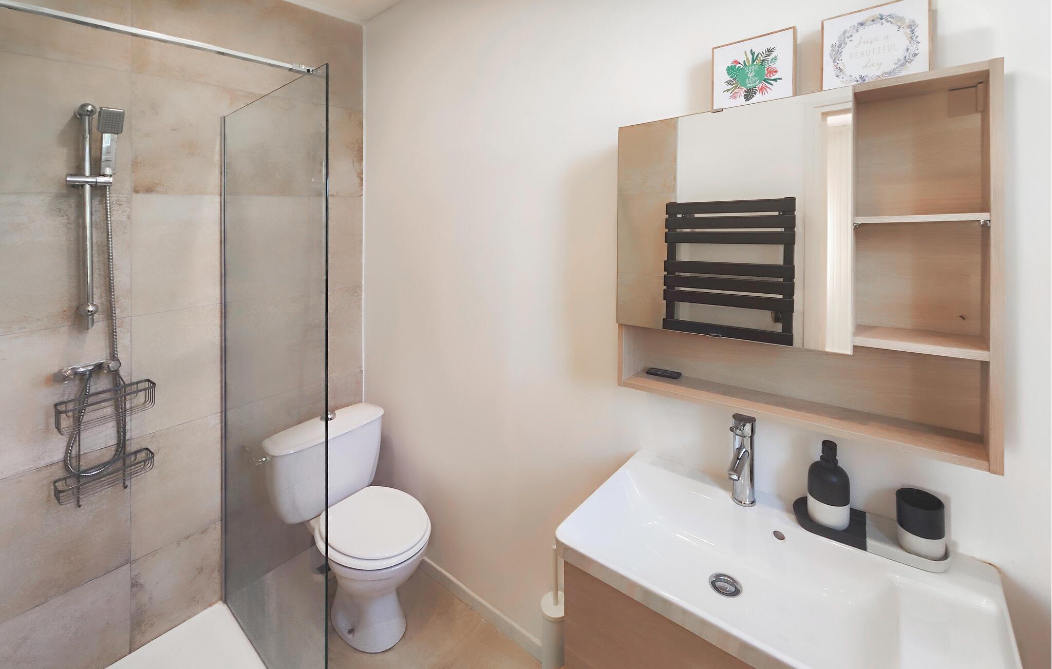 Badeværelse 4m2 (nr. 3) - WC. Varmt og koldt vand. Bruser