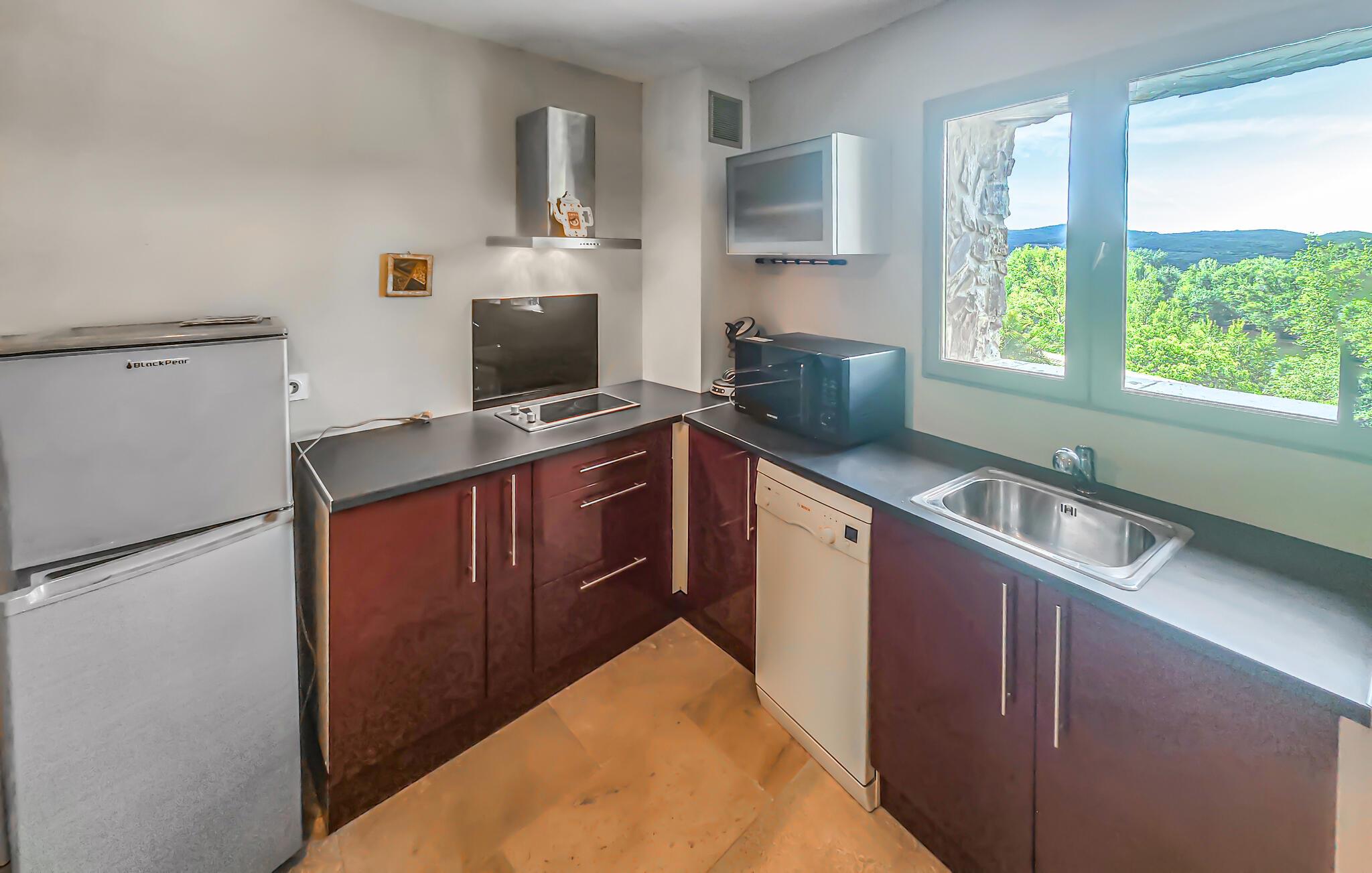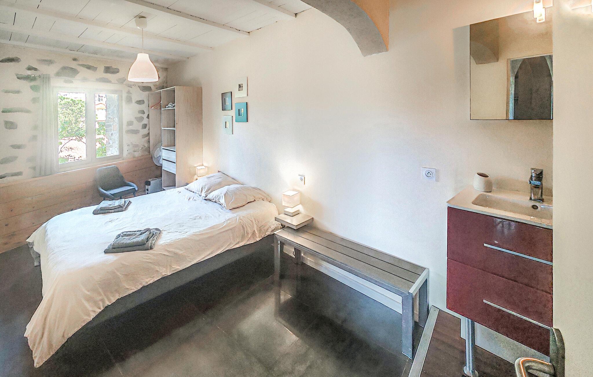Huset ligger i det maleriske Roquebrun, en populær by i Languedoc-regionen, der er kendt for sit mikroklima og sin frodige vegetation. Udforsk regionen til fods, med kanosejlads på Orb-floden eller udforsk de omkringliggende vinmarker. Tag en vandretur gennem naturparken Haut-Languedoc eller besøg lokale markeder og charmerende landsbyer i området.