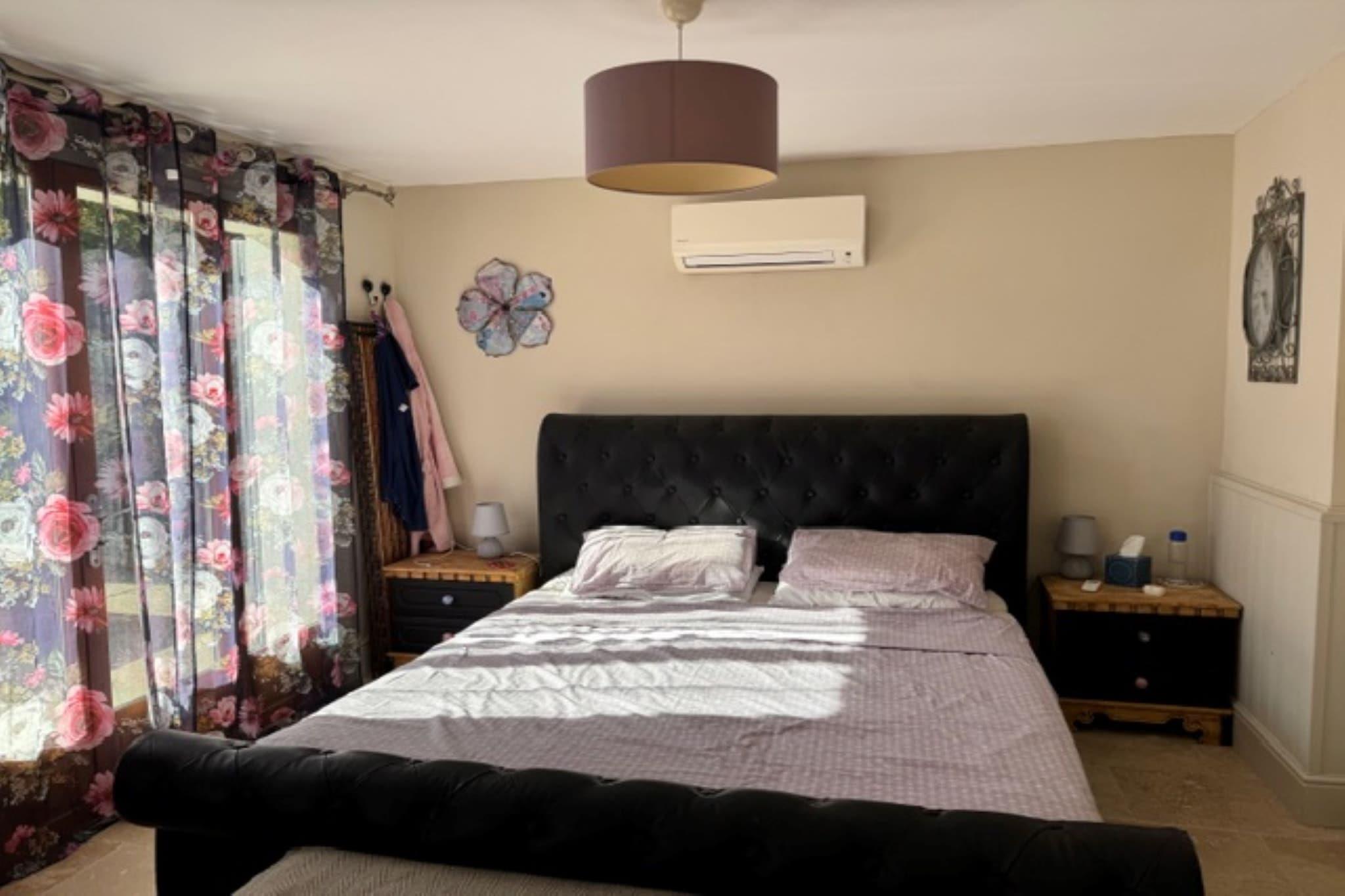 Stueetage: (Køkken(brødrister, komfur(Komfur med fire kogeplader, elektrisk), emhætte, kaffemaskine, ovn, mikrobølgeovn, opvaskemaskine , køleskab, Coffee), stue / spisestue(Fjernsyn, spisebord), Soveværelse med badeværelse(dobbeltseng, bruser, toilet), Soveværelse med badeværelse(dobbeltseng, bruser, toilet), Soveværelse med badeværelse(dobbeltseng, bruser, toilet)) På 1. etage: (Arbejdsværelse) åbent køkken(komfur, ovn, køleskab), vaskerum (toilet, vaskemaskine), Internetadgang, terrasse, have, havemøbler, parkering, swimmingpool(privat)