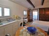 Jeres enkle lejlighed i stueetagen er ideel til et par eller enlige rejsende, der søger en rolig base for at udforske Var. Huset tilbyder en behagelig kombination af privatliv og fælles udendørsområder. I den lyse stue med en komfortabel sofa og TV sørger det store vinduesparti for masser af naturligt lys og udsigt over den lille forgård. Brug det kompakte udstyr til enkle måltider, eller slap af efter en lang dag med sightseeing med en film eller en bog. Træbjælkerne i loftet giver rummet en varm atmosfære.