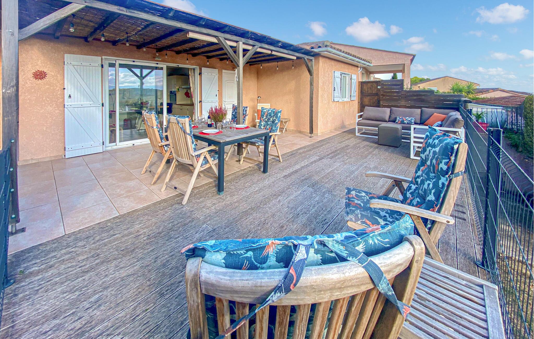 Dette feriehus med adgang til pool venter jer på en ferie fyldt med Sydfrankrigs livsglæde og betagende udsigter.