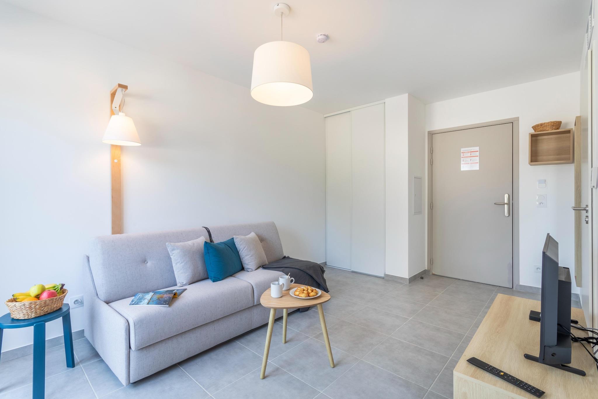 Tekøkken(elkedel, brødrister, kaffemaskine, opvaskemaskine ), Stue/soveværelse(dobbeltsovesofa, Fjernsyn(Internationale TV-kanaler)), badeværelse(bruser, toilet, føntørrer), balkon eller terrasse, klimaanlæg, parkering, swimmingpool(deles med andre gæster, opvarmet, herunder en del for børn (maks. dybde 50 cm), opened from May upto and including Sep), petanquebane(deles med andre gæster)