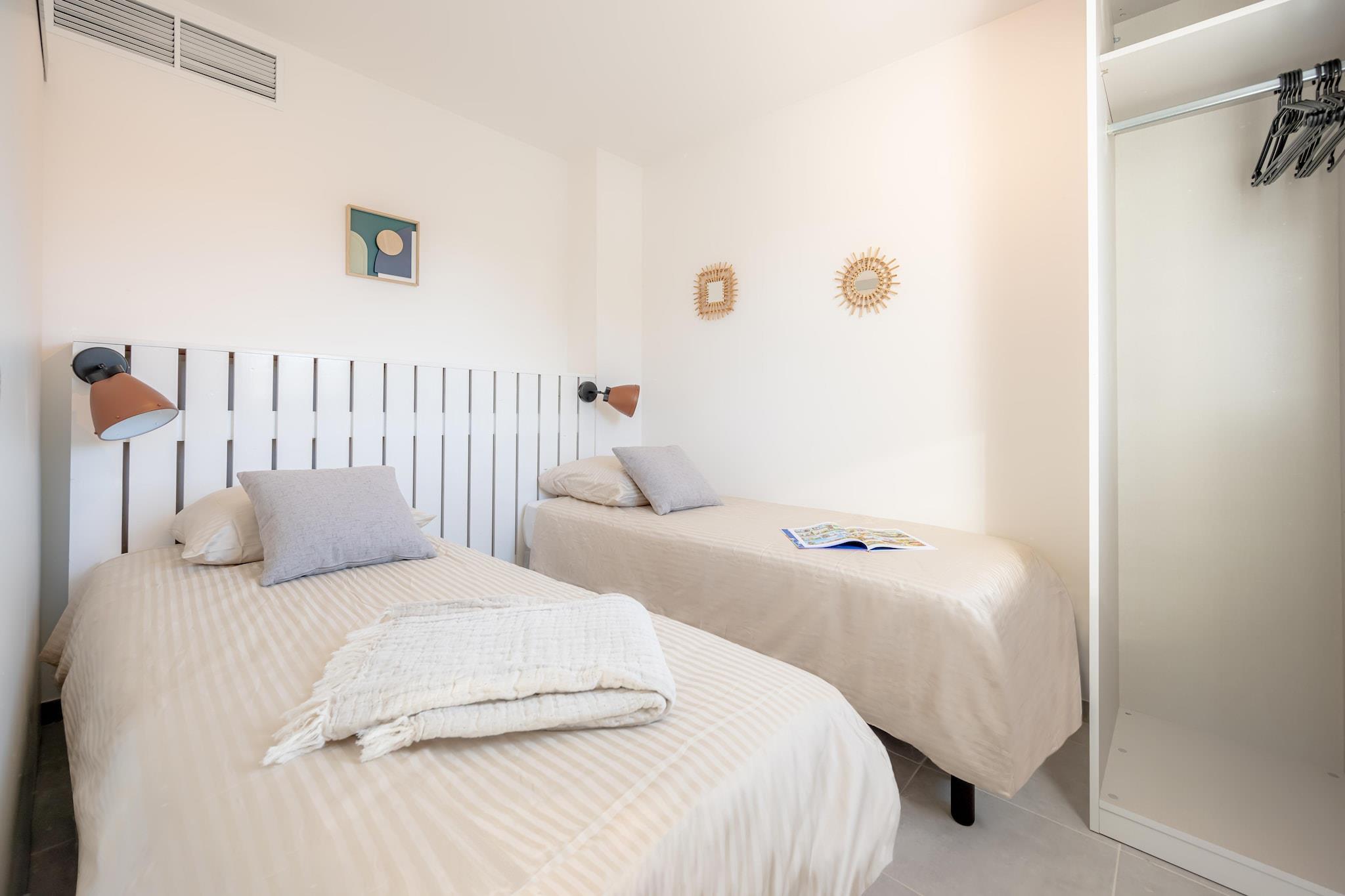 Stue(dobbeltsovesofa, Fjernsyn(Internationale TV-kanaler)), tekøkken(elkedel, brødrister, kaffemaskine, opvaskemaskine ), soveniche(køjeseng), badeværelse(bruser, toilet, føntørrer), balkon eller terrasse, klimaanlæg, parkering, swimmingpool(deles med andre gæster, opvarmet, herunder en del for børn (maks. dybde 50 cm), opened from May upto and including Sep), petanquebane(deles med andre gæster)