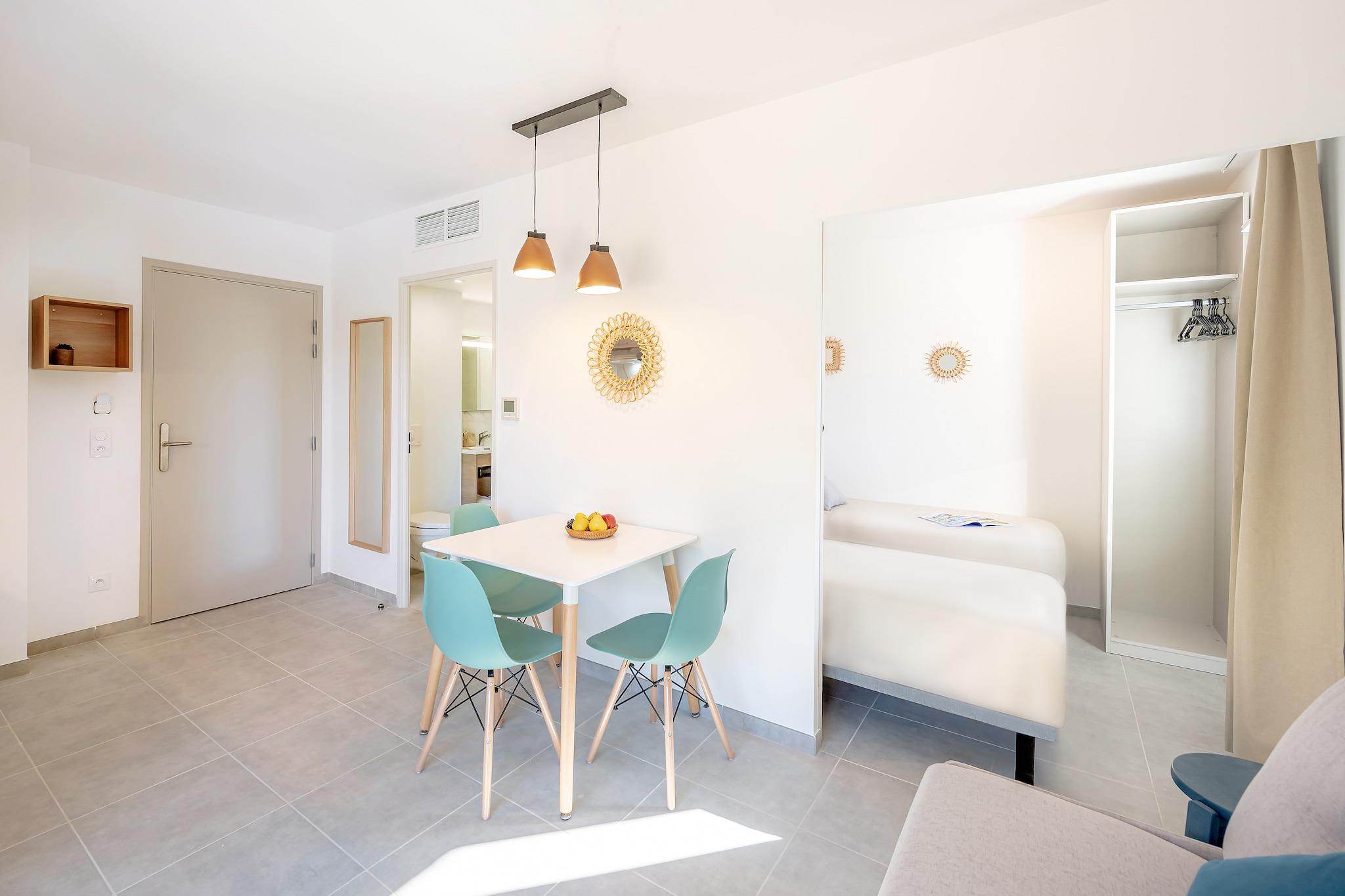 En bolig færdig i 2023 i hjertet af Provence, kun 6 km fra havnebyen Cassis! De fuldt udstyrede lejligheder med aircondition har terrasser eller balkoner, så du kan nyde den lokale sol og spise udenfor. Oplev området og smag regionens delikatesser. Cassis, med sine smalle gader og maleriske kvarterer med gadecaféer og restauranter og havnen, der minder om St. Tropez i 1960'erne, ligger mellem Marseille og Toulon. Småstensstrande, klippebugter, fyrreskove og vinmarker bestemmer panoramaet her. Langs Alta Vias klipper er der en storslået udsigt over havet 350 m nedenfor og Calanques klipper, inklusive den mest berømte, Cap Canaille. Calanques-massivet består af et 400m tykt lag af kalksten og er et af de smukkeste landskaber, som Frankrig har at byde på. Der er dannet dale under vandet og skabt små fjorde med smukke naturlige bugter. I løbet af dagen kan du opdage hedeområder, maleriske fiskerlandsbyer eller vandre gennem bjergene, før du forfrisker dig selv i boligens pool. Vandsportsentusiaster bør besøge strandene i Cassis eller La Ciotat, kun få kilometer væk.