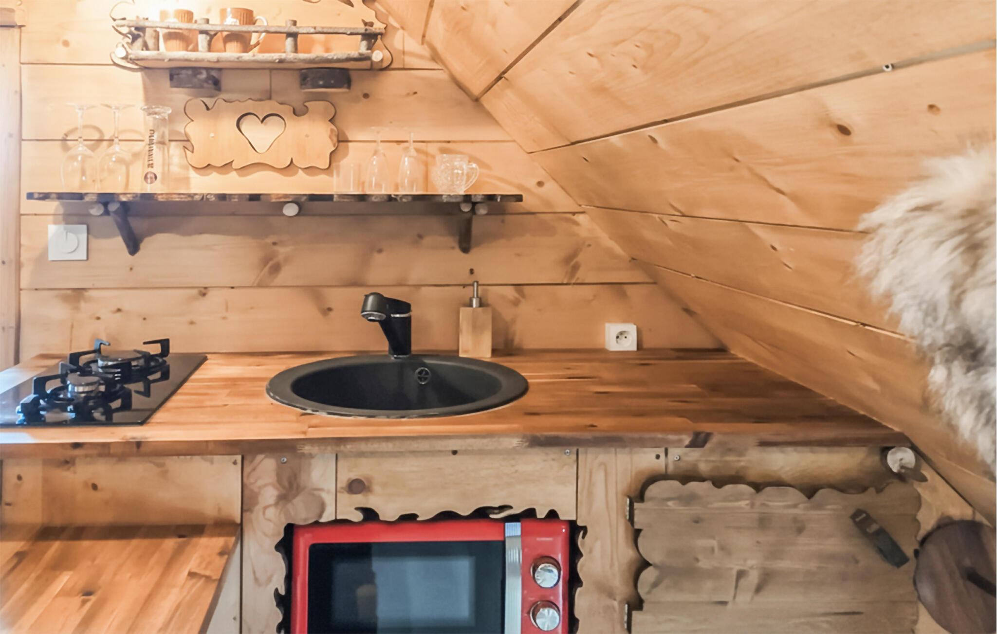 Denne exceptionelle studiolejlighed tilbyder en skøn base for to, der giver jer mulighed for at opdage Bretagnes mange attraktioner og sætte hverdagen på pause. Tilbered solide måltider, nyd den komfortable, rustikke atmosfære under afslappede middage, og fordyb jer i en god bog efter en lang dag.