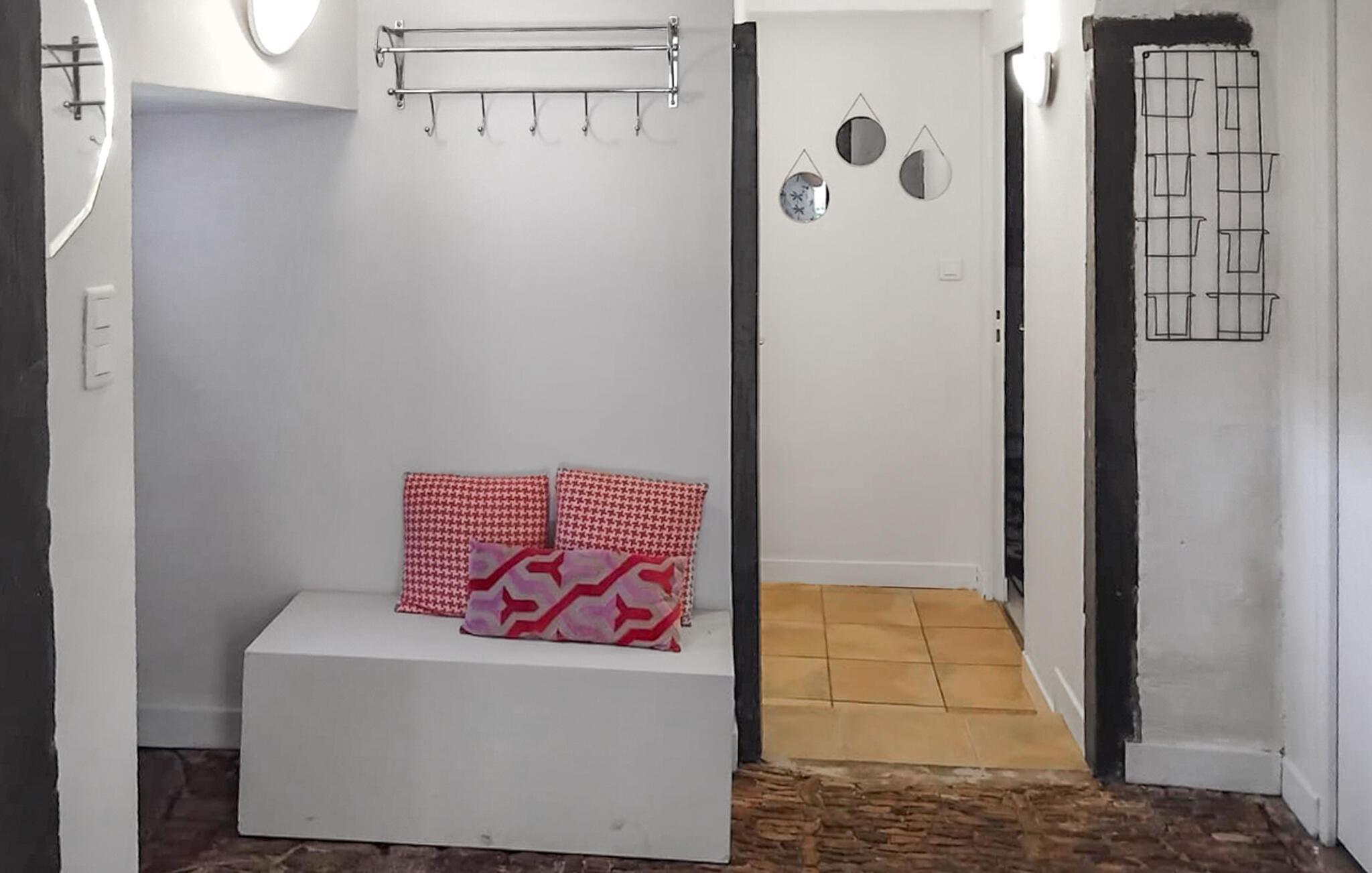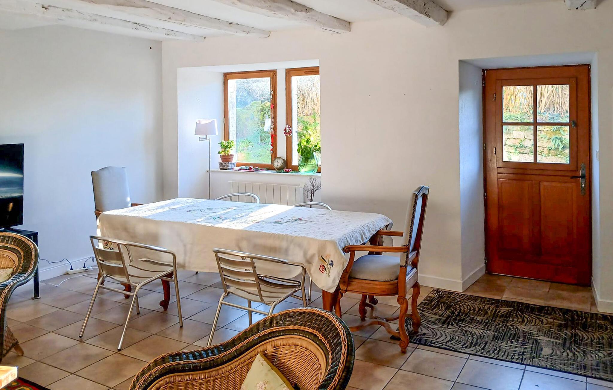 Tilbring jeres ferie i dette smukt renoverede landsted, der kombinerer landlig autenticitet med hygge og tilbyder fred, ro og ro samt nærhed til naturen. Sæt jer til rette i den komfortabelt møblerede opholdsstue med sofa, pejs og tv. Brug den tilstødende spiseplads til fælles måltider og tilbring hyggelige aftener med familie eller venner. I kan nemt lave mad i det moderne køkken.