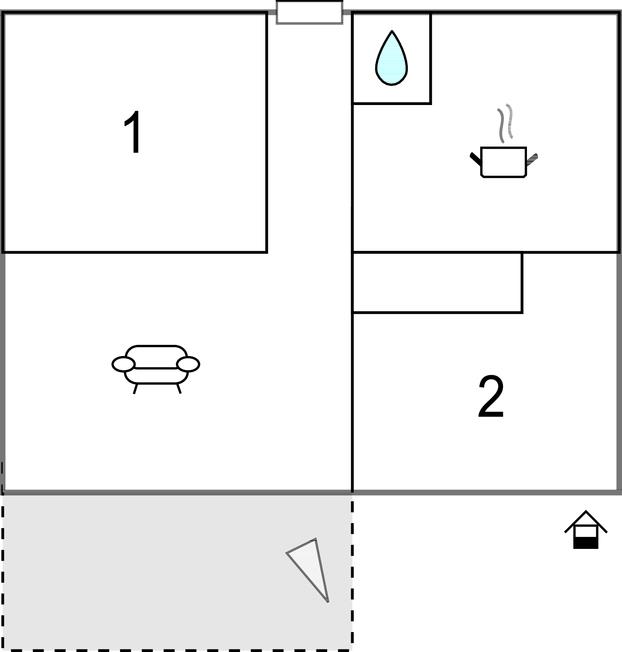 Soveværelse 12m2 (nr. 2) - 2 Sovepladser. (Sofa, madras eller lignende).