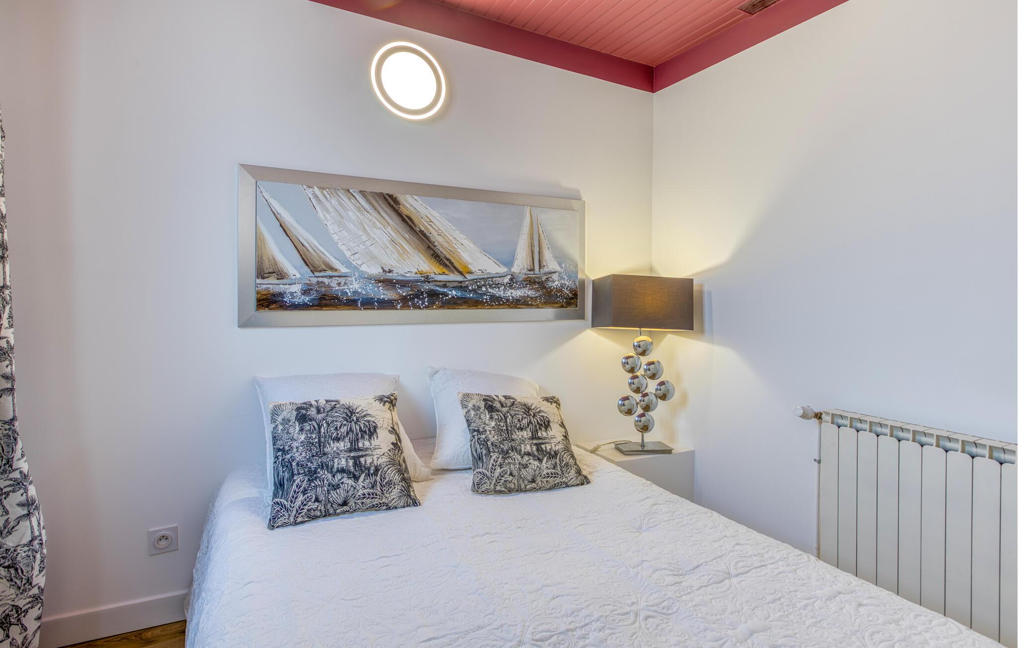 Kun en gåtur fra stranden, restauranter og gode indkøbsmuligheder inviterer denne familievenlige feriebolig jer til uforglemmelige dage med jeres nærmeste. Tryl lækre måltider frem af friske råvarer fra markedet, og glæd jer til fælles, hyggelige spisestunder. Stream en film, fordyb jer i en god bog på jeres yndlingssted, eller arranger sjove spilleaftener.