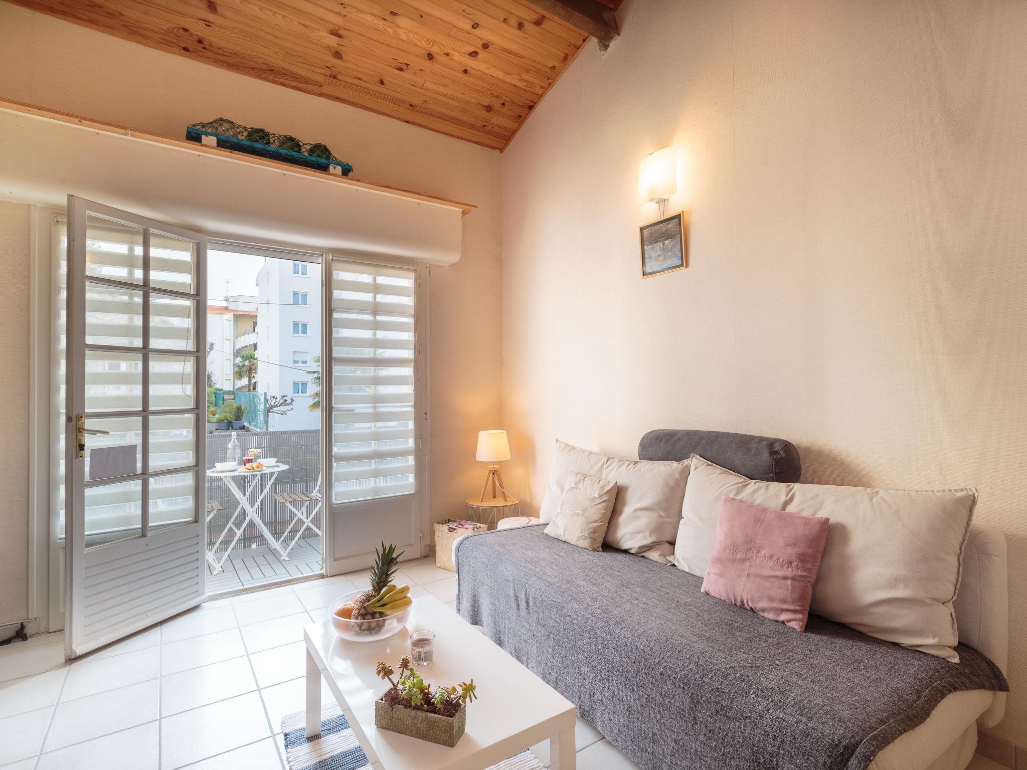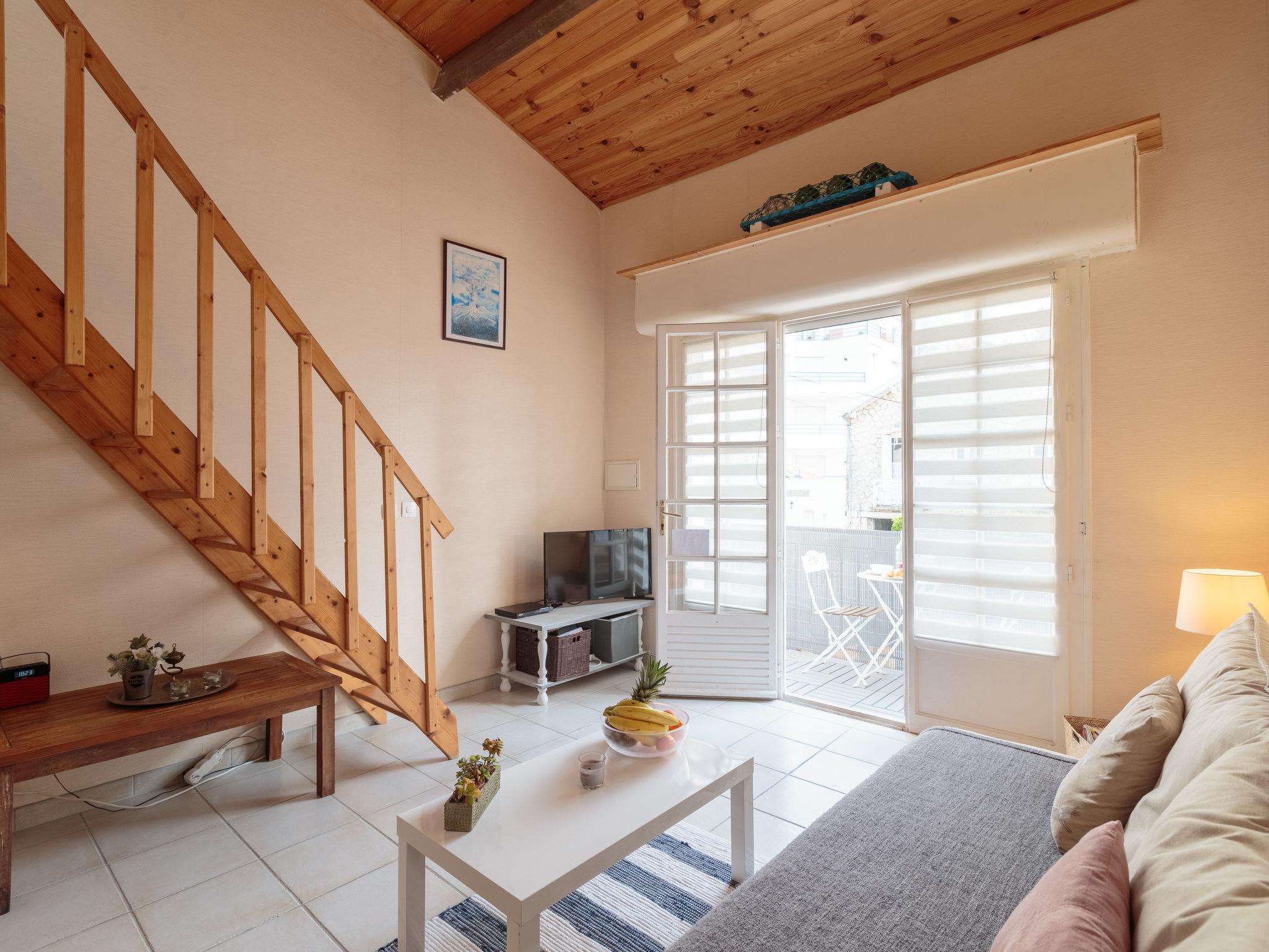 1-room studio 26 m2 on 2 levels, on the upper ground floor. Beautiful furnishings: living/dining room with 1 double sofabed (1 x 140 cm, length 190 cm), TV. Exit to the balcony. Kitchenette (oven, dishwasher, 2 induction hot plates, microwave, freezer). Shower/WC. Air-conditioning. Upper floor: gallery with sloping ceilings with 1 french bed (1 x 160 cm, length 190 cm). Small balcony 4 m2, south facing position and, east facing position. Balcony furniture. Facilities: washing machine. Internet (WiFi, extra). Please note: maximum 1 pet/ dog allowed. Smoke alarm. Instead of an enclosed bedroom, some sleeping areas are located in an open-plan area (gallery, alcove, etc.). 17306000238RT