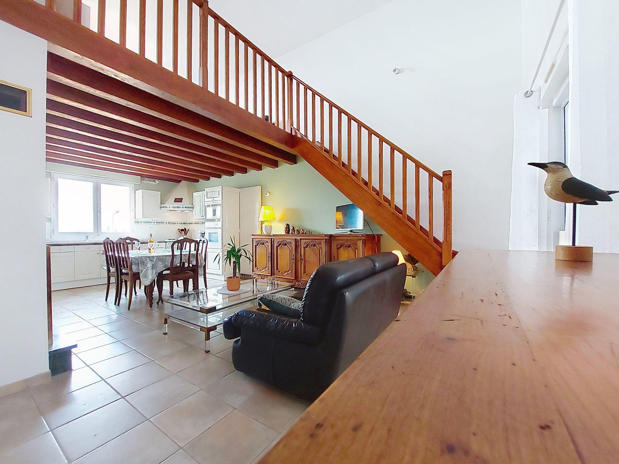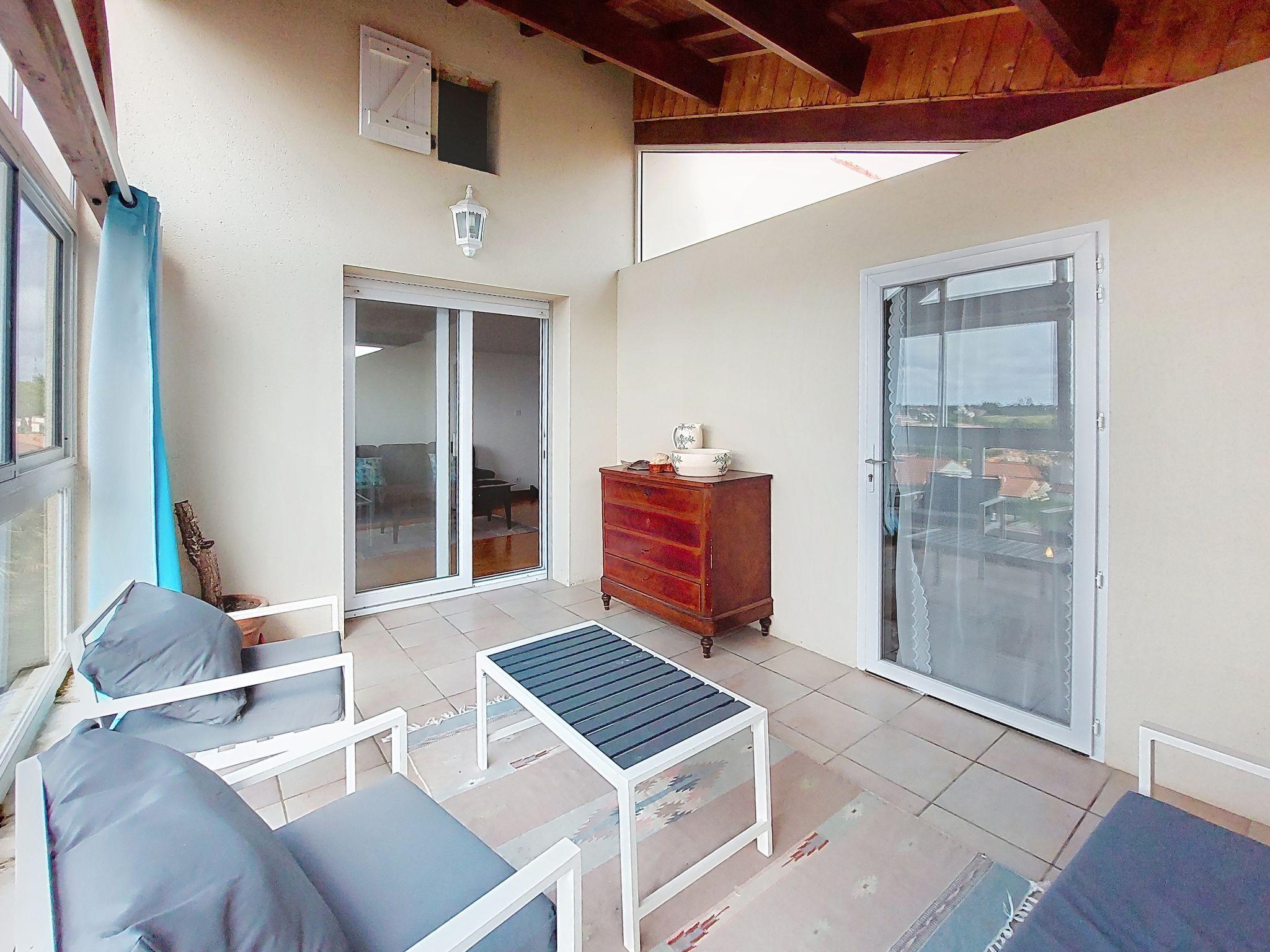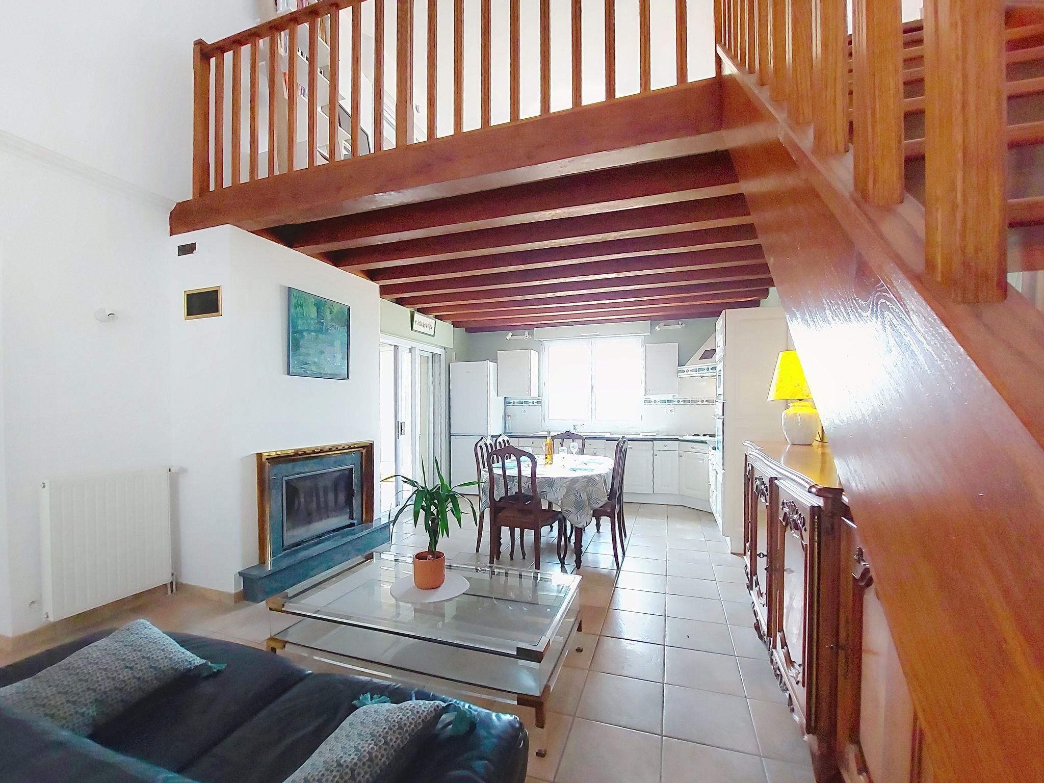 3-room house 85 m2 on 2 levels. Large living/dining room with open-hearth fireplace (only for decoration). 2 rooms, each room with 1 french bed (1 x 140 cm, length 190 cm). Kitchen-/living room (oven, dishwasher, 3 gas rings, toaster, kettle, microwave, electric coffee machine). Bathroom, sep. WC. Gas heating. Upper floor: gallery with sloping ceilings with TV (flat screen). Covered balcony, sitting area. Facilities: washing machine. Internet (WiFi, free). Parking (fenced 1 car), garage. Please note: apartment street side. Non-smoking house. Maximum 1 pet/ dog allowed. Smoke alarm. Offer by a private individual according to Art. 155, IV of CGI. 17306000233Z5