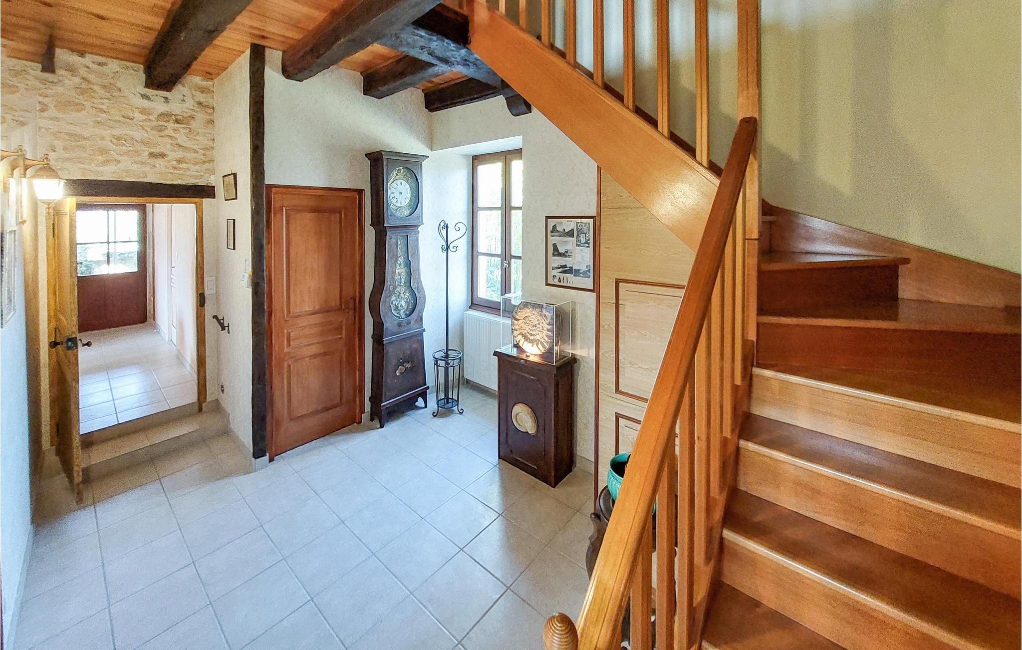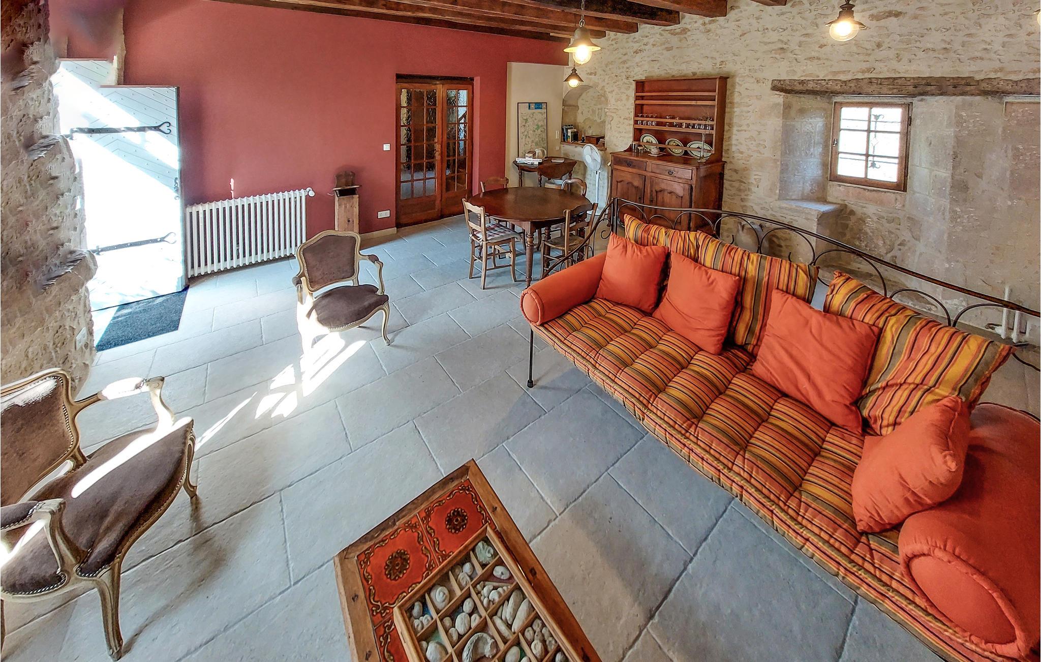 Har I ikke altid ønsket at prøve et gammelt fransk landsted som feriested? Her er ren idyl! Dette skønne landlige feriehus fra 1731, som ser så varmt og indbydende ud selv på afstand, ligger fredeligt ved den naturskønne flod, Lien. Det rustikke familievenlige hus med charmerende stenvægge og gamle bjælkelofter er udstyret med al komfort og bekvemmelighed. De harmonisk indrettede værelser med en fortryllende atmosfære og hyggelige detaljer sikrer, at I føler jer helt hjemme i dette tilflugtssted. Brug den solrige terrasse på den enorme naturejendom til en skøn morgenmad, middag, nyd vin og bare ren afslapning. Når det regner, kan I føle jer godt tilpas på verandaen.